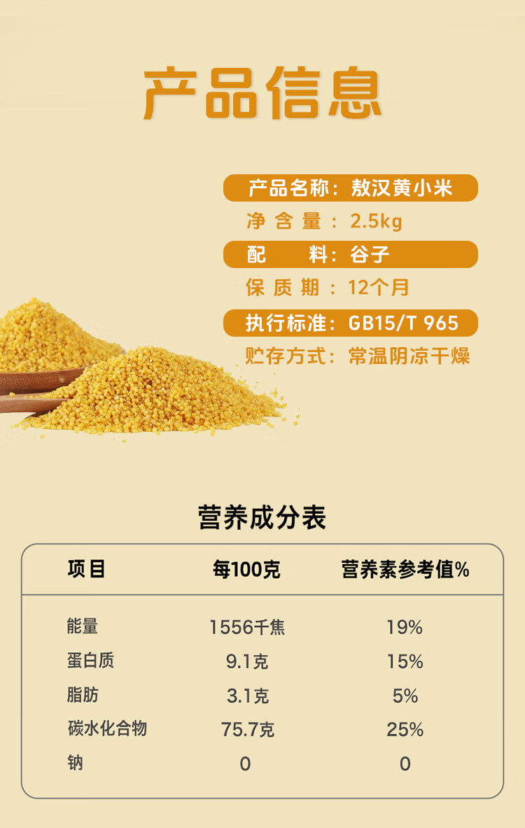 绿之坊内蒙古赤峰敖汉原产地黄小米宝宝月子米粥农家粗粮杂粮小米5斤 敖汉黄小米5斤*1袋
