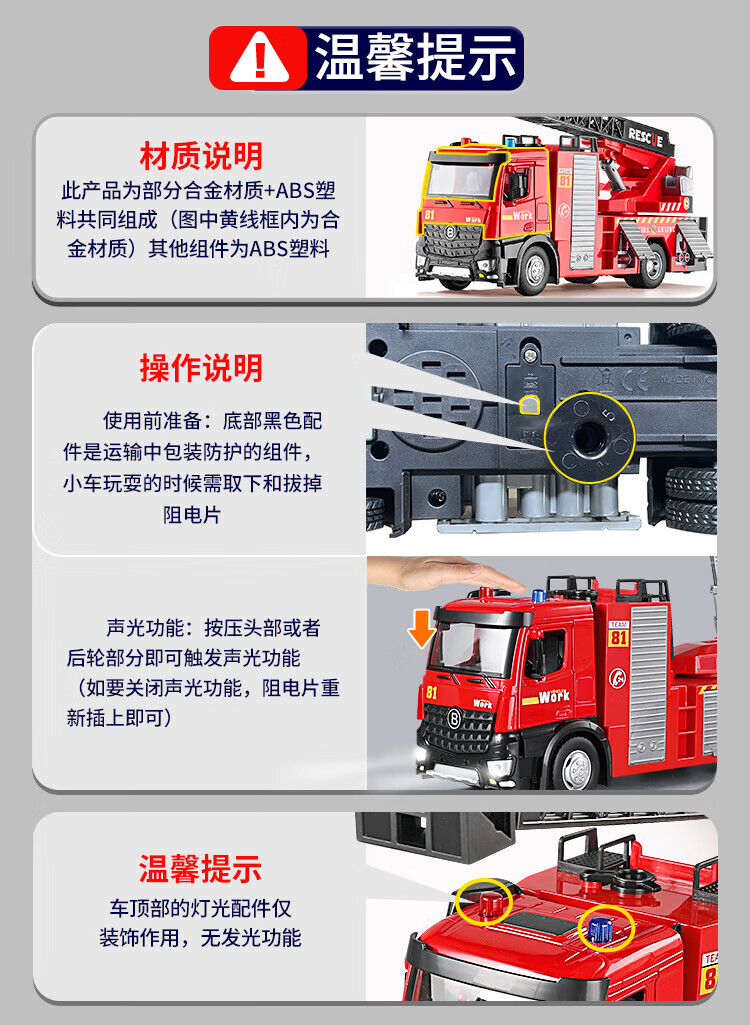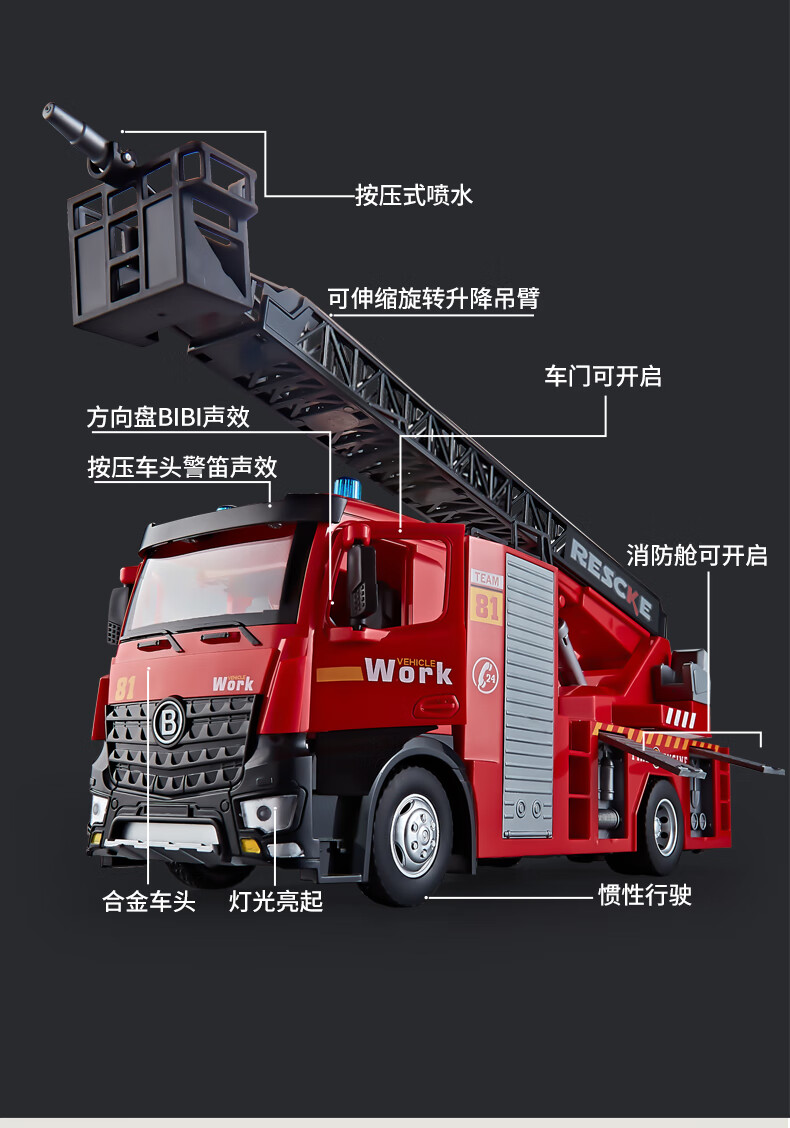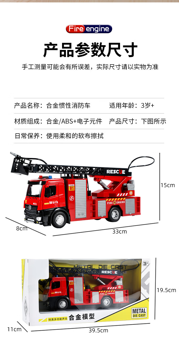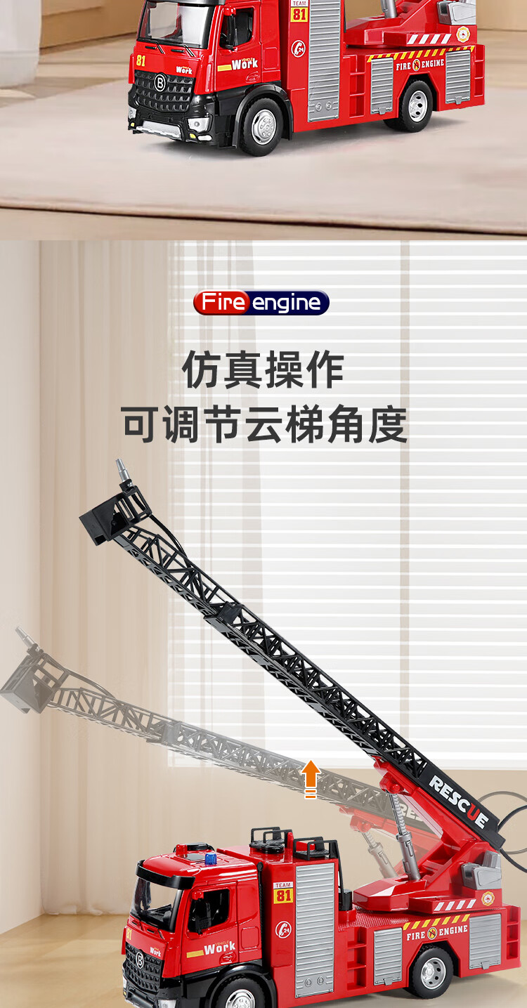 恩贝家族儿童消防玩具车1-3-6岁大号合金云梯车汽车模型生日新年礼物男孩