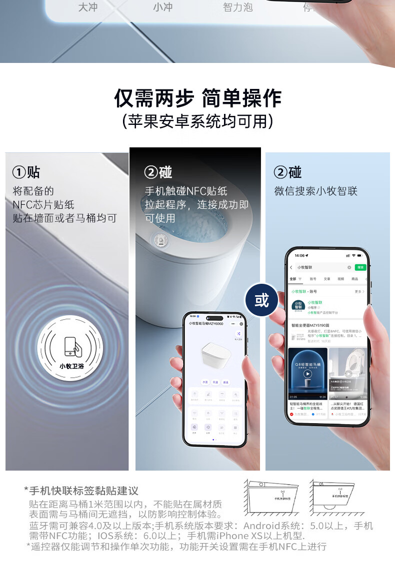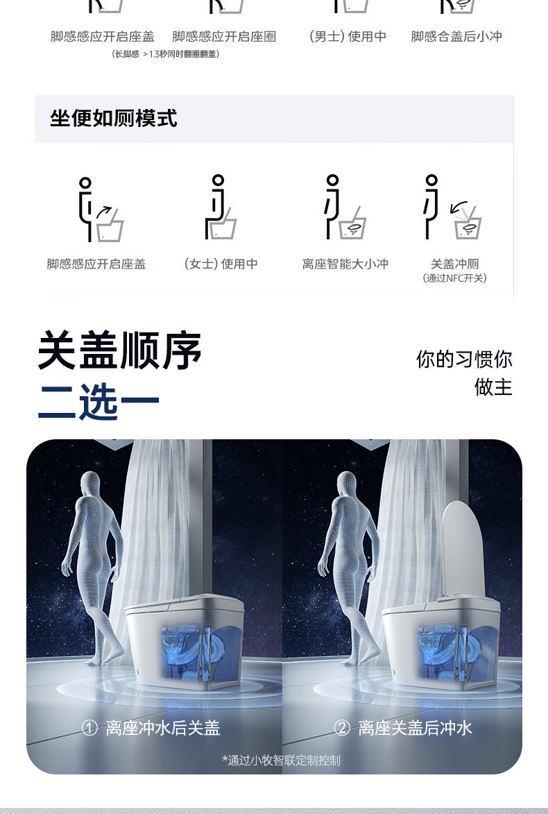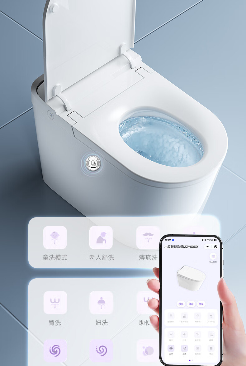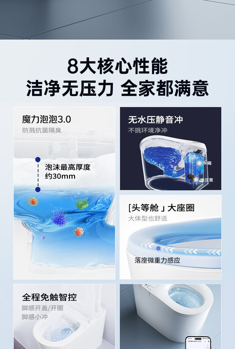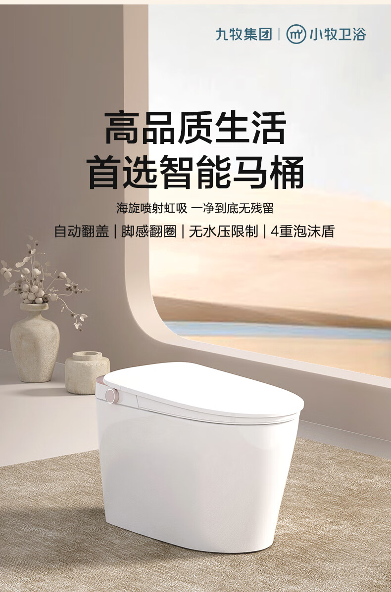 九牧(JOMOO)智能马桶小牧零压限制泡沫盾轻音冲全自动翻盖清洗烘干一体机 脚感自动翻盖+零压/高配版 305(300)/400坑距下单备注