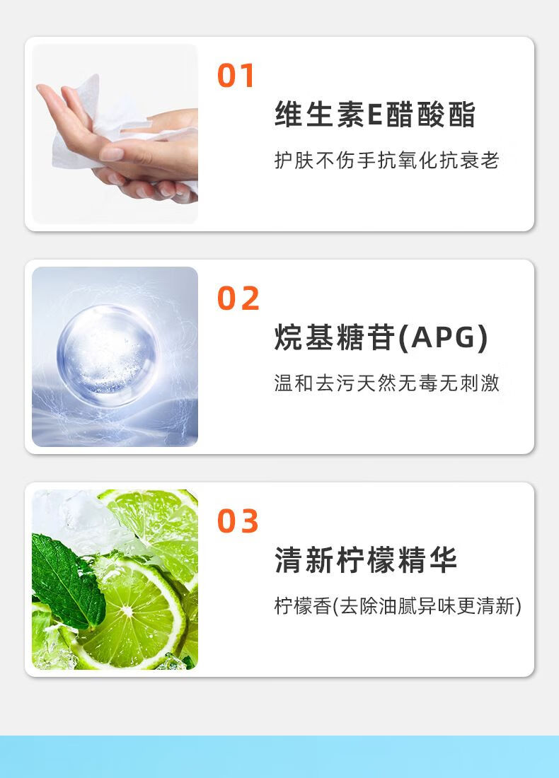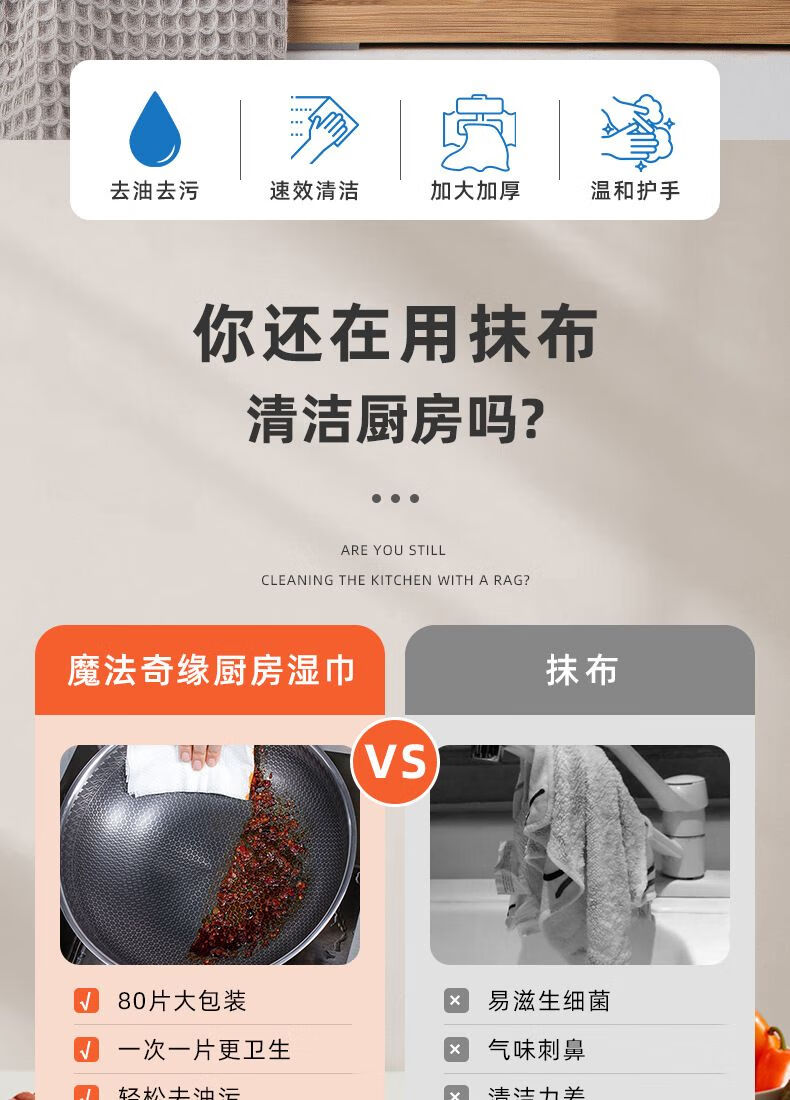 厨房湿巾加大加厚家用清洁去油污专用天然椰油湿纸巾大包装一次性 3包(每包80抽)20*20cm