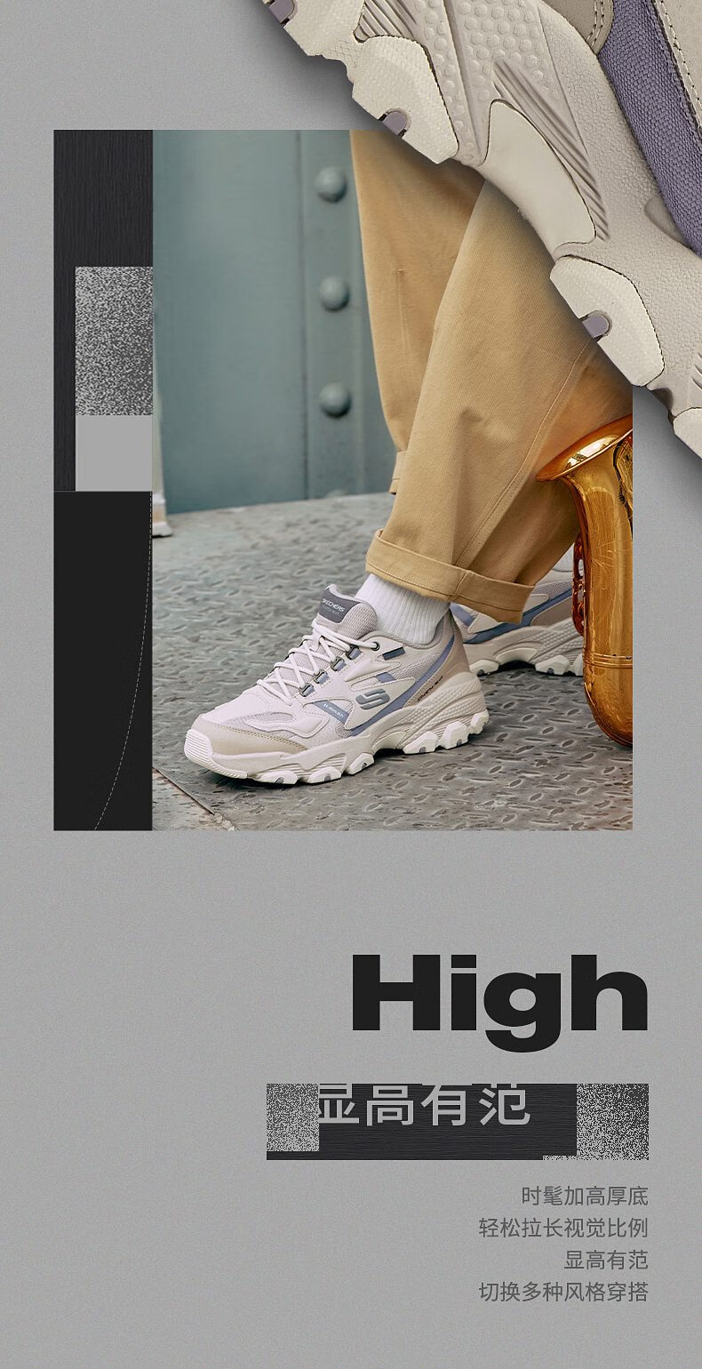 斯凯奇(Skechers)新年礼物男鞋冬厚底增高老爹鞋潮流复古运动鞋户外休闲鞋237121