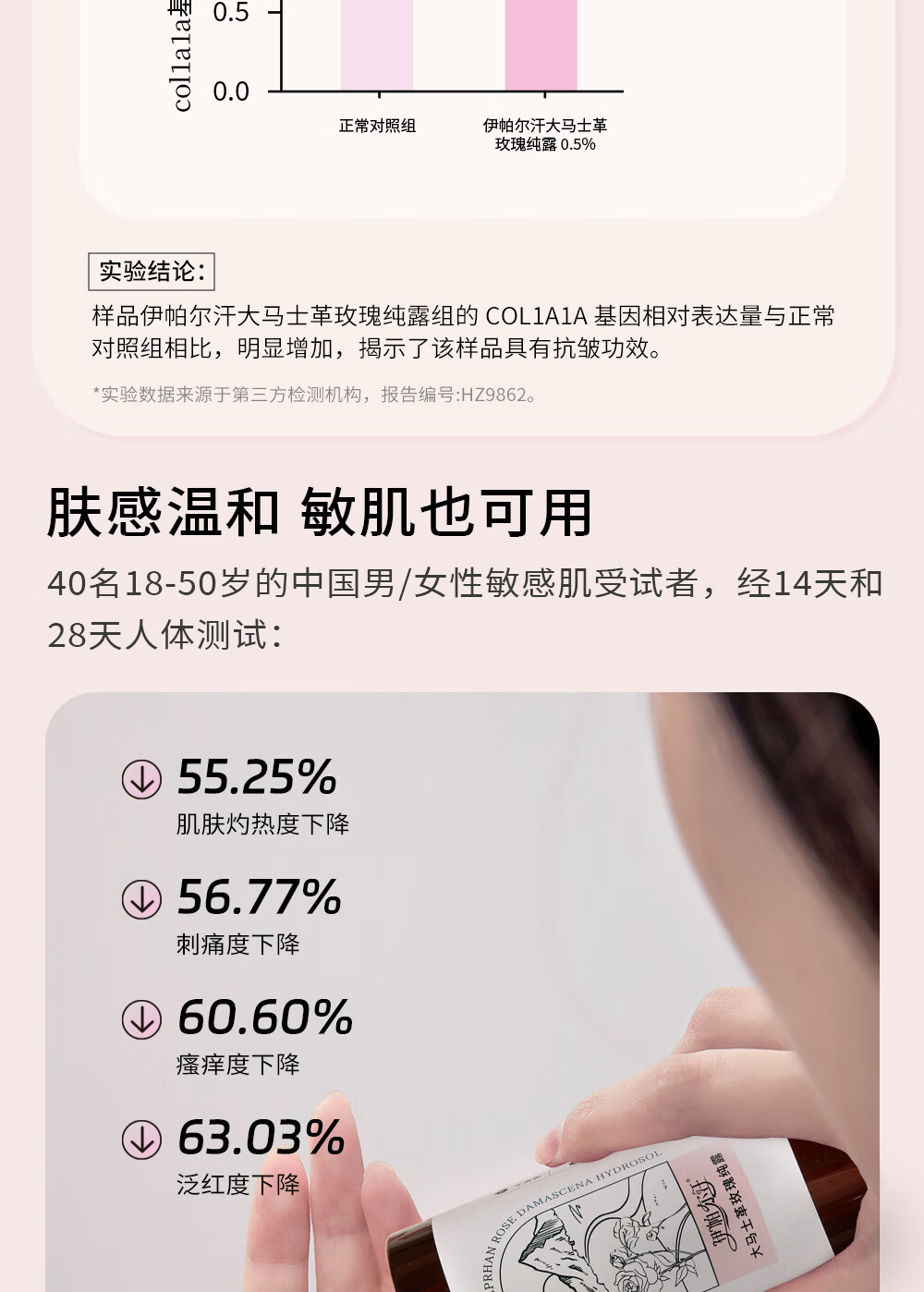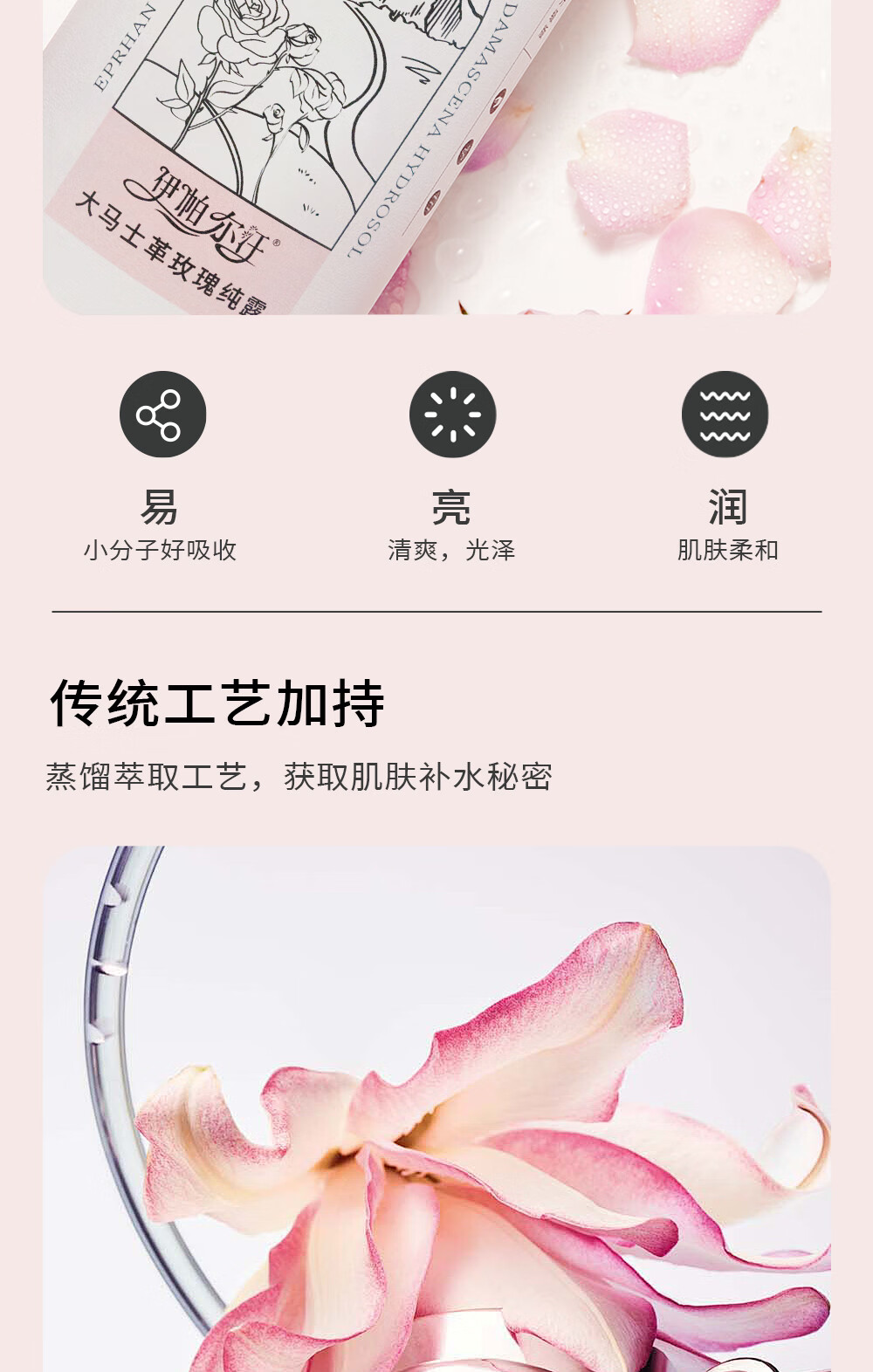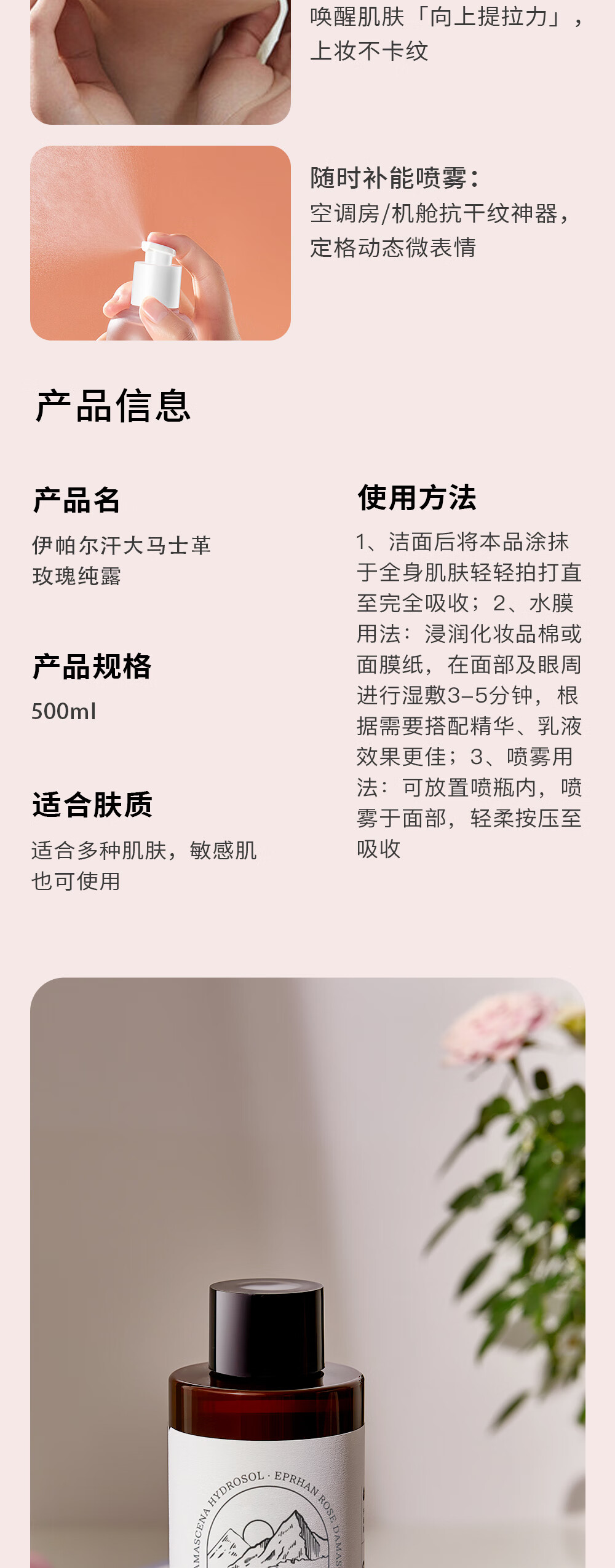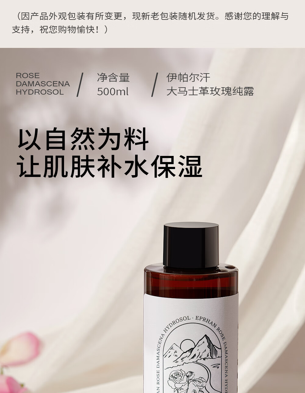 伊帕尔汗玫瑰纯露薰衣草纯露天然花水保湿爽肤水礼物送女友送男友 玫瑰纯露500ml