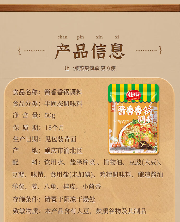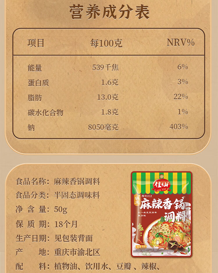 佳仙 重庆正宗麻辣香锅底料干锅酱料家用秘制川味酱汁香辣小炒酱调料 锅主麻辣香锅调料【50g*3袋】