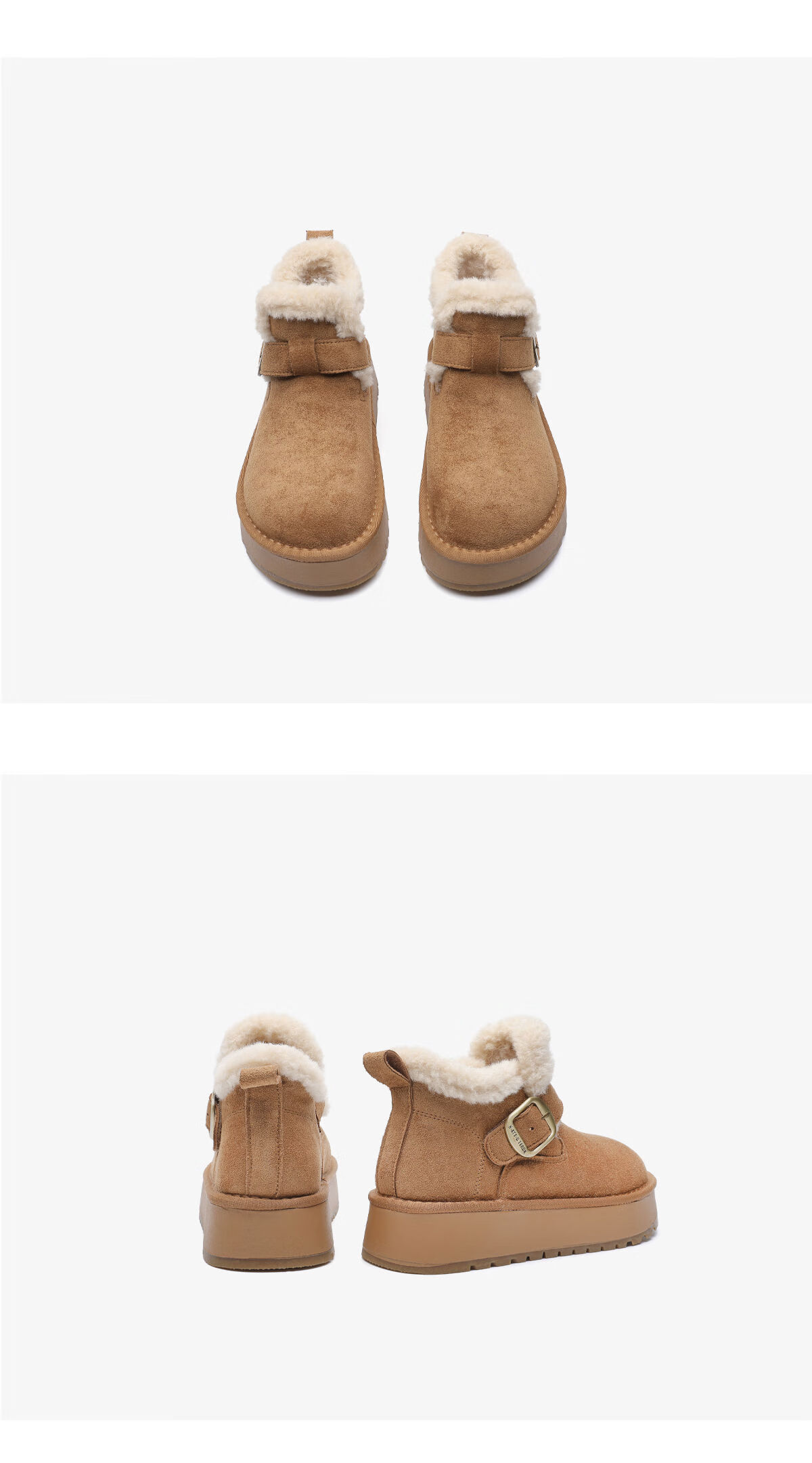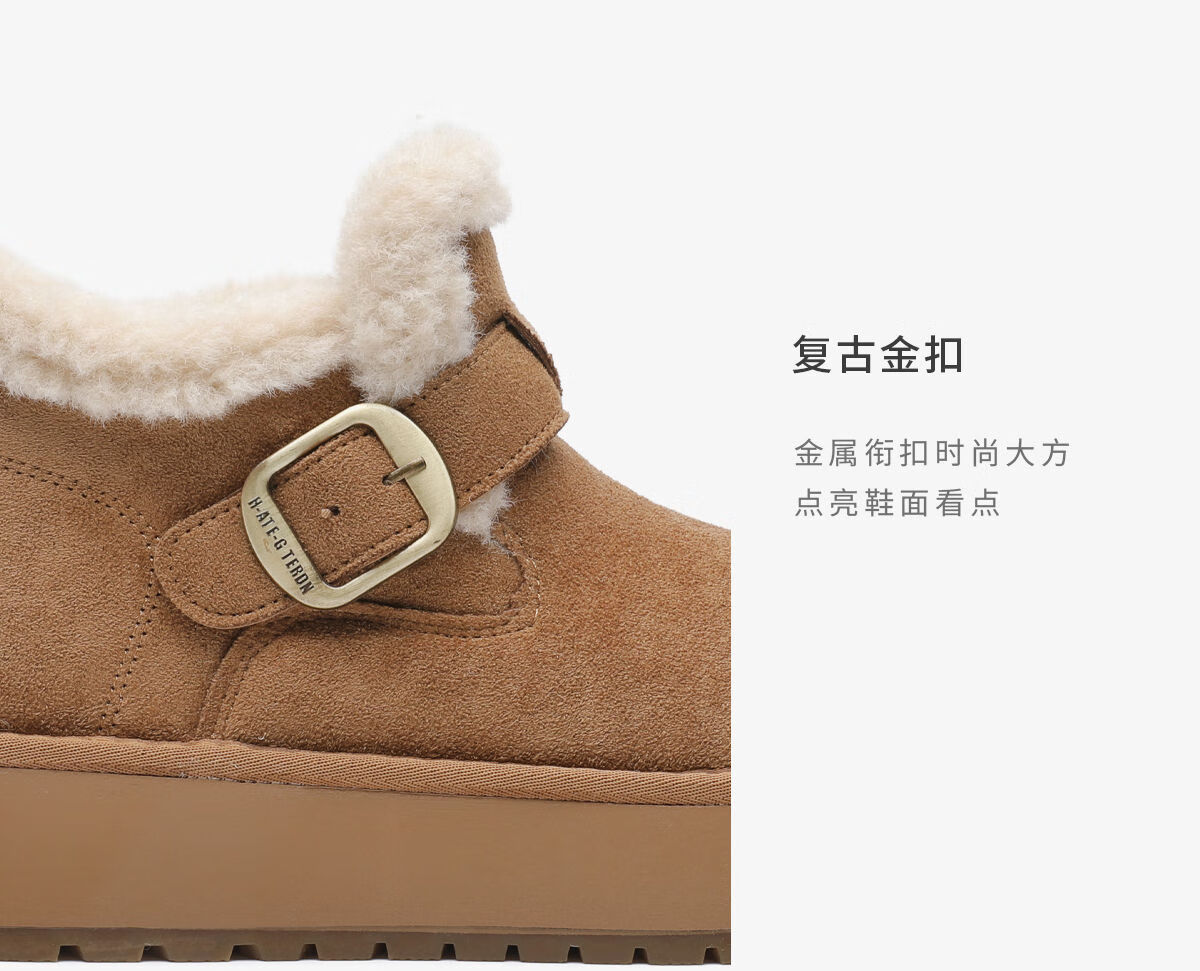月芽儿加绒加厚全包勃肯鞋女2025冬季新款金属扣带保暖雪地靴 绒里黄色04T 35