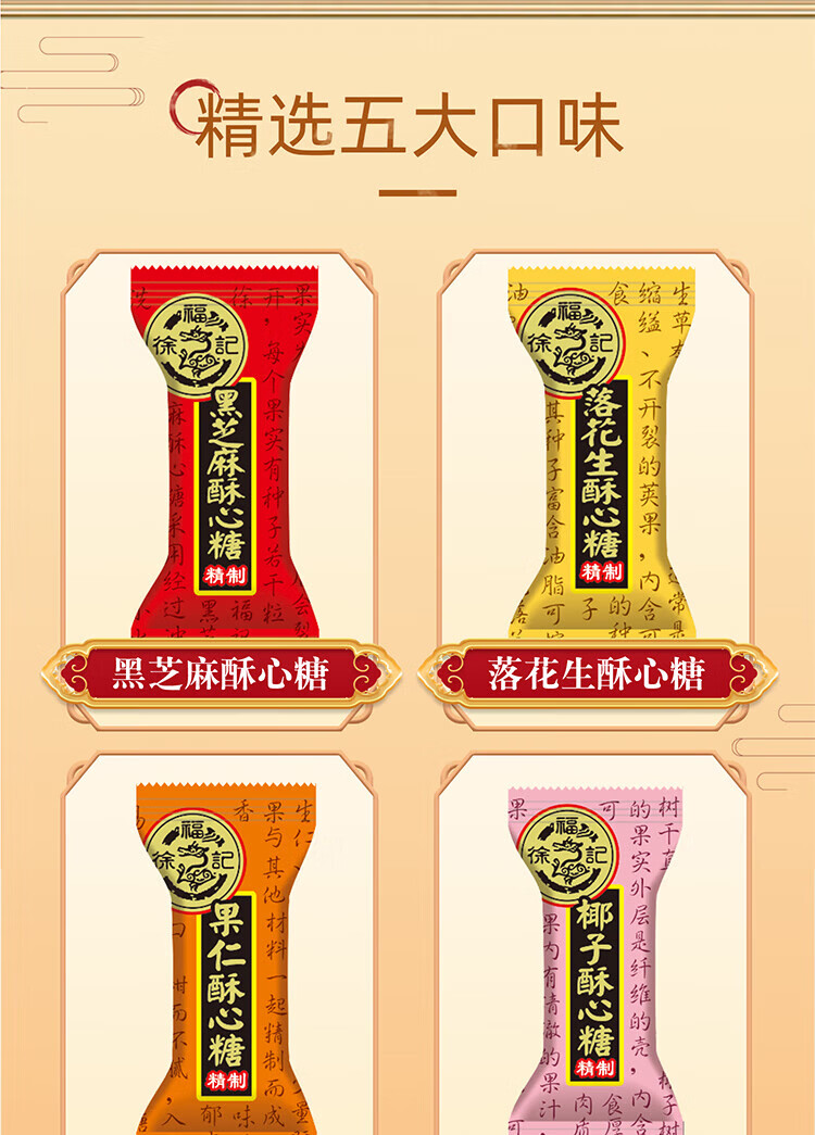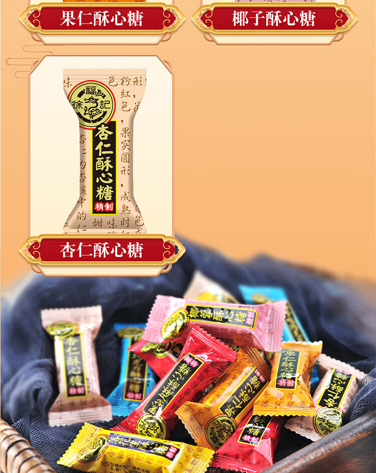 徐福记糕点饼干酥心糖混合口味黑芝麻落花生果仁杏仁椰蓉结婚喜糖散装4 混合口味酥心糖800g