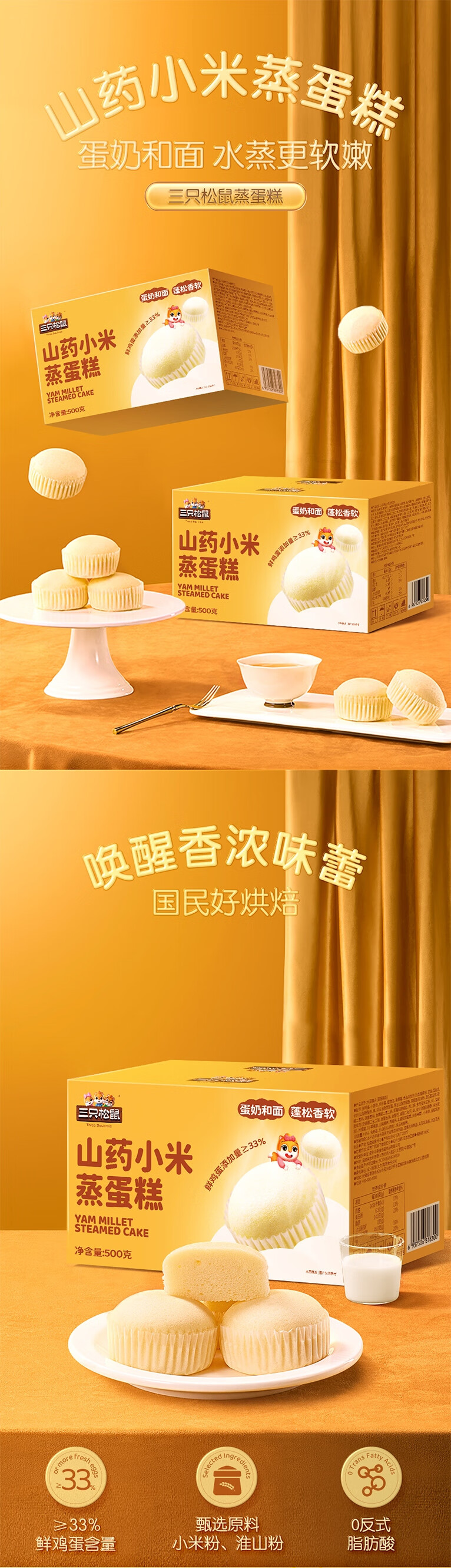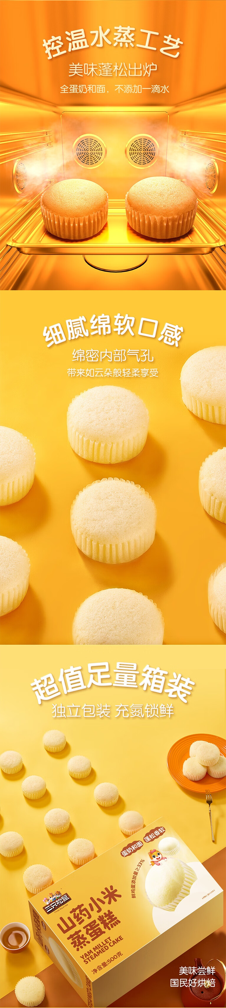 三只松鼠小米山药蒸蛋糕500g 早餐面包吐司营养饱腹代餐办公室下午茶点心