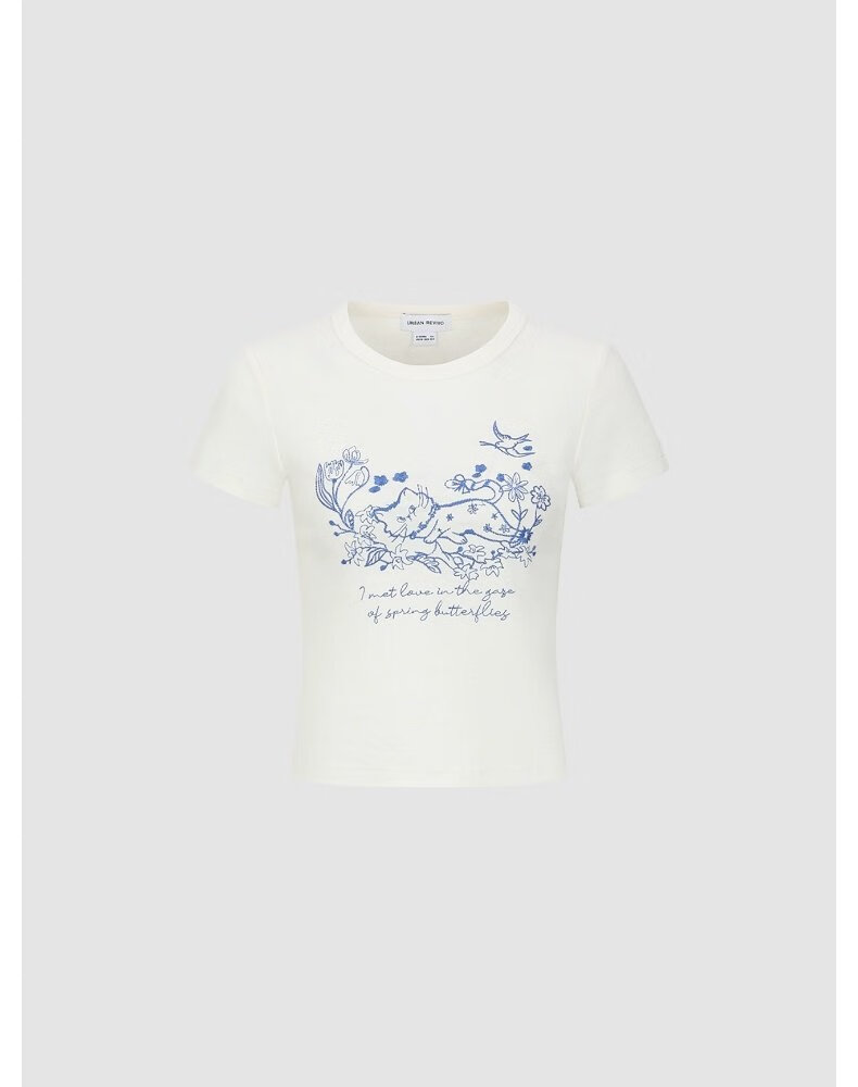 UR2025春季新款女装趣味休闲萌宠刺绣短袖T恤UYL450048