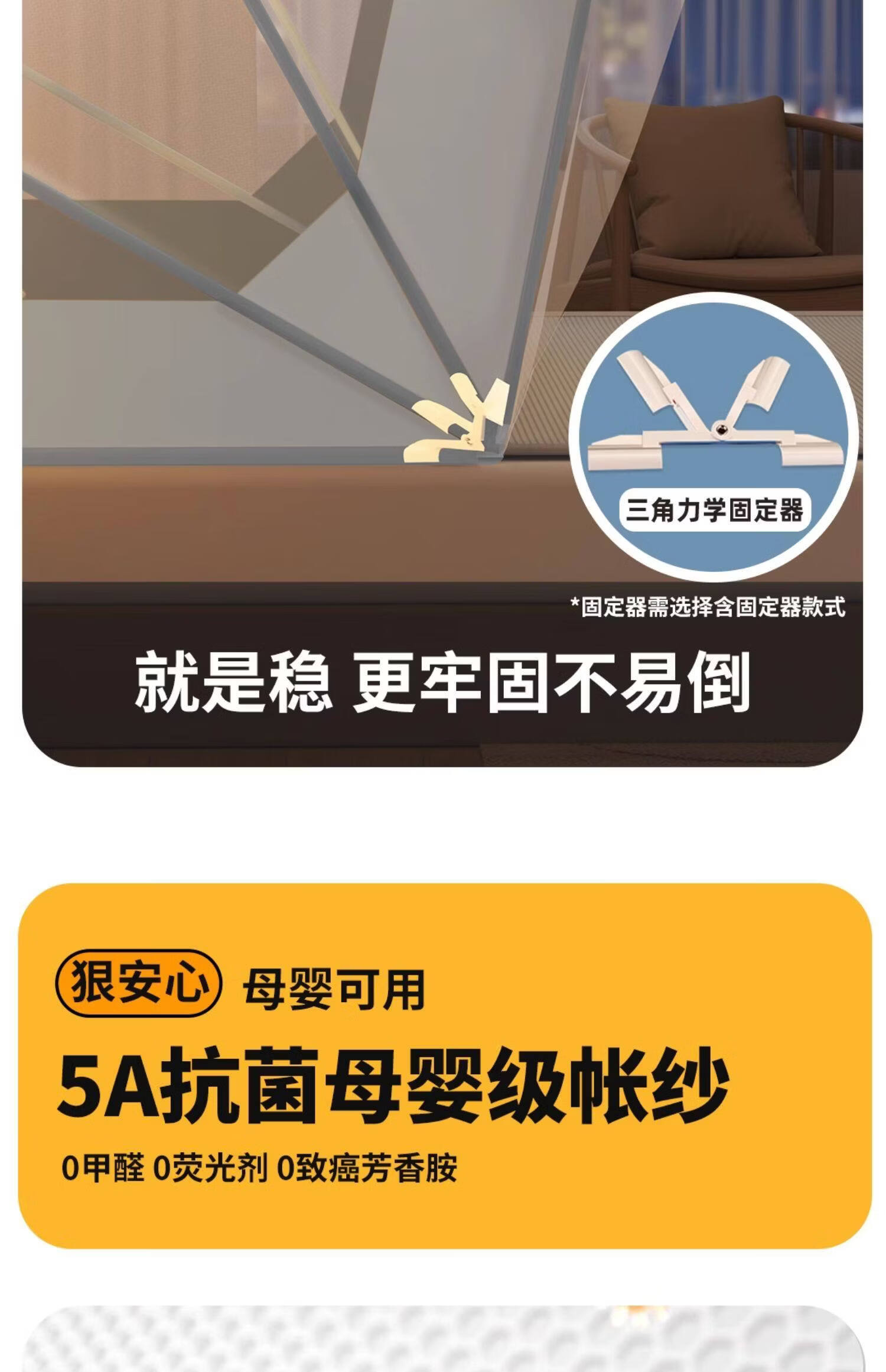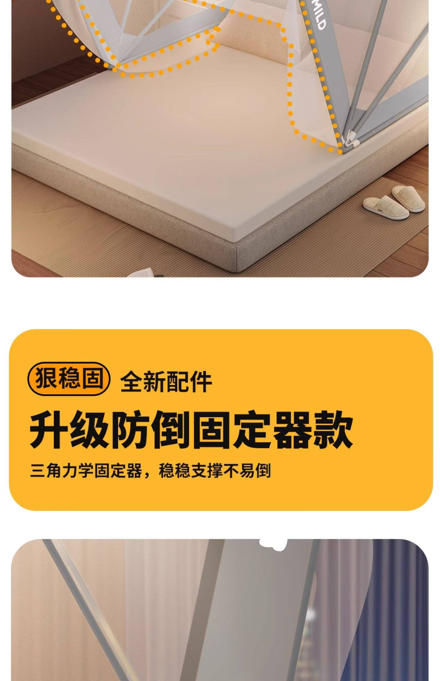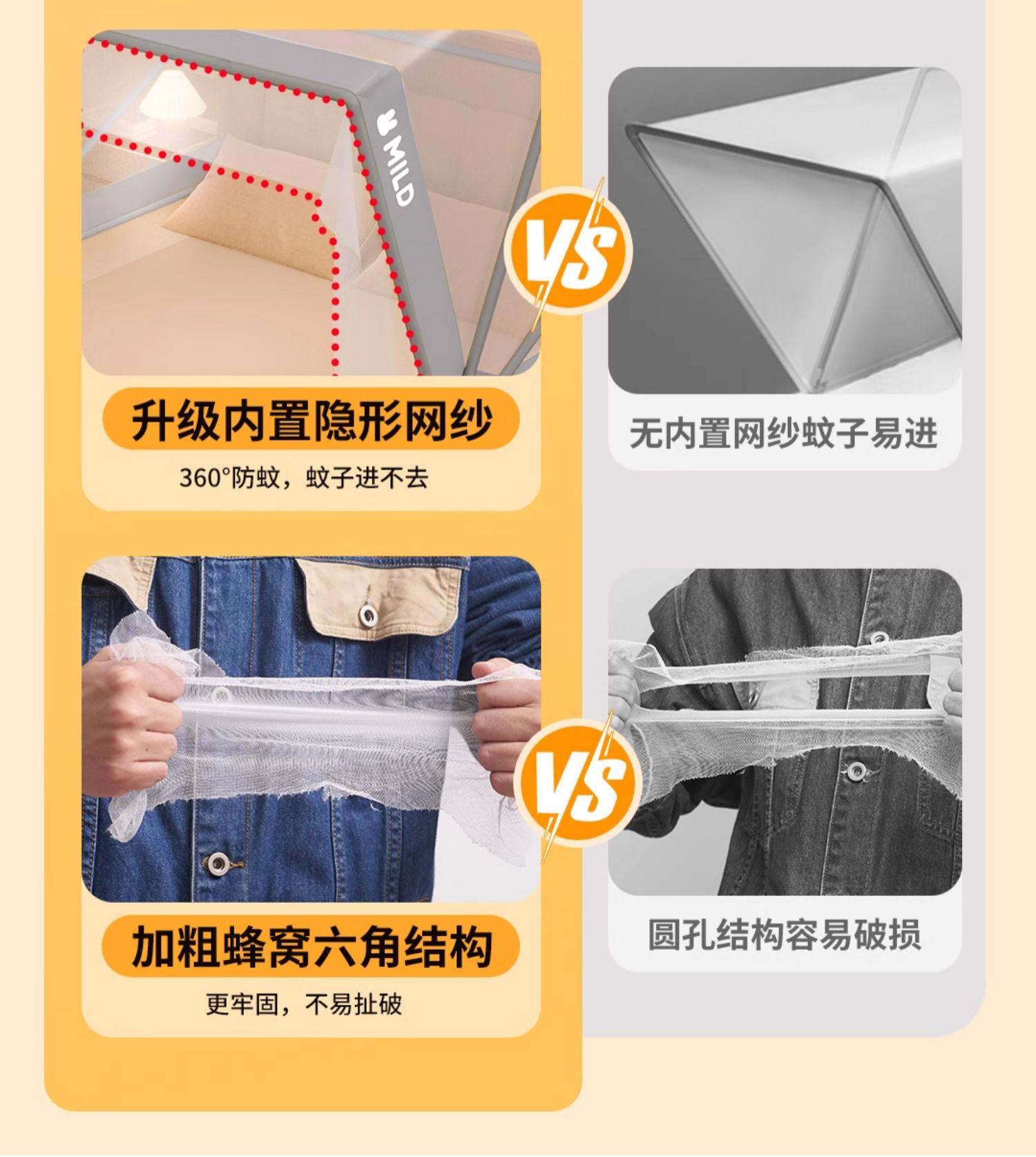 高睿家用可折叠蚊帐新款卧室儿童婴儿蒙古包防蚊罩免安装学生宿舍帐篷 经典款-星河灰【A类母婴级帐纱/无甲醛】 1.5m宽床【蚊帐宽135*长190】免安装易折叠易收纳