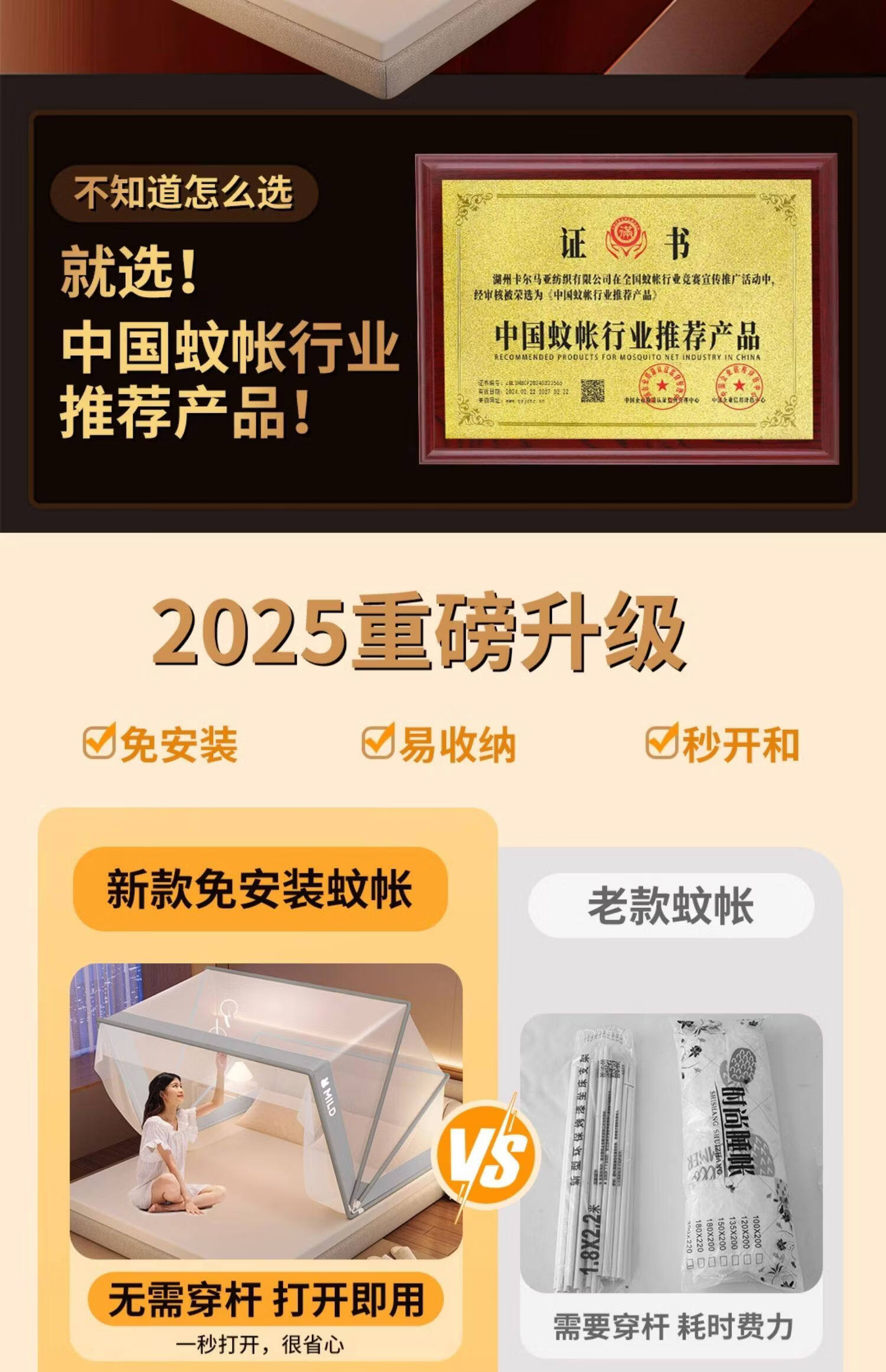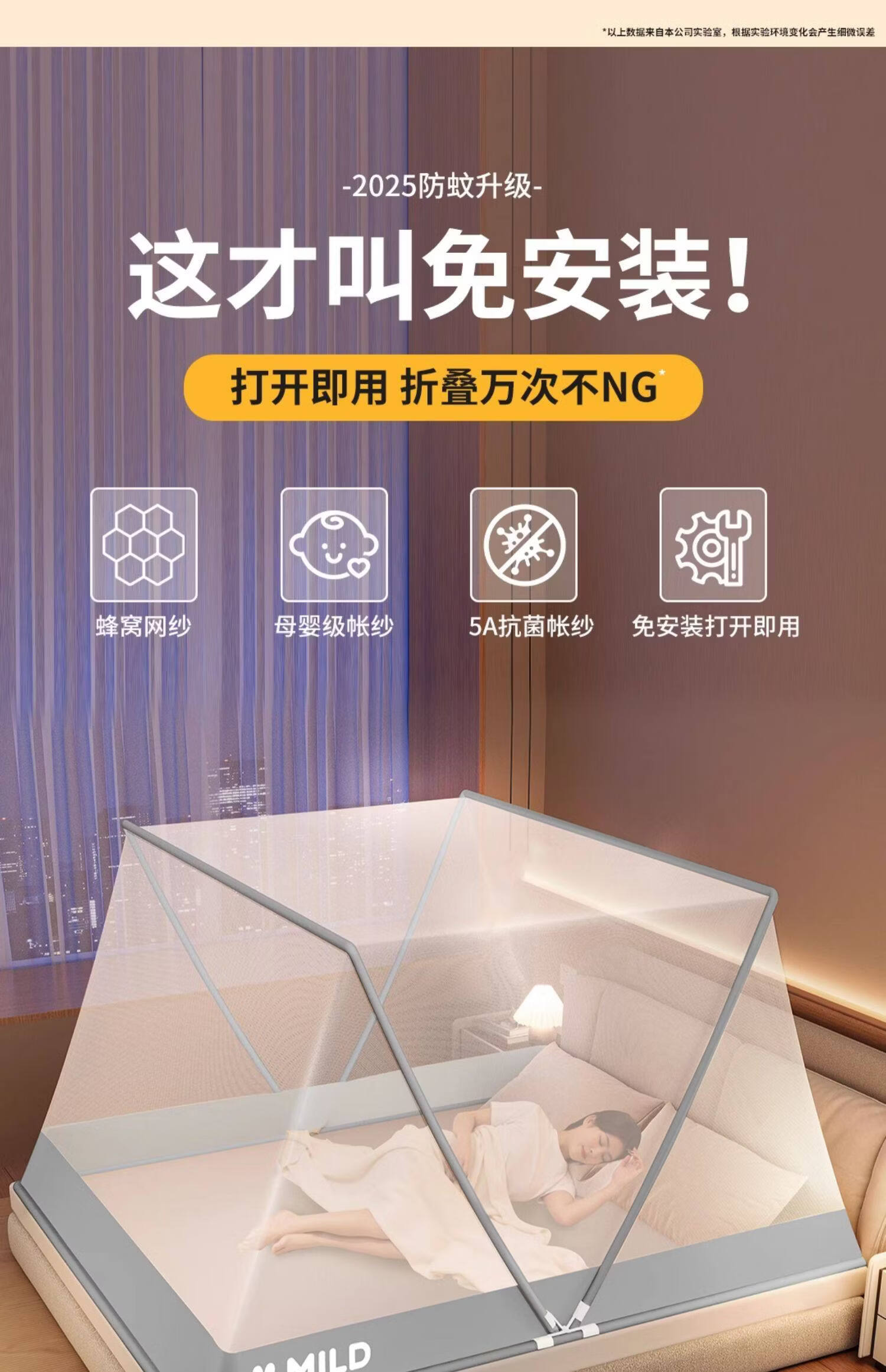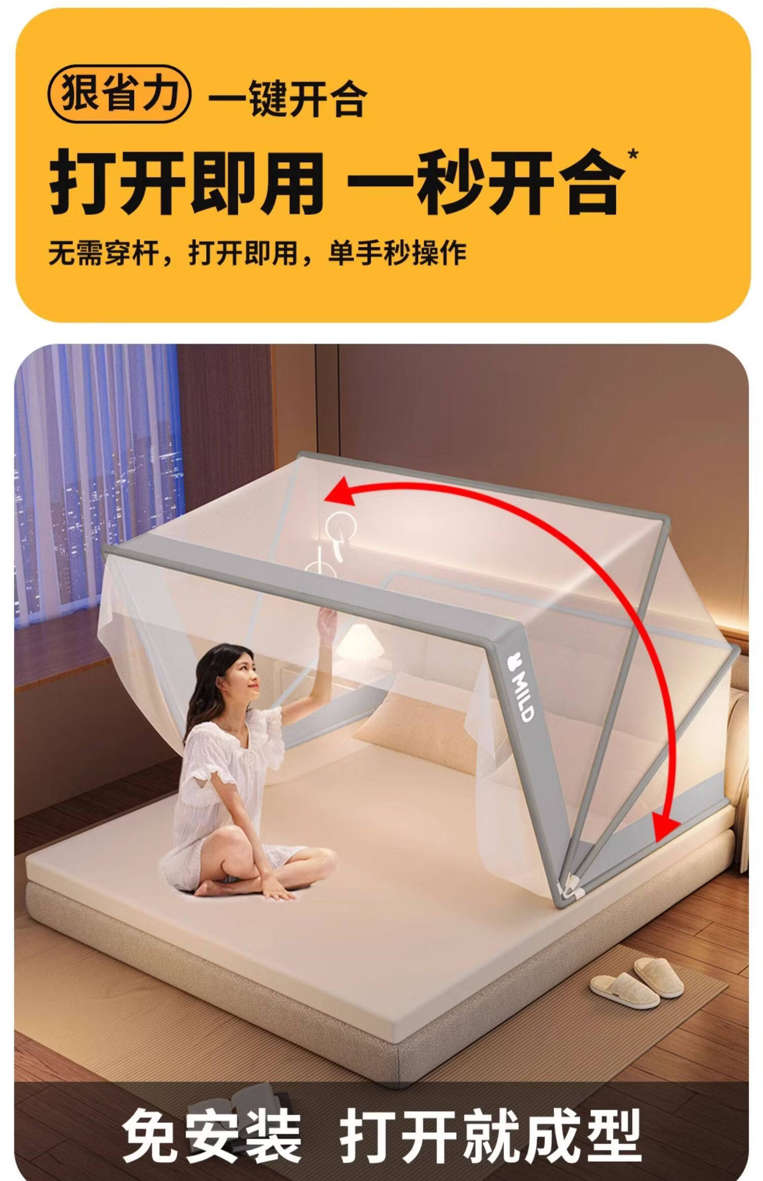 高睿家用可折叠蚊帐新款卧室儿童婴儿蒙古包防蚊罩免安装学生宿舍帐篷 经典款-星河灰【A类母婴级帐纱/无甲醛】 1.5m宽床【蚊帐宽135*长190】免安装易折叠易收纳