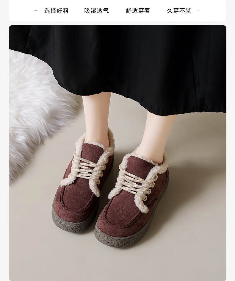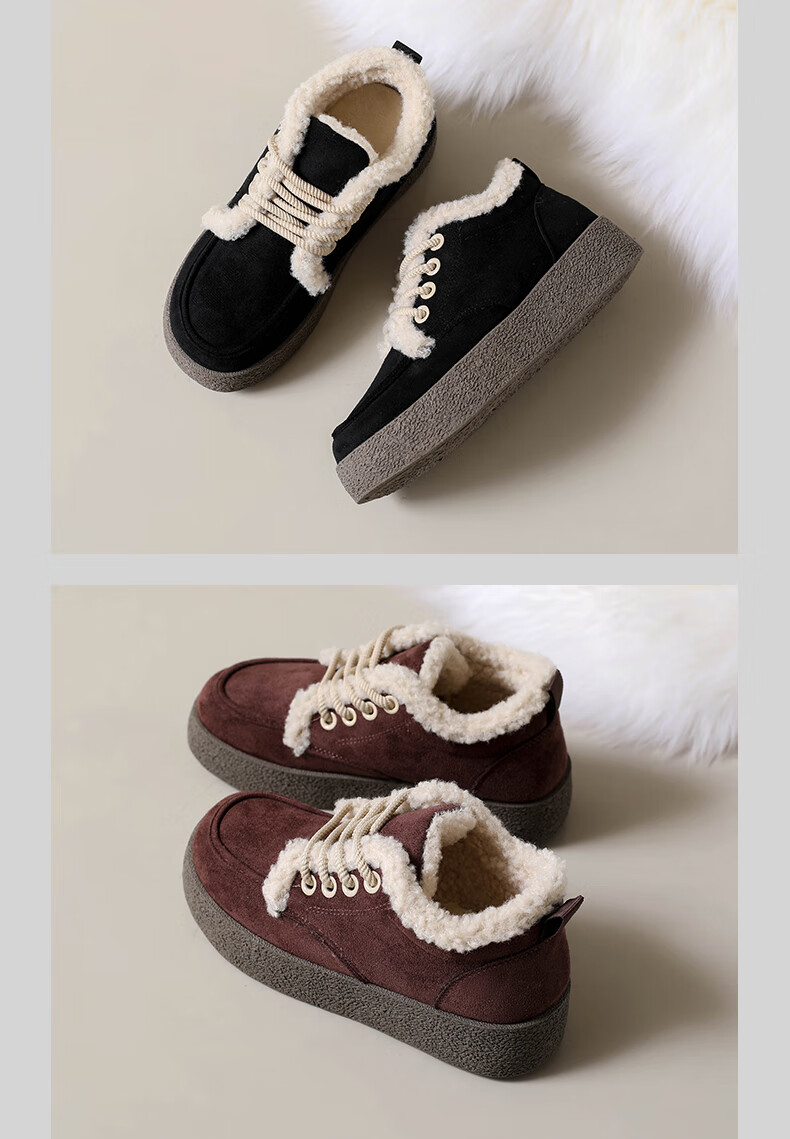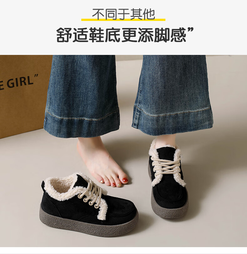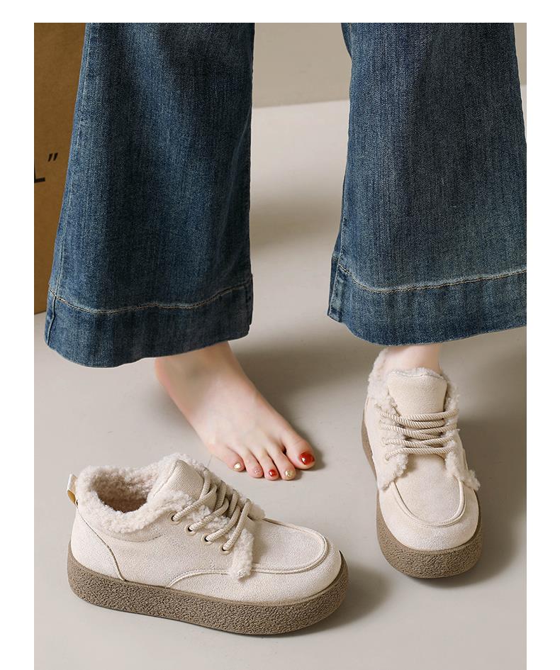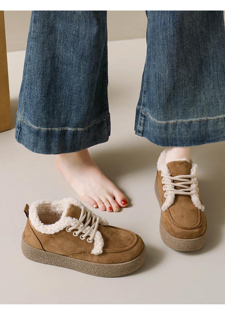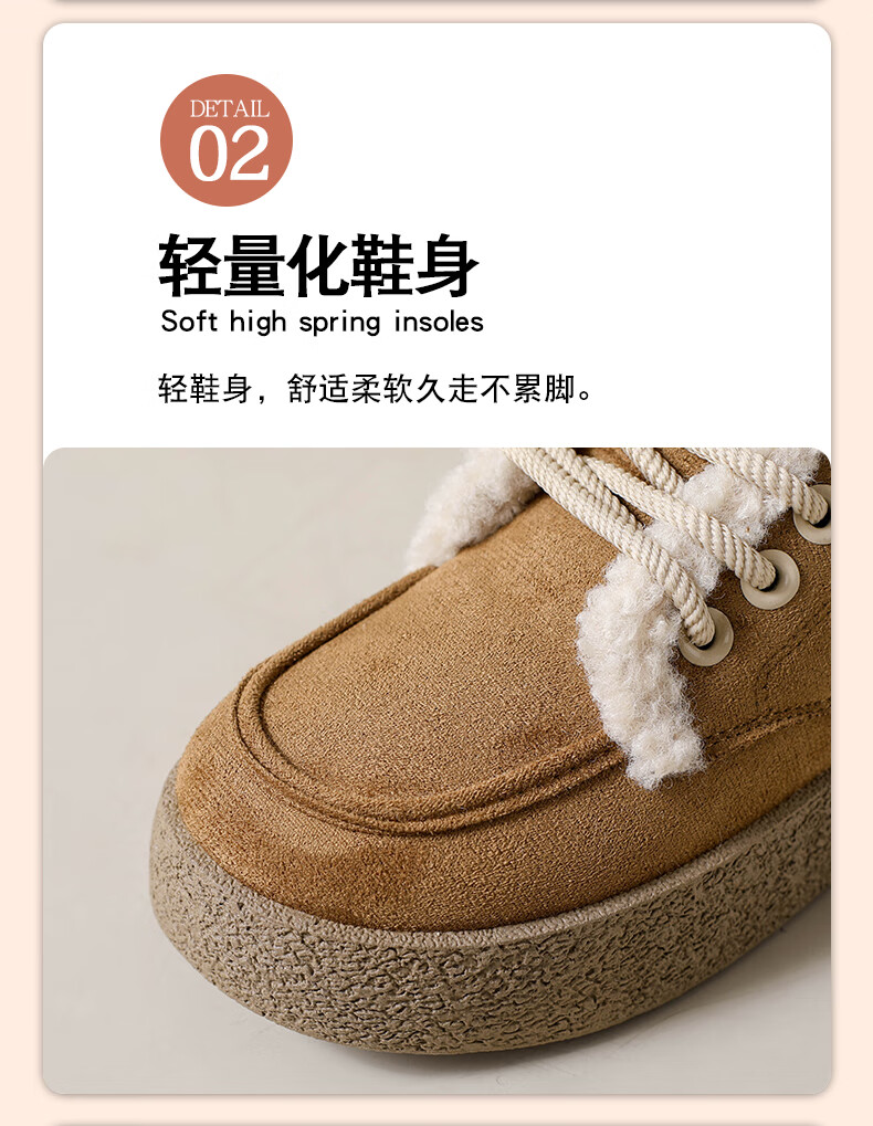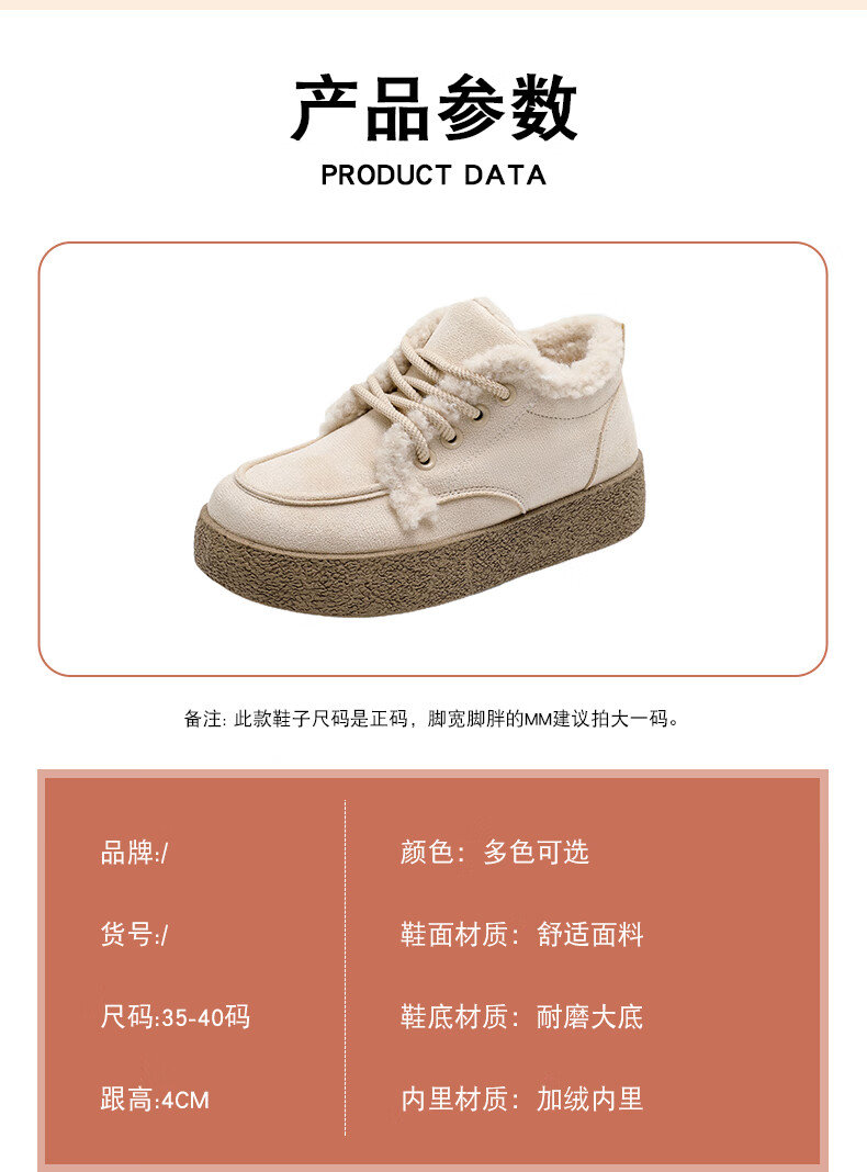 稻草人(MEXICAN)棉鞋女款踩屎感一脚蹬冬季厚底勃肯鞋外穿懒人保暖加绒系带雪地靴 米色【升级款更防滑耐磨】 40