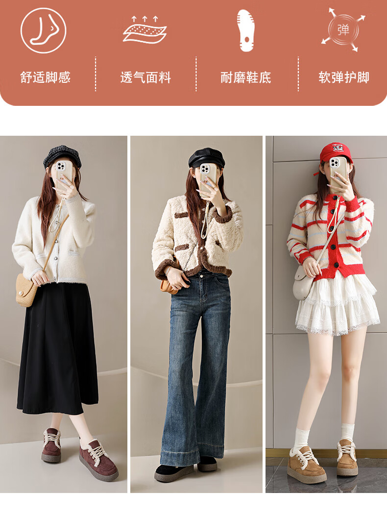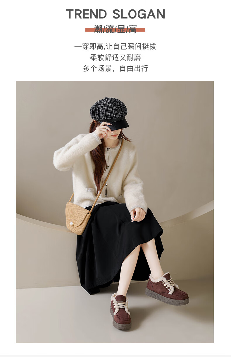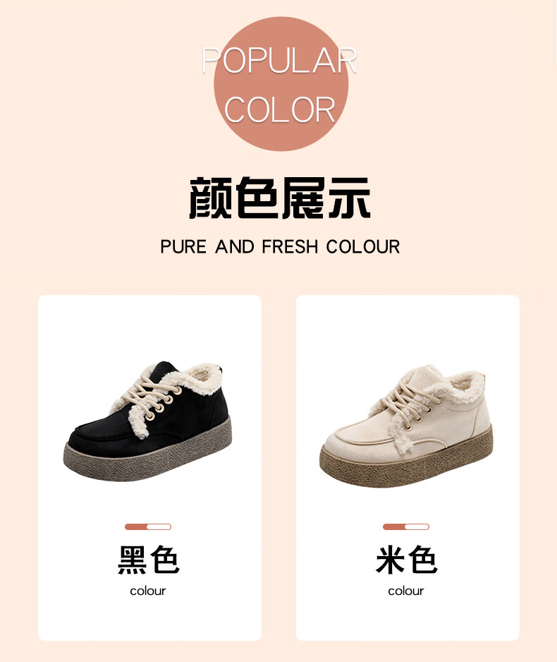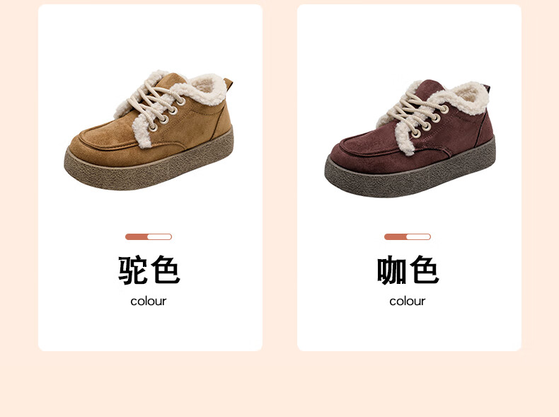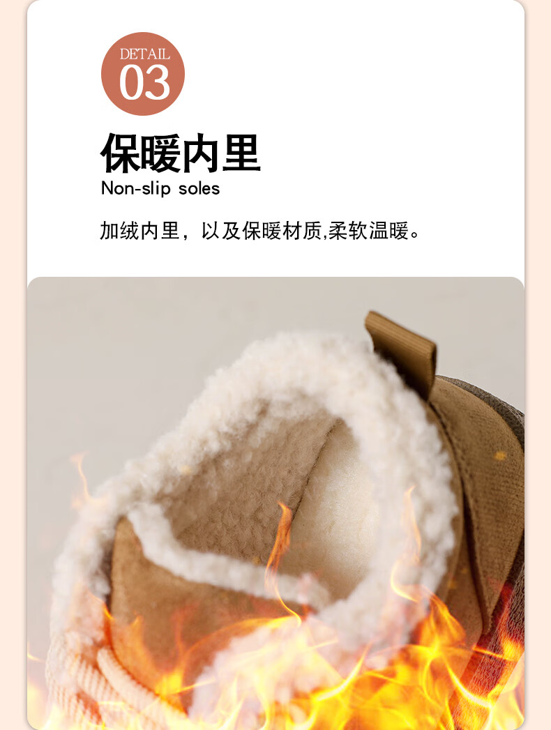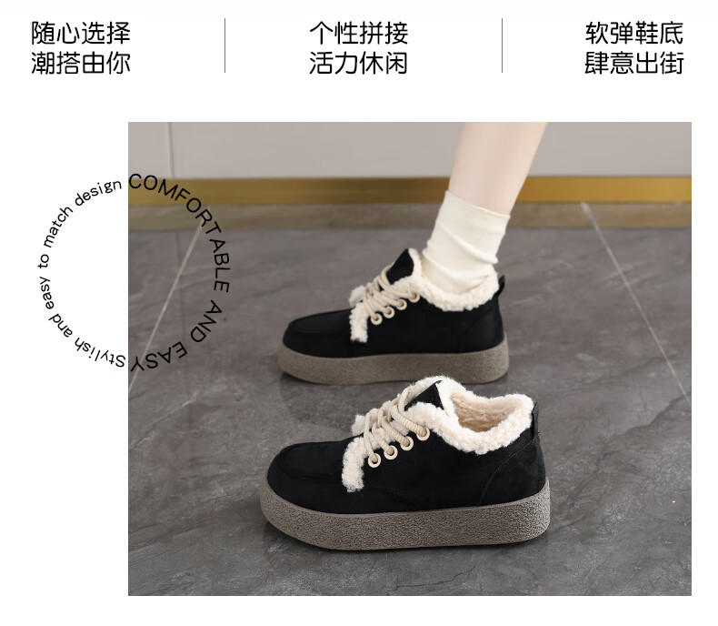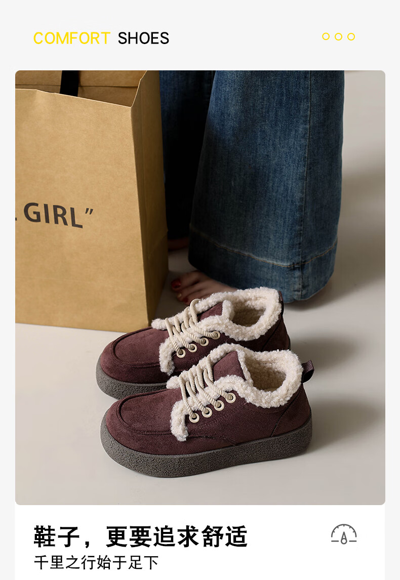 稻草人(MEXICAN)棉鞋女款踩屎感一脚蹬冬季厚底勃肯鞋外穿懒人保暖加绒系带雪地靴 米色【升级款更防滑耐磨】 40