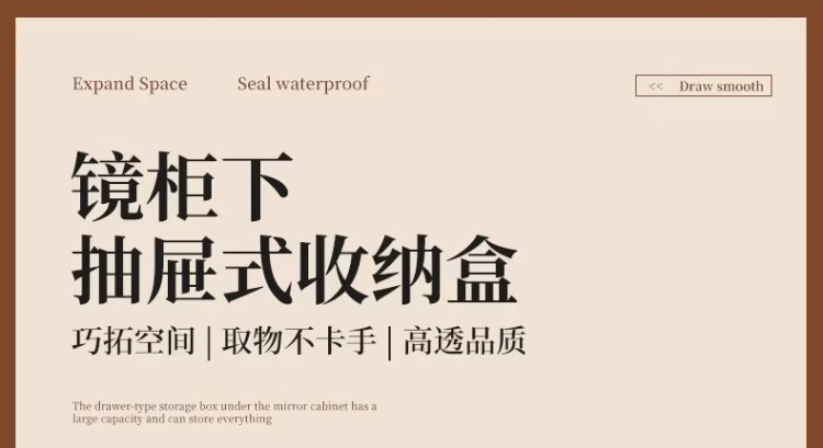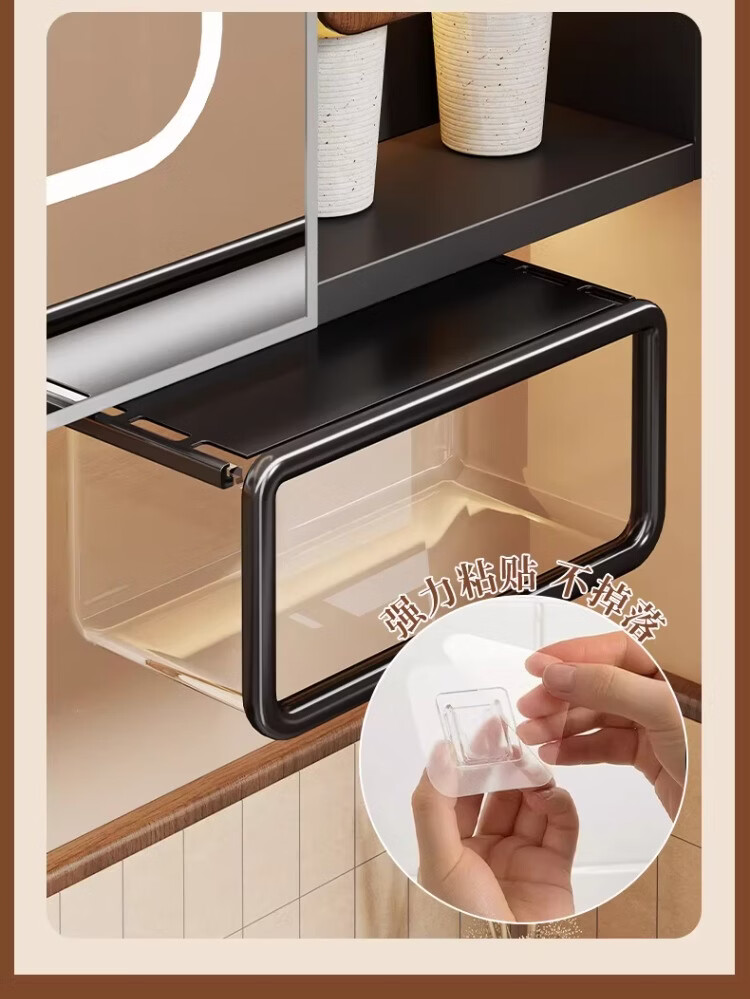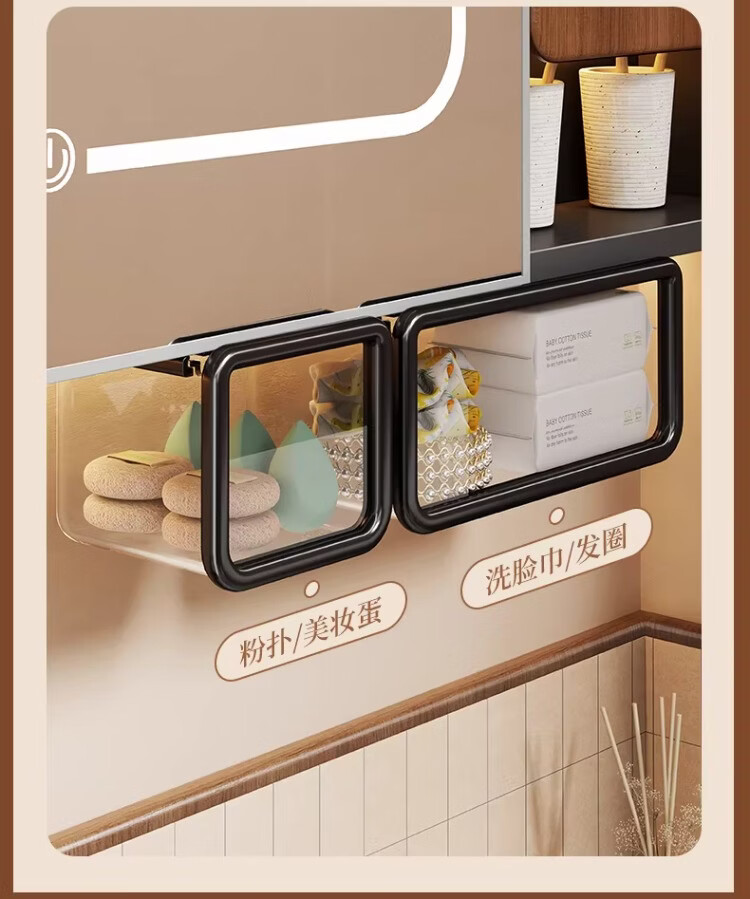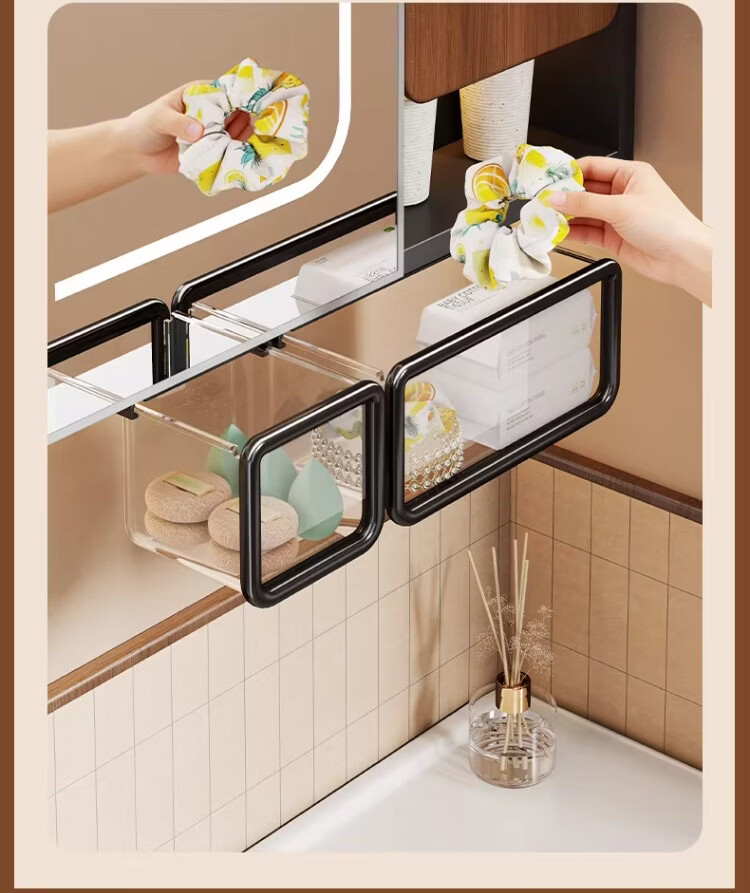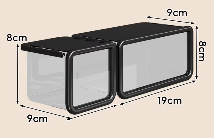 尔思家收纳盒抽屉式透明盒子镜柜化妆品置物架收纳神器整理盒收纳神器 黑色-小号