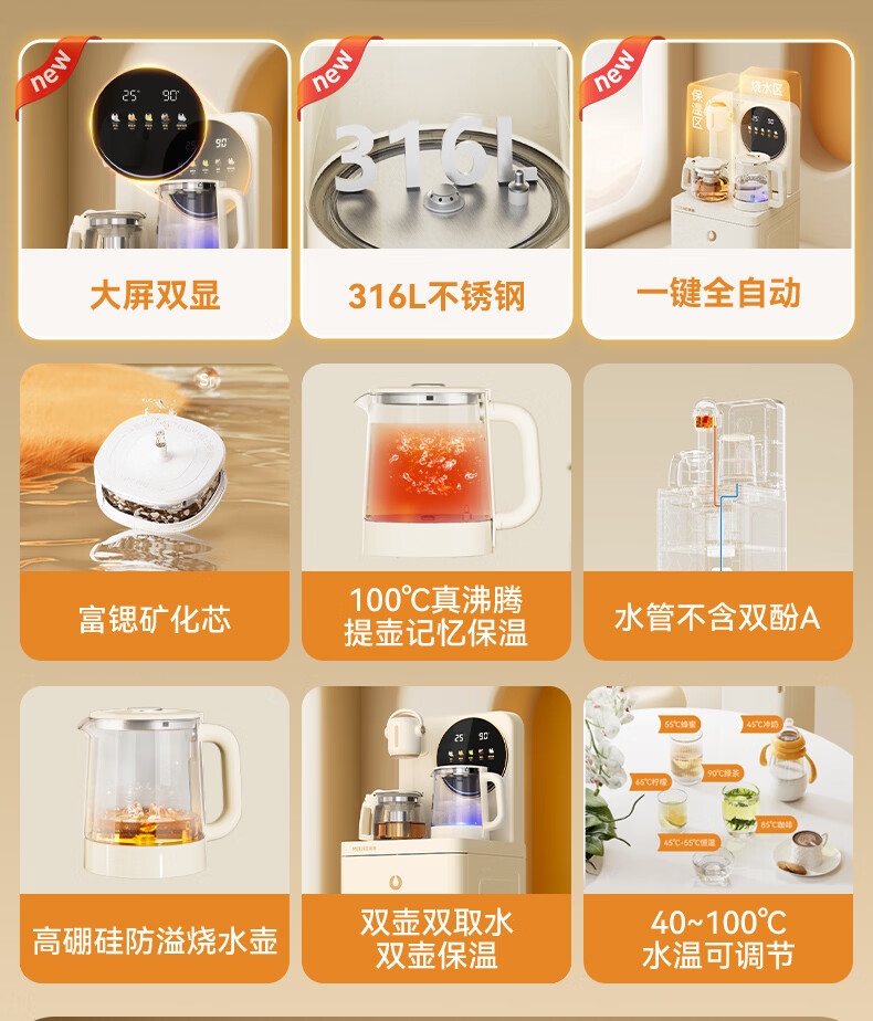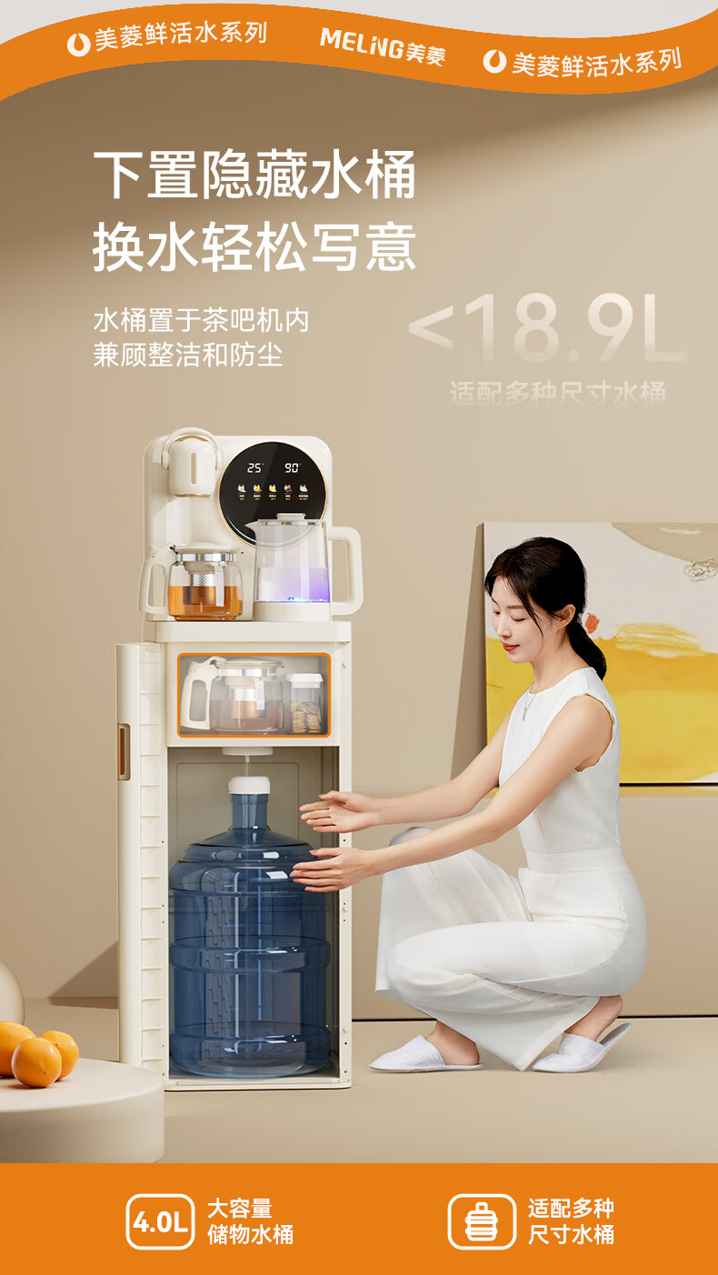 美菱富锶矿化防溢茶吧机家用多功能办公室立式饮水机茶吧柜316L不锈钢烧水壶MY-N08Pro鲜活水1.0Pro
