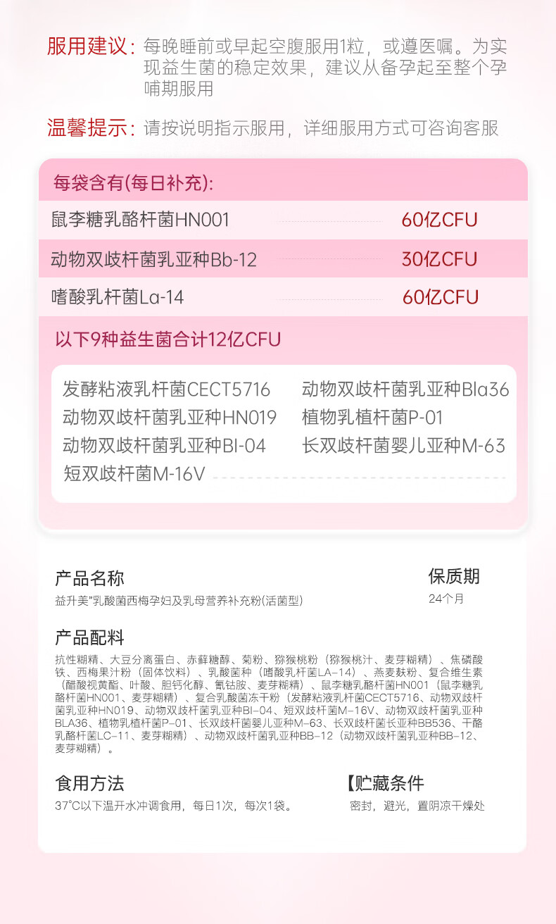 金斯健贝益升美孕妇益生菌控益生元便糖秘肠哺专乳期营养便粉用道孕期 48g*1盒