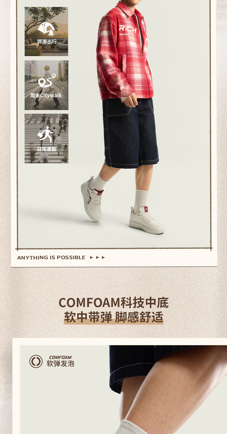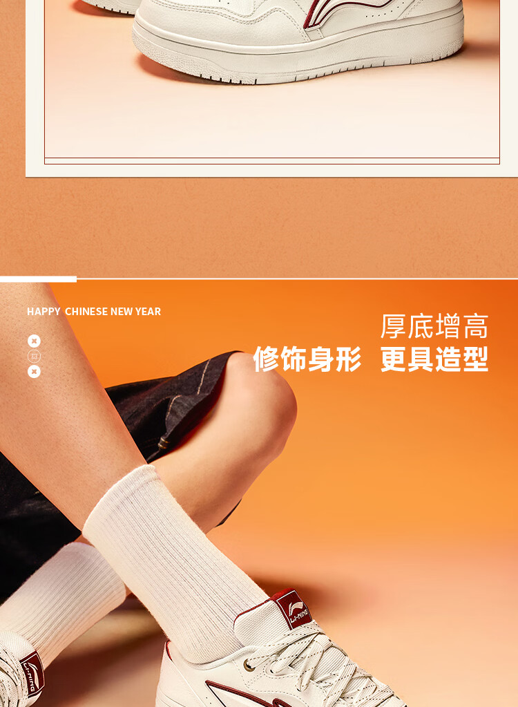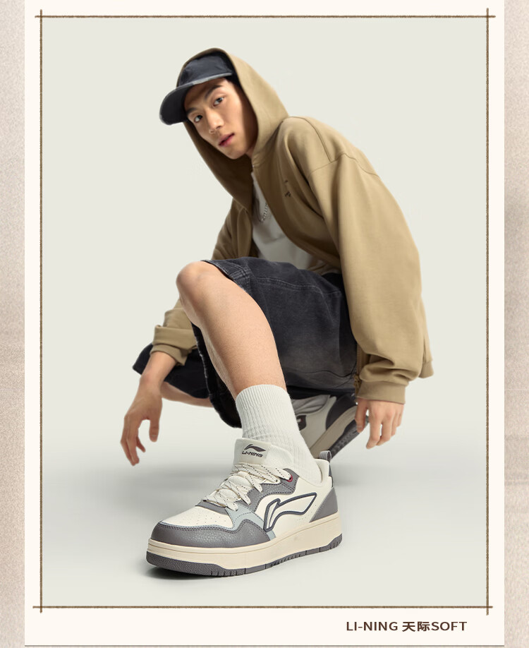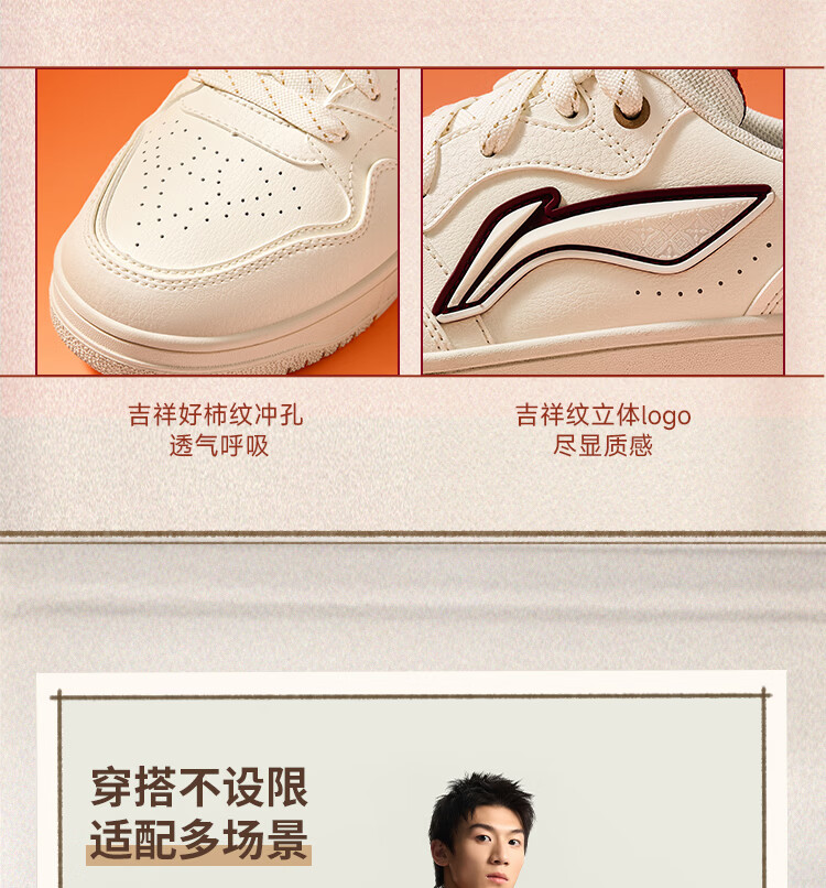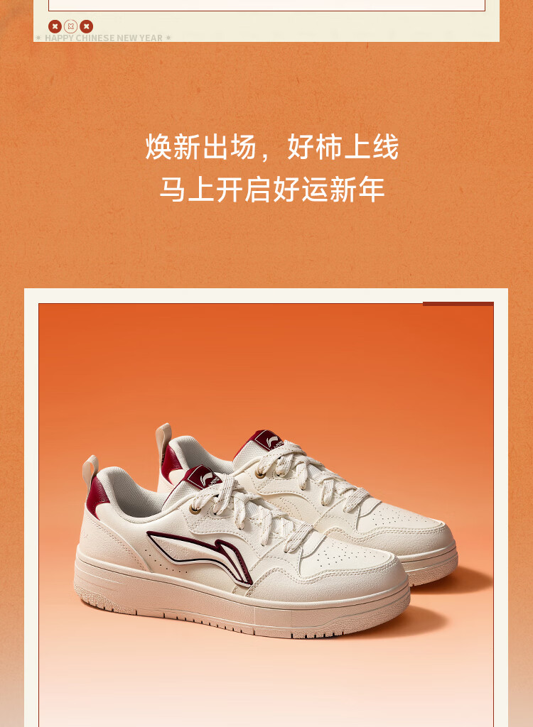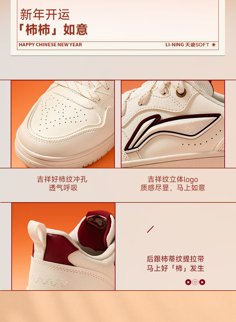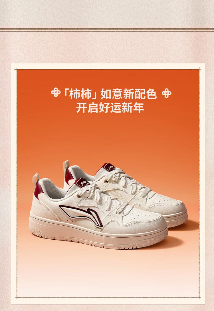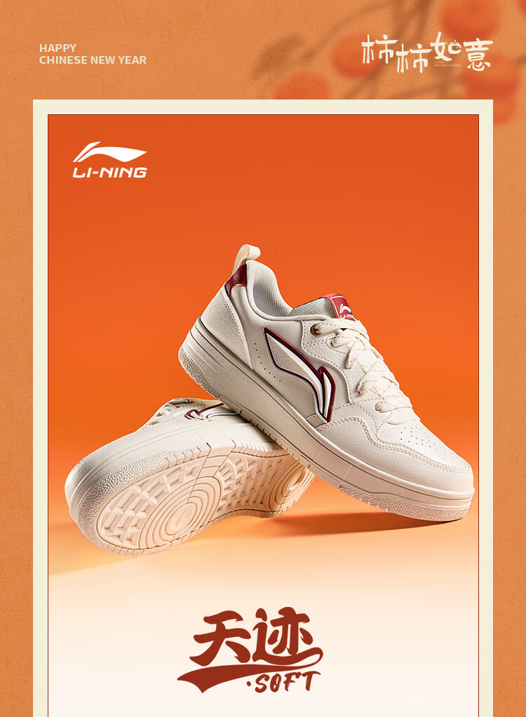 李宁天迹SOFT 柿柿如意丨板鞋男子新年款柔软舒适经典休闲鞋AGCW067