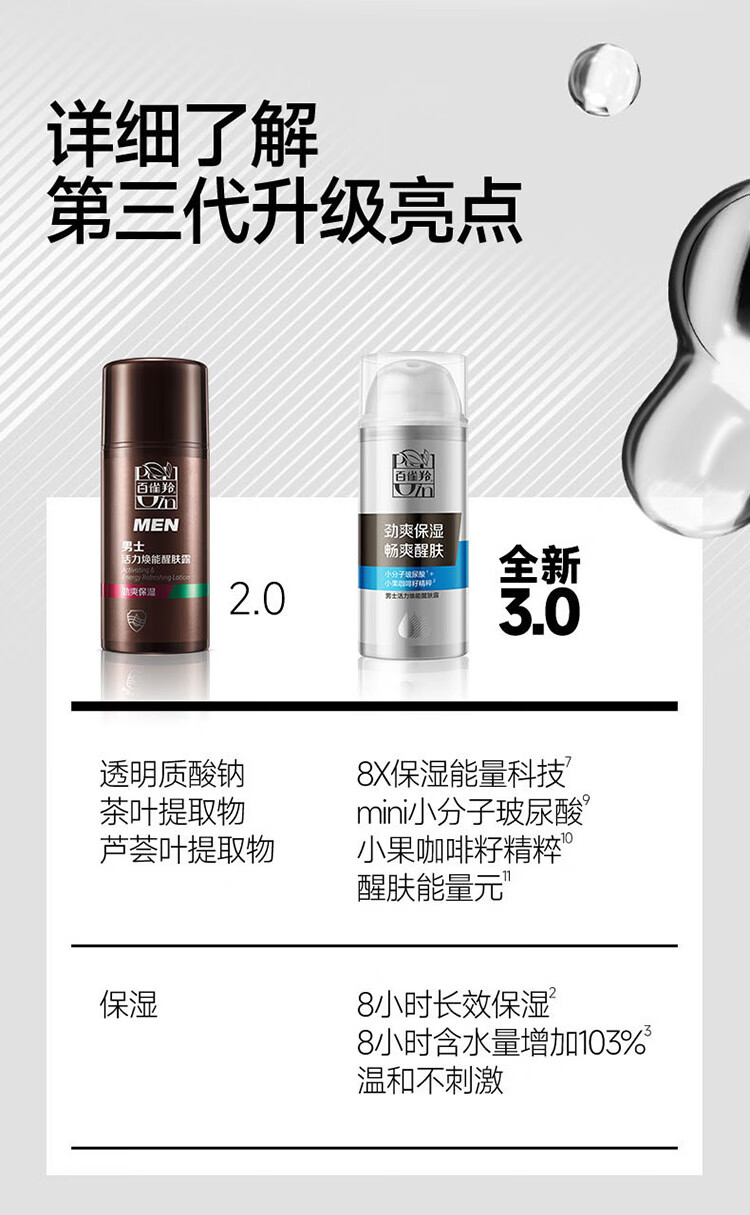 百雀羚男士活力焕能醒肤露(第三代)补水保湿品质国货新年礼物