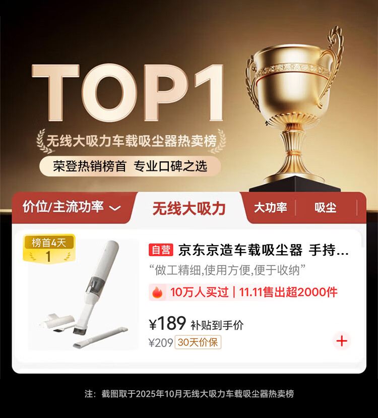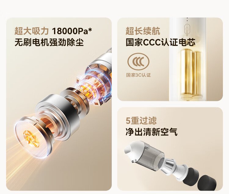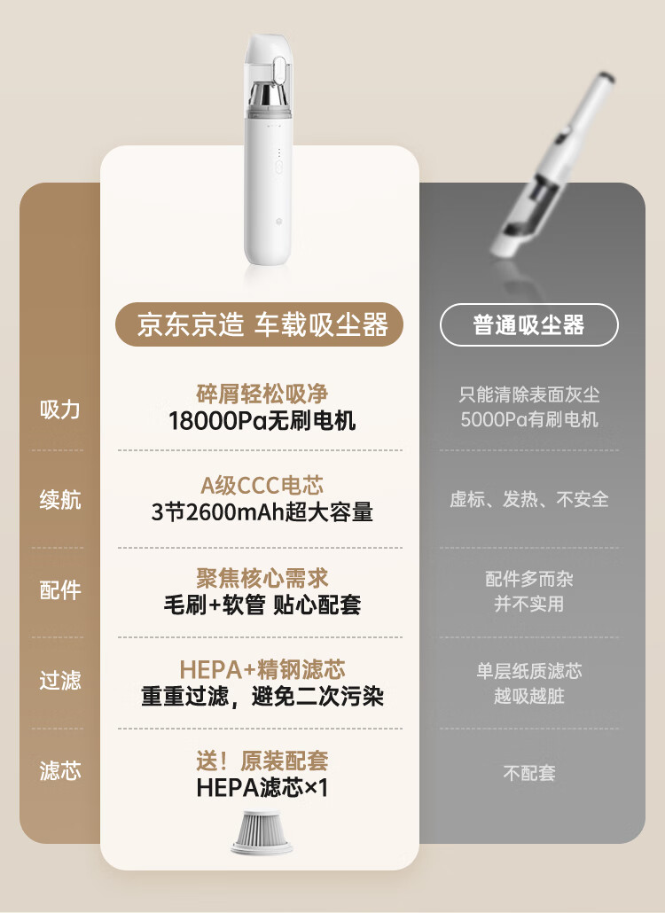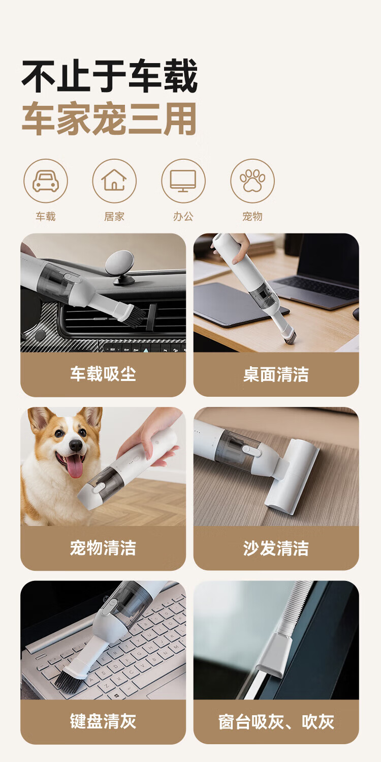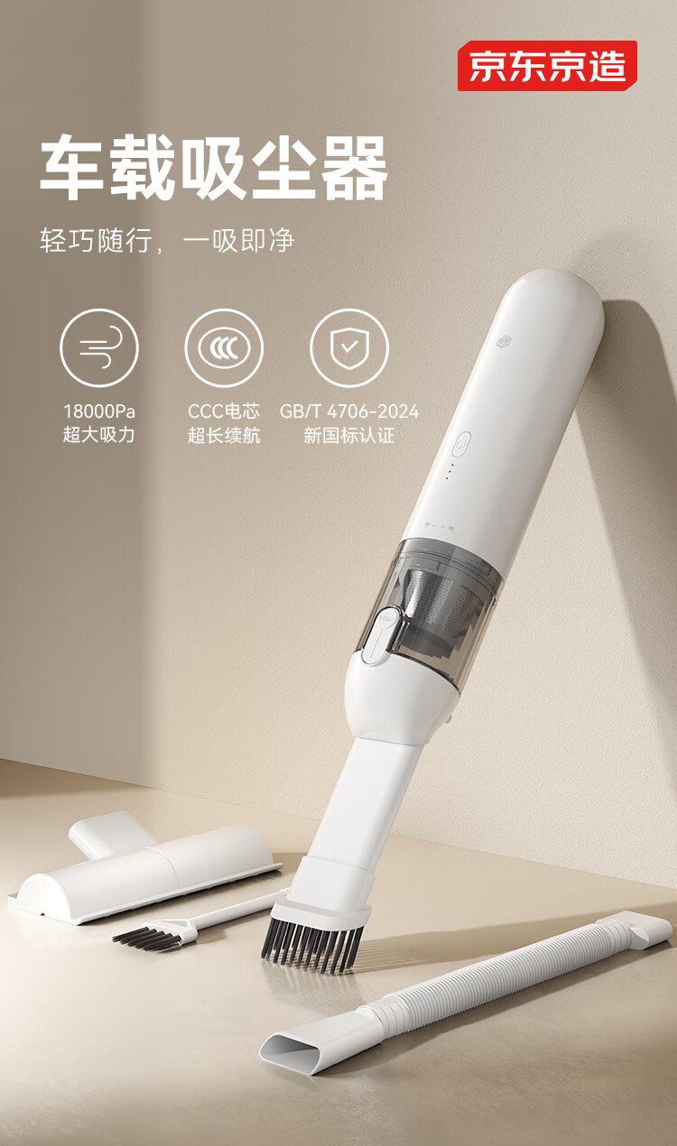 京东京造车载吸尘器 手持无线大吸力 持久续航吹吸一体 车载家用桌面窗台宠物清灰除尘 迷你便携随手吸