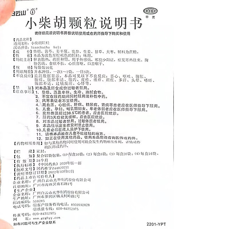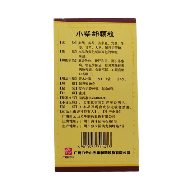 白云山 小柴胡颗粒 6袋*1盒 解表散热 疏肝和胃