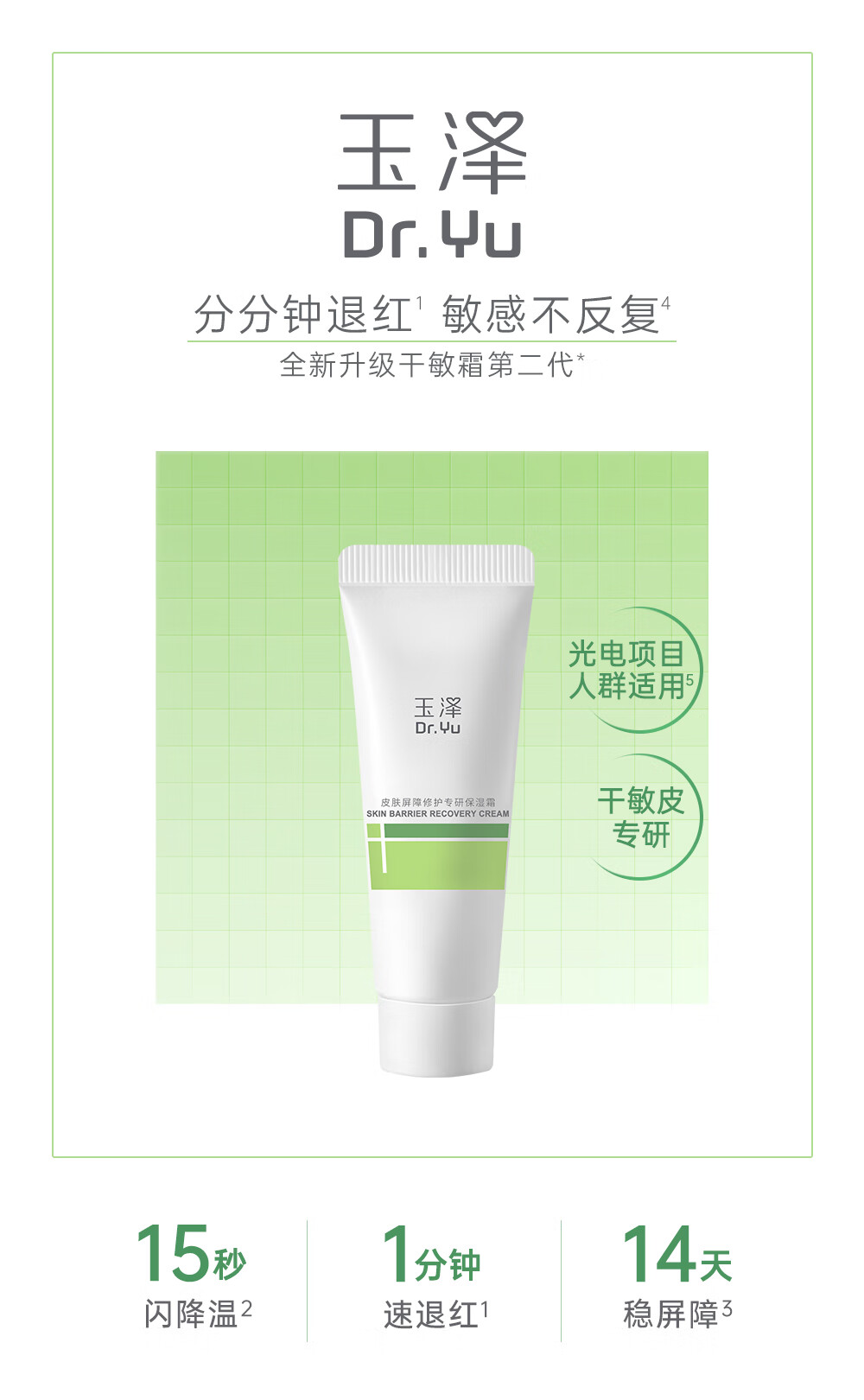 玉泽(Dr.Yu)皮肤屏障修护专研保湿霜10g(敏感肌舒缓退红高保湿面霜)