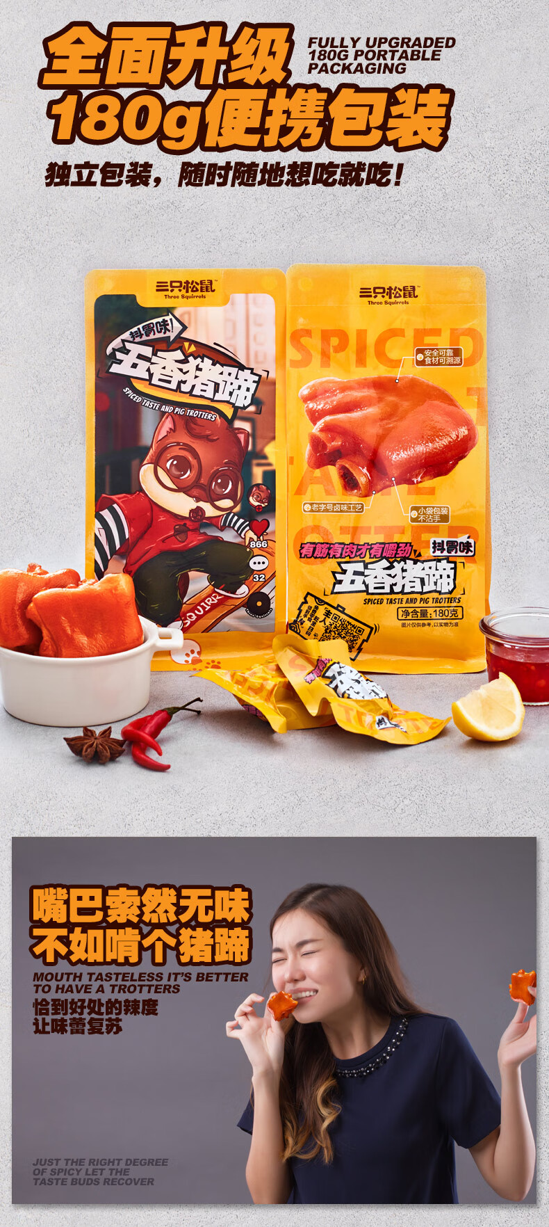 三只松鼠猪蹄五香味180g 即食休闲食品酱卤熟食肉类零食猪脚下酒菜