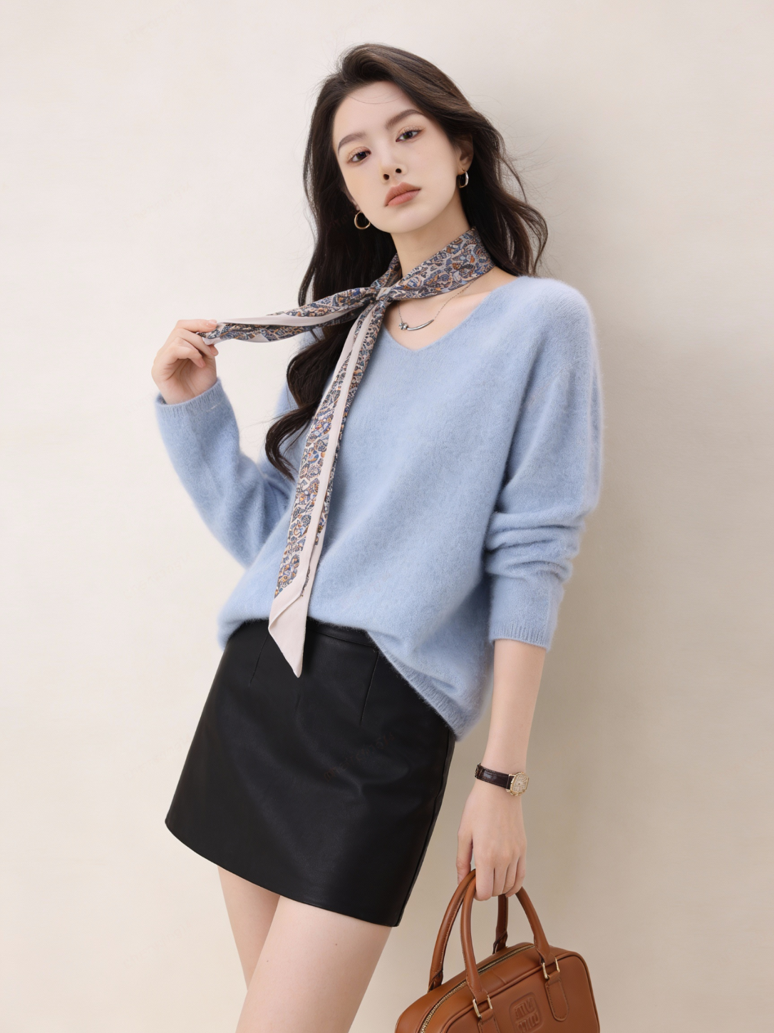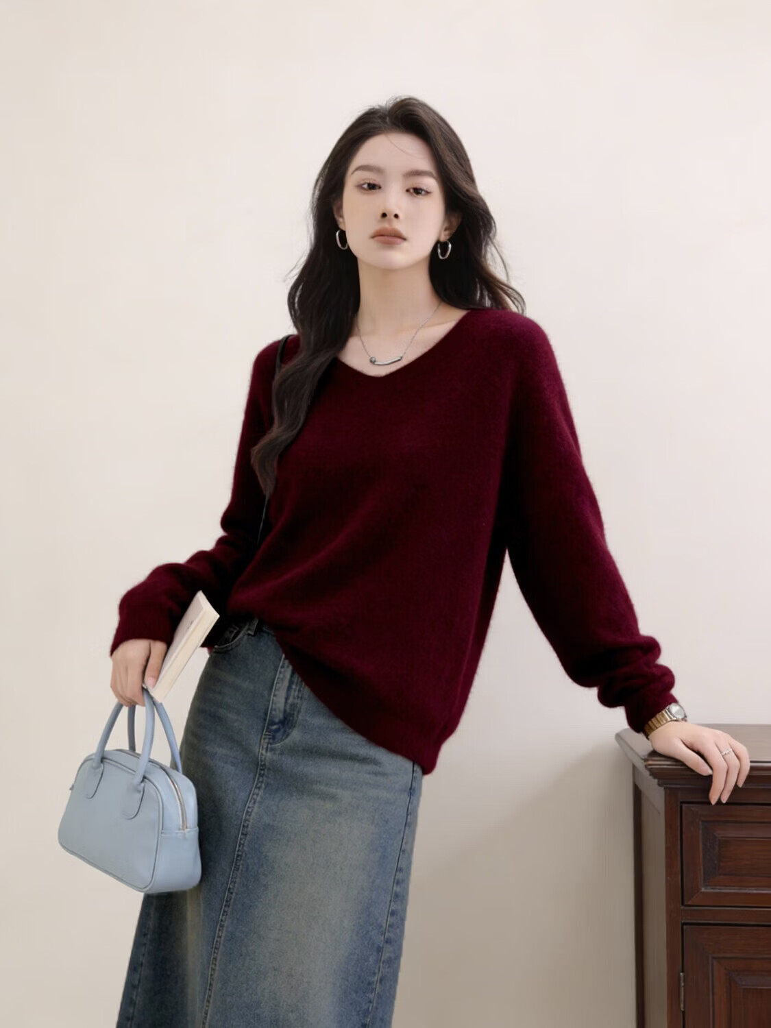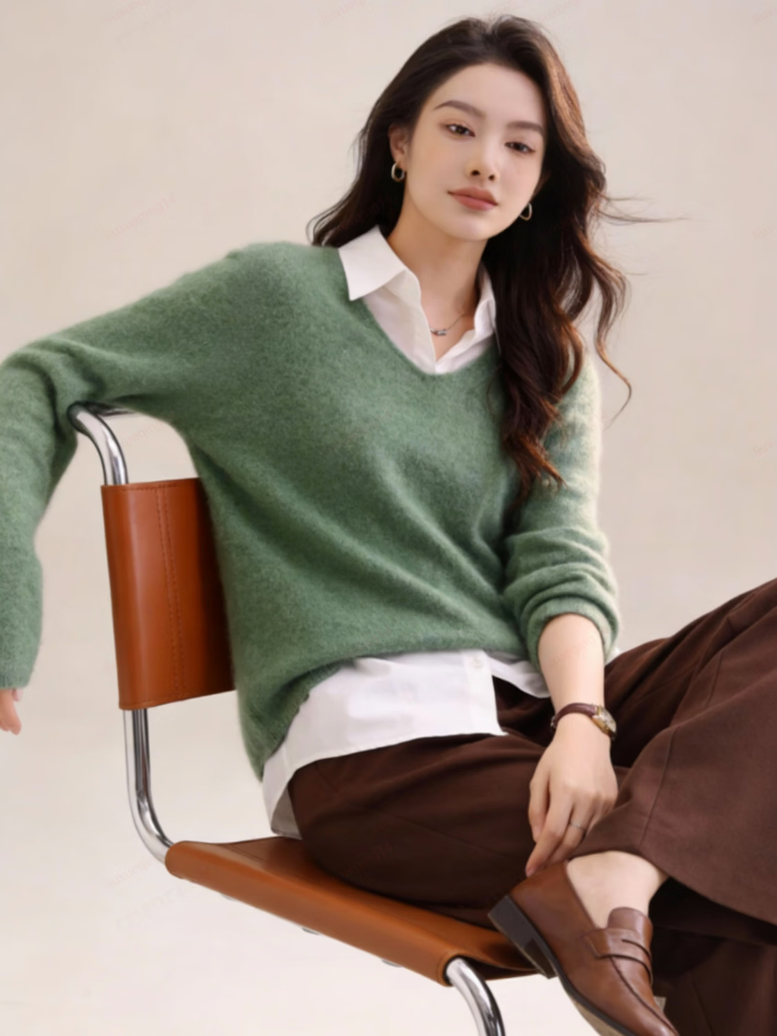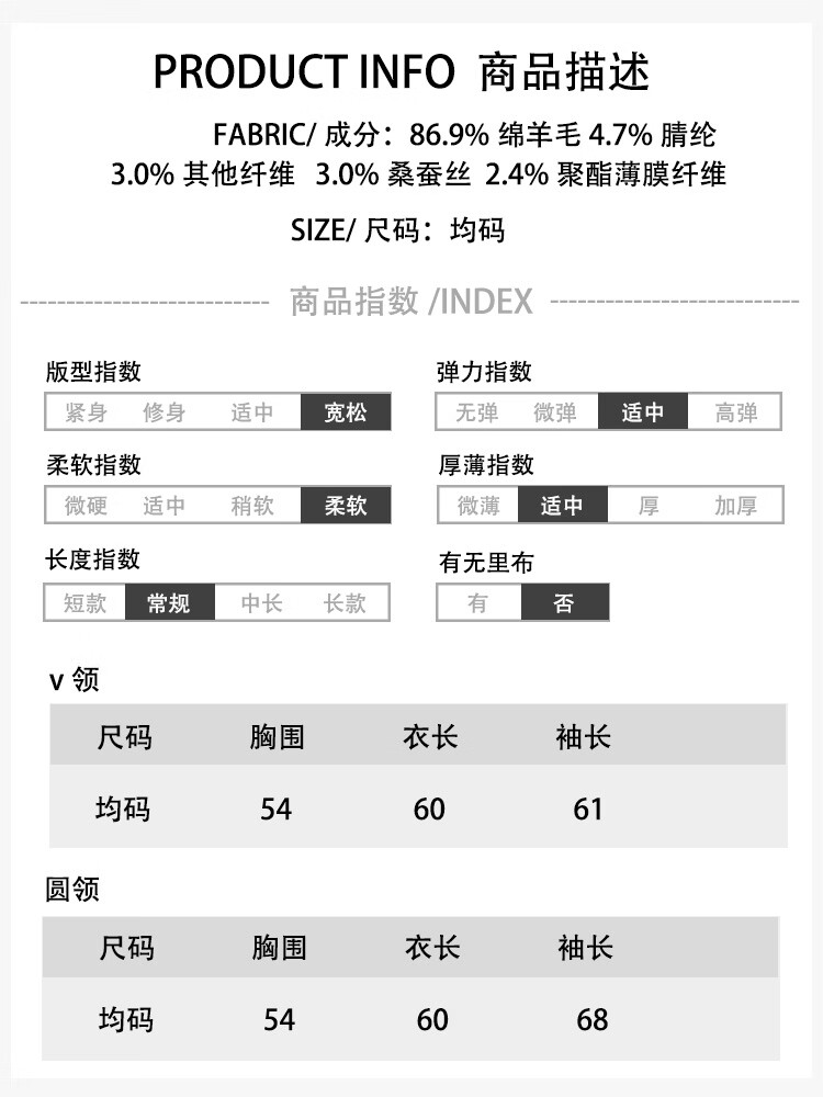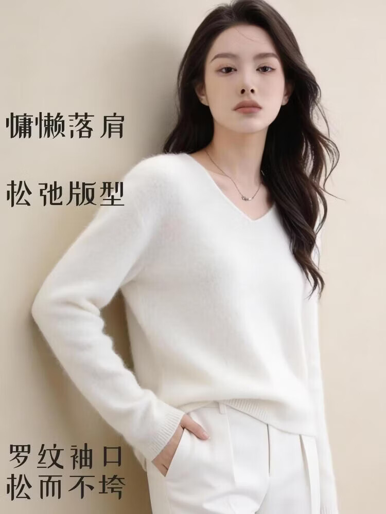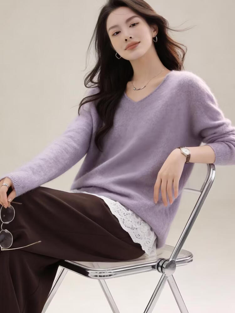 【达人严选】绵羊毛+桑蚕丝羊毛衫宽松套头针织衫毛衣7010 淡紫色 V领 均码 体重90-120斤