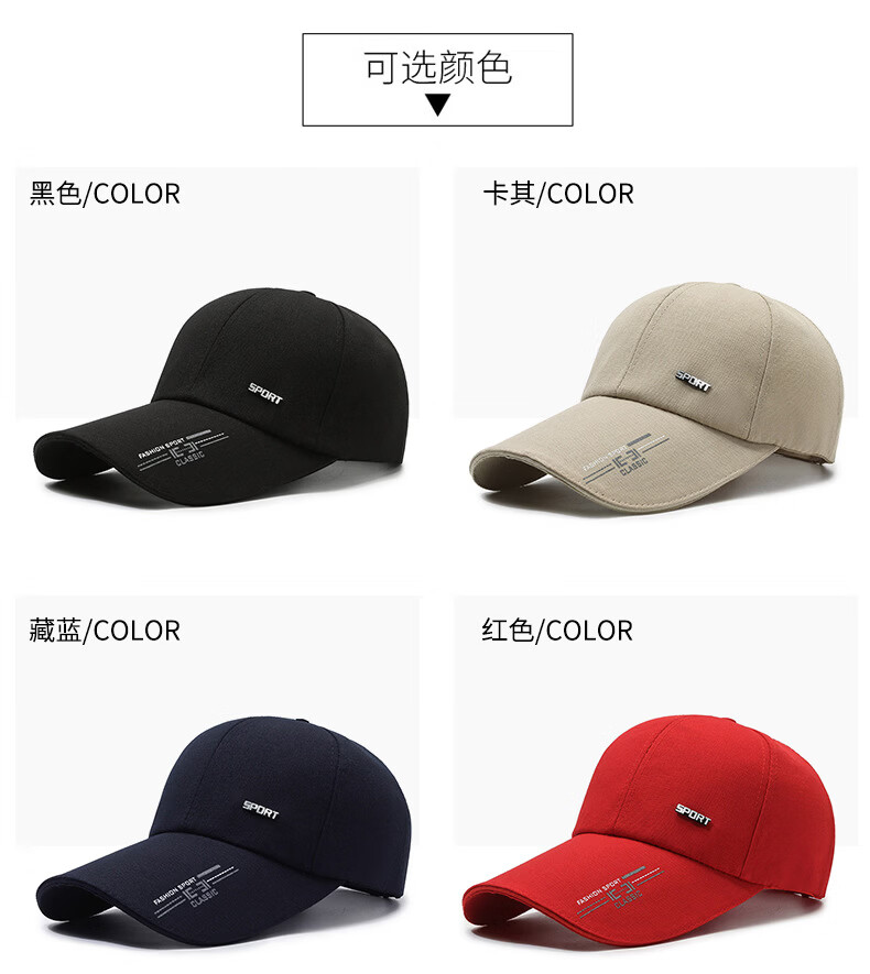 【工厂直发】棒球帽男士太阳帽子防晒遮阳钓鱼男款秋款大头围硬顶 红色 均码