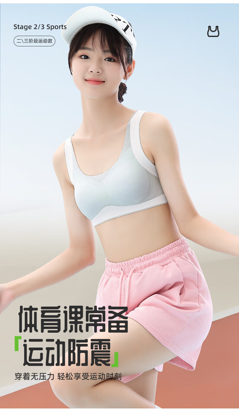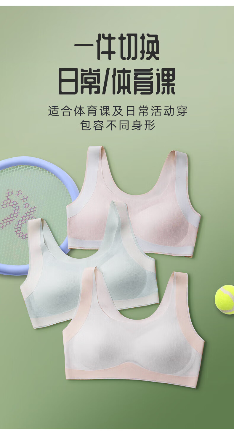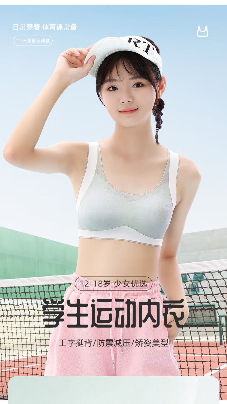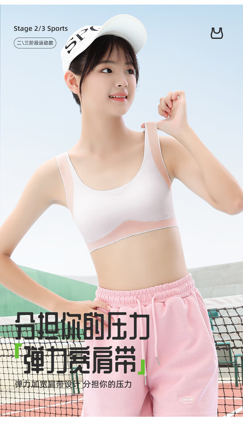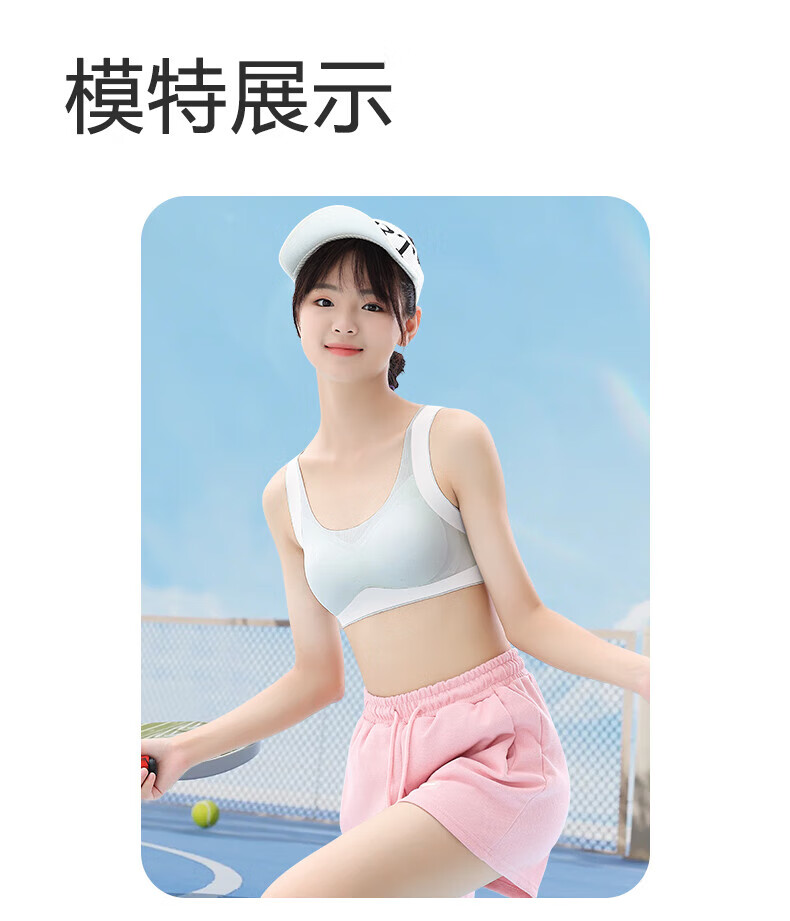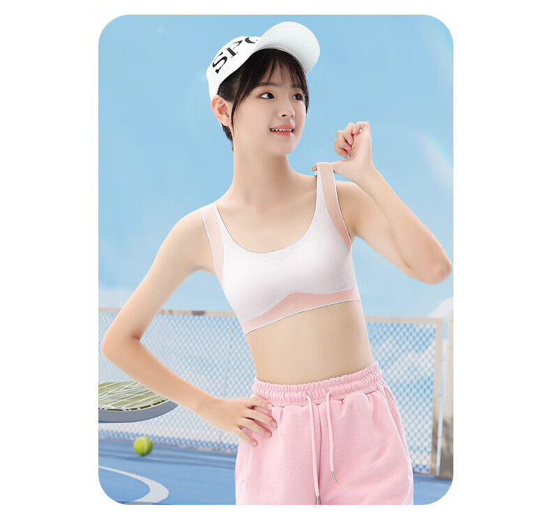 猫人发育期少女运动内衣学生大码文胸矫正驼背防震运动无痕背心女 牙白+浅粉 150 (M) 建议体重60-80斤