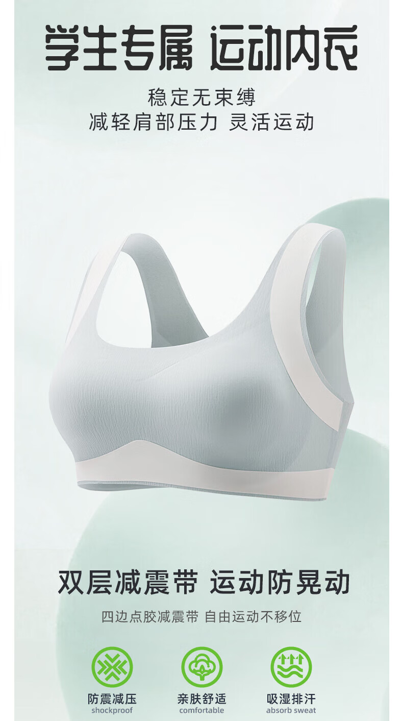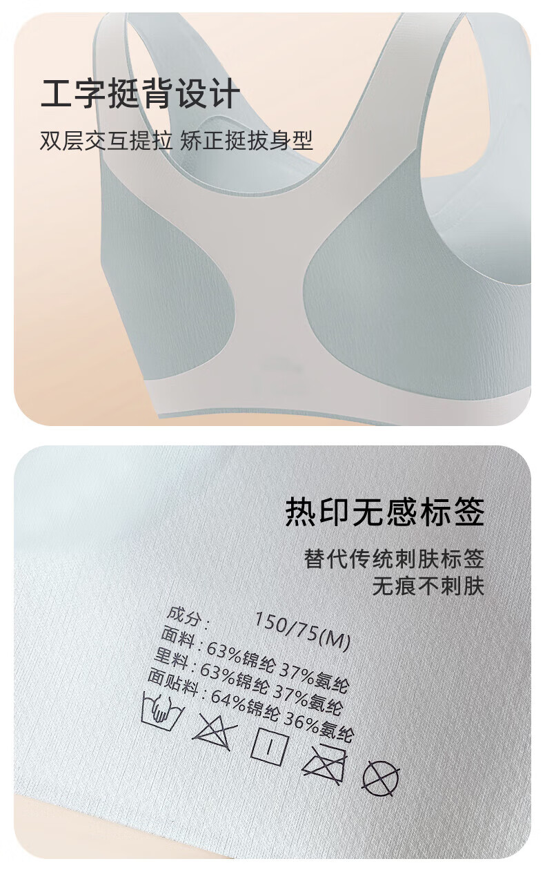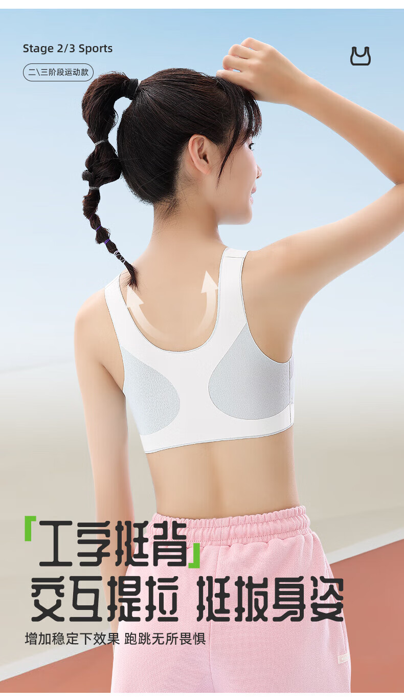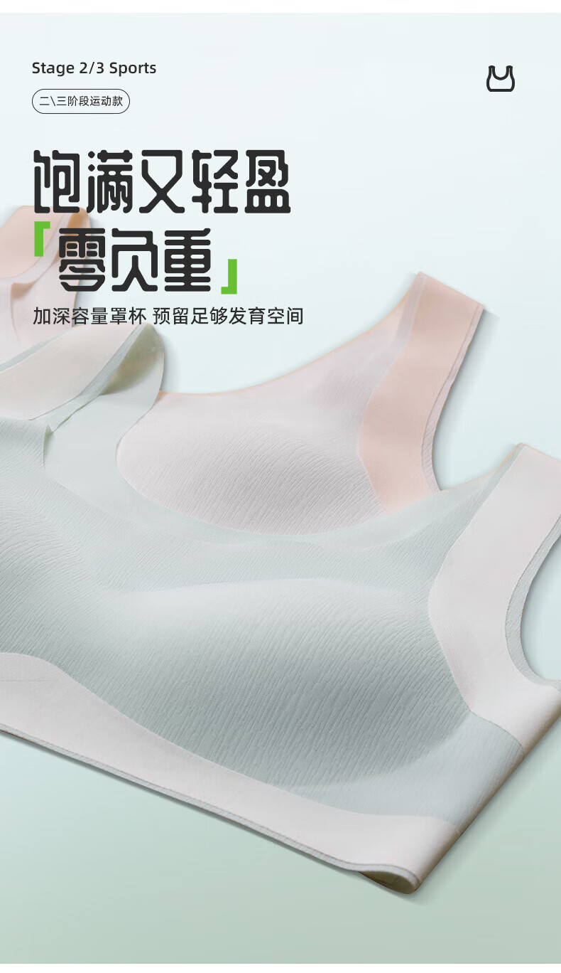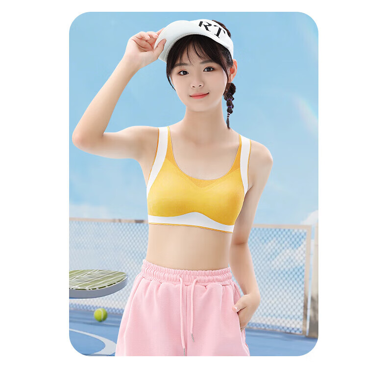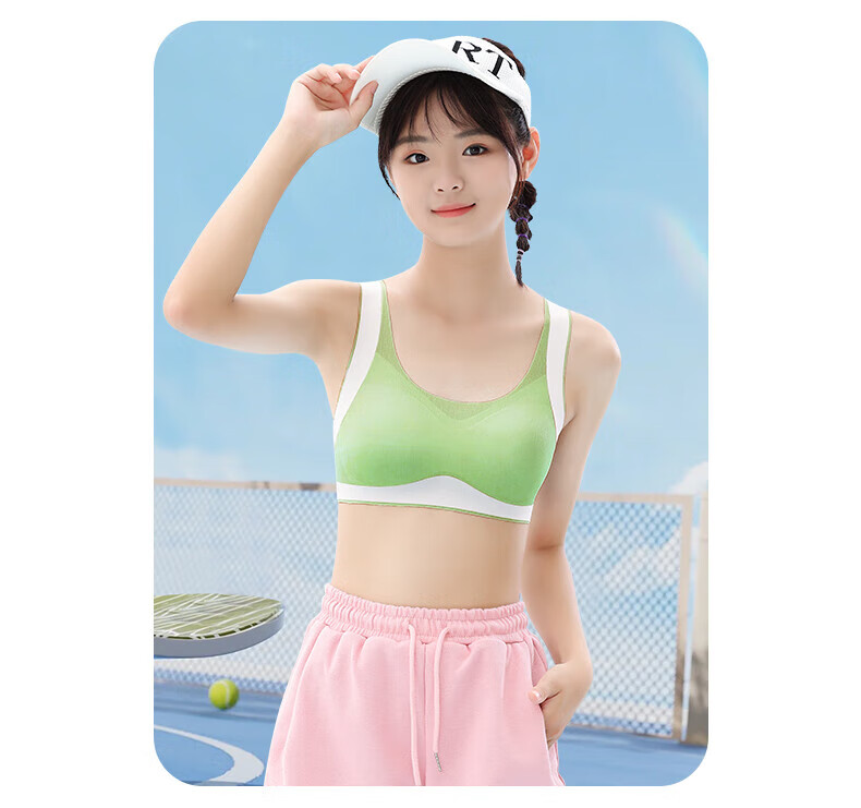 猫人发育期少女运动内衣学生大码文胸矫正驼背防震运动无痕背心女 牙白+浅粉 150 (M) 建议体重60-80斤