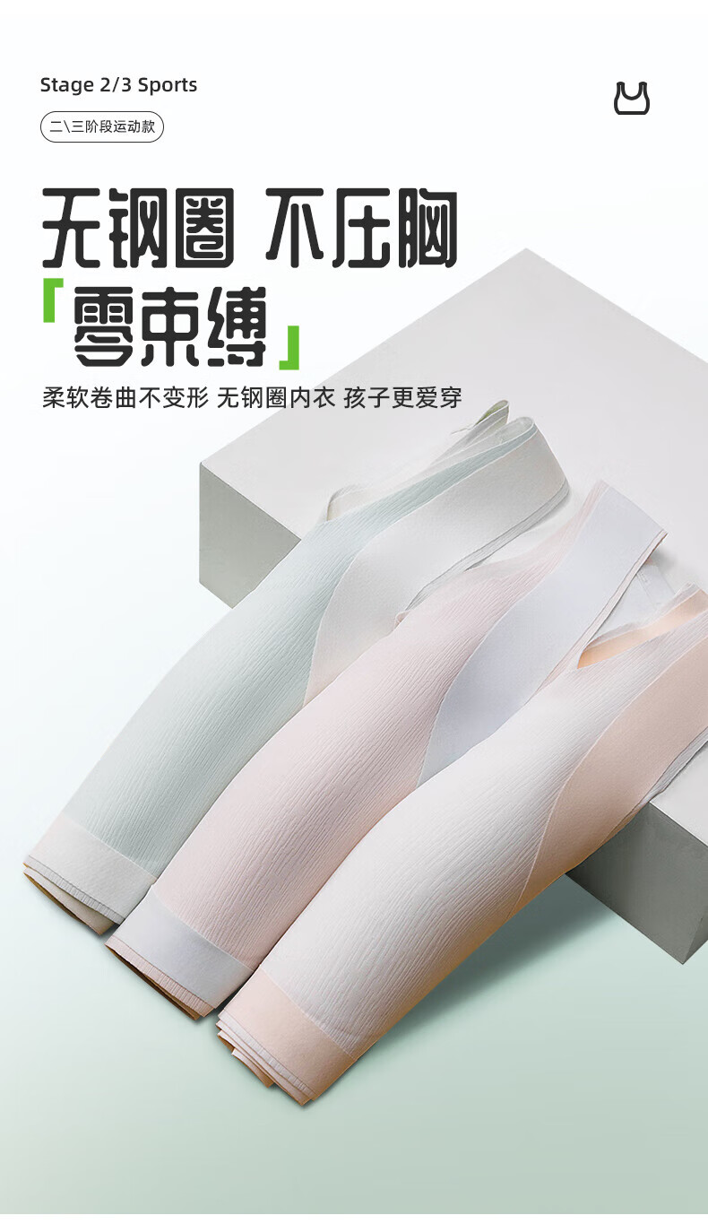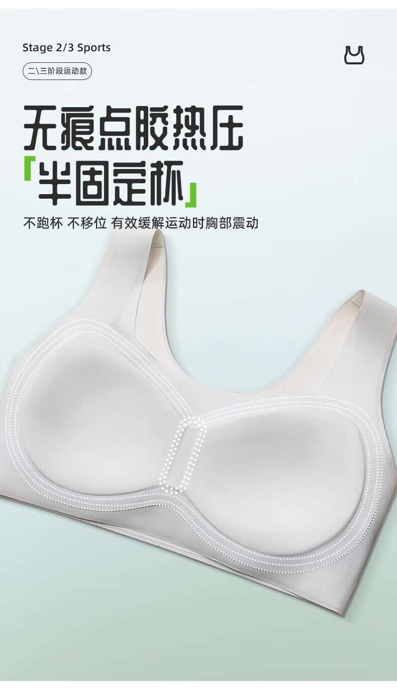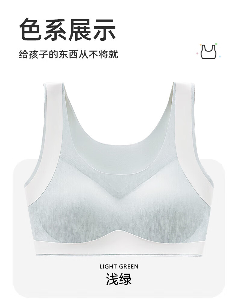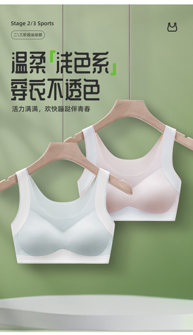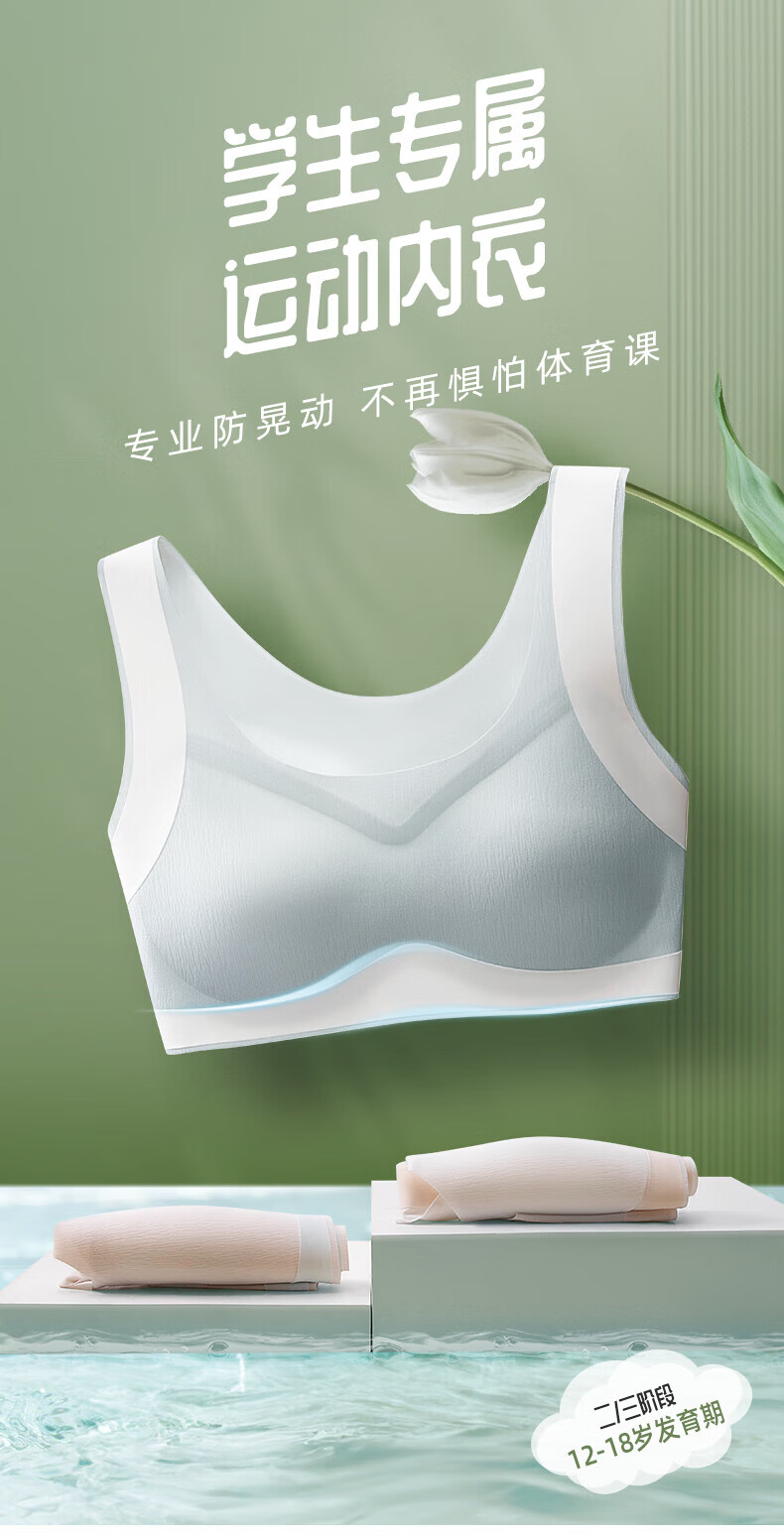 猫人发育期少女运动内衣学生大码文胸矫正驼背防震运动无痕背心女 牙白+浅粉 150 (M) 建议体重60-80斤