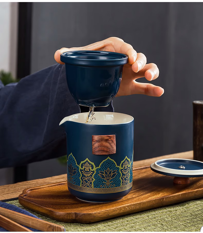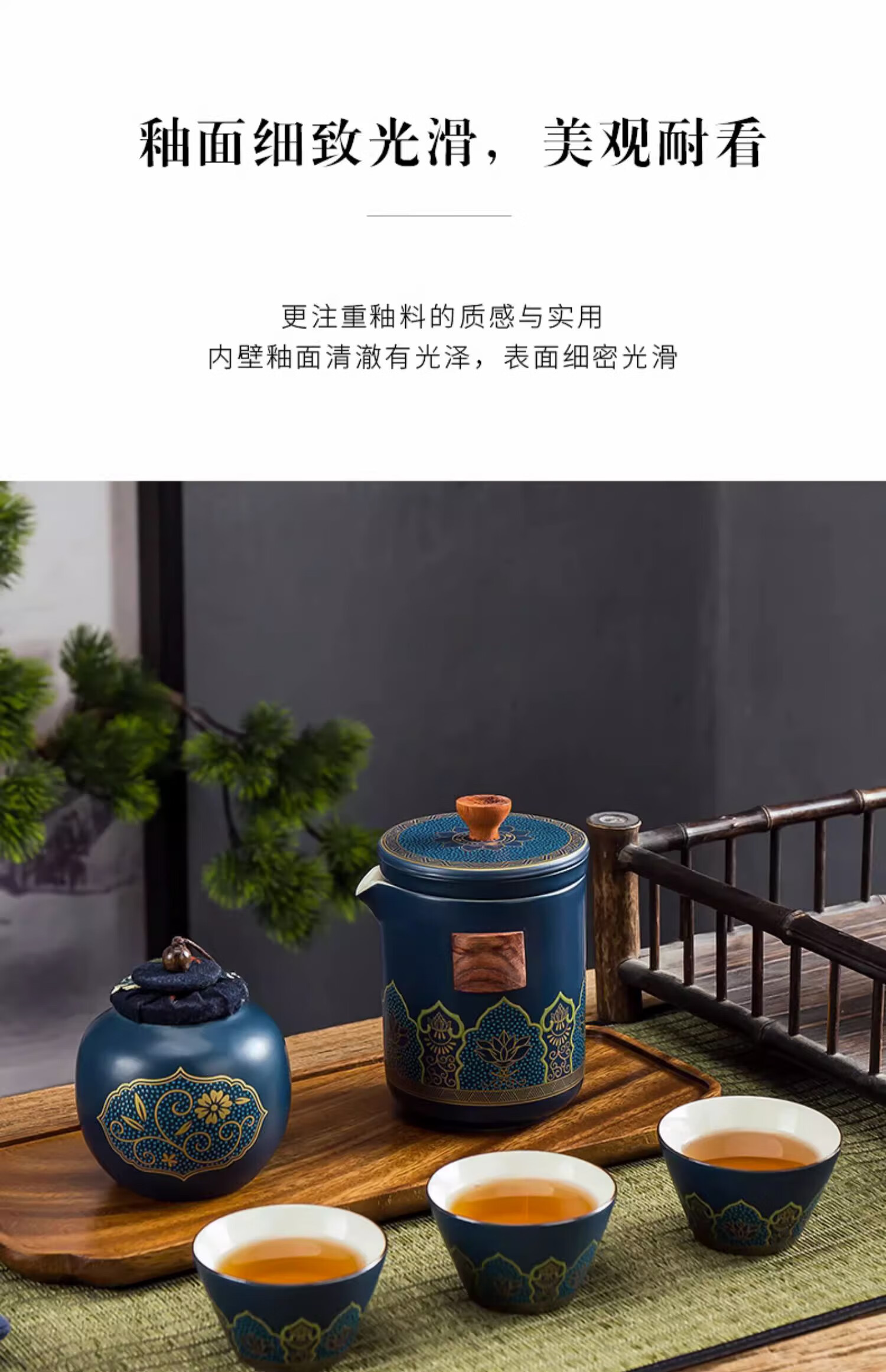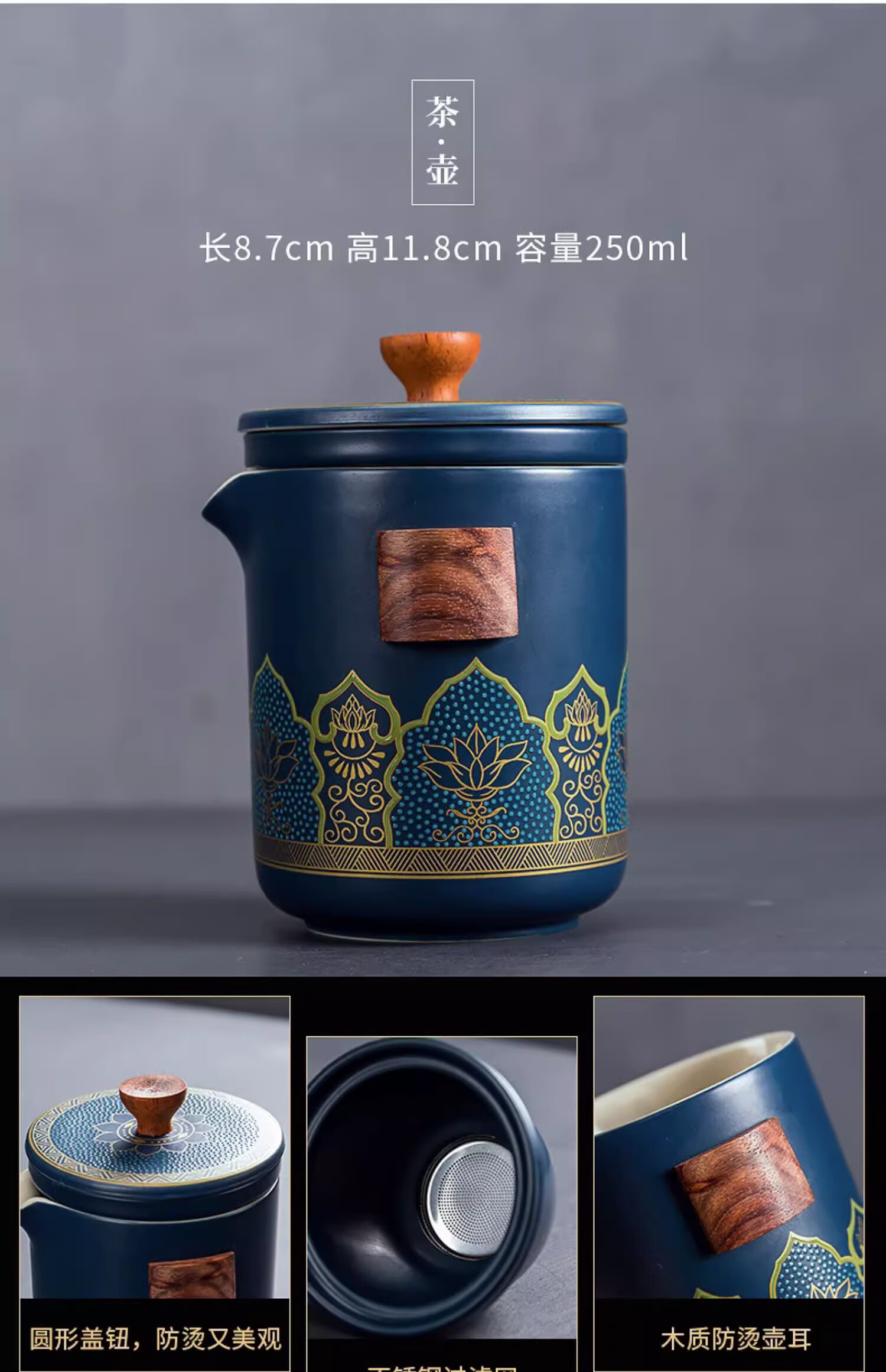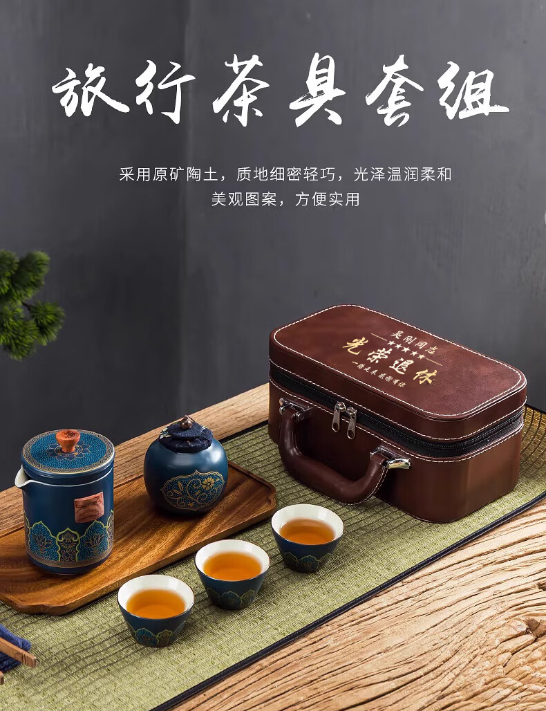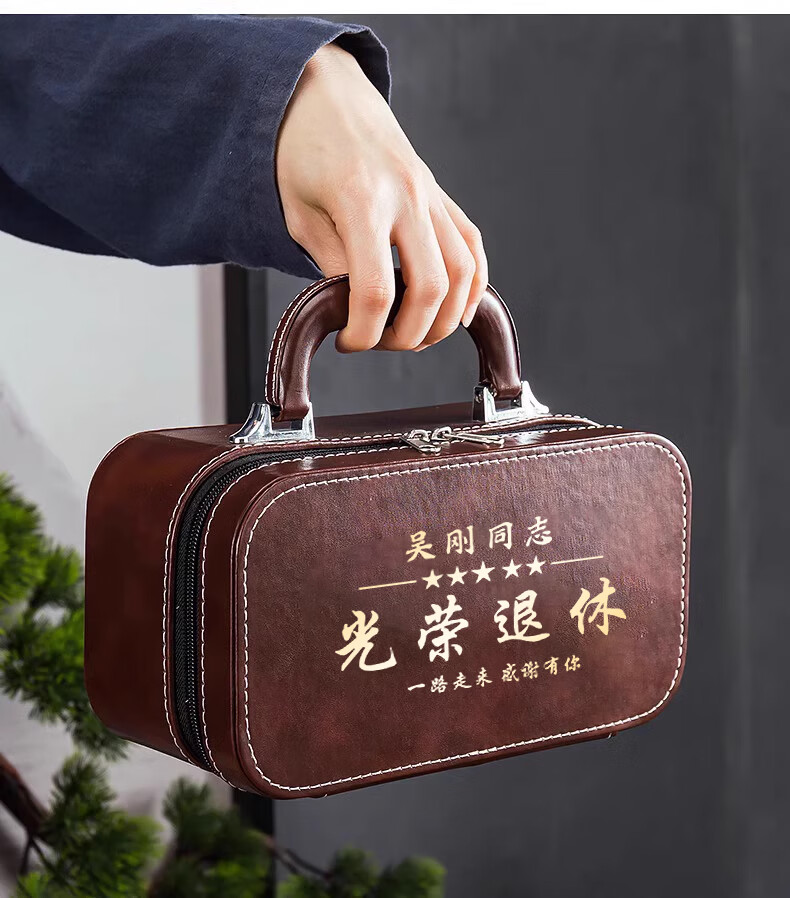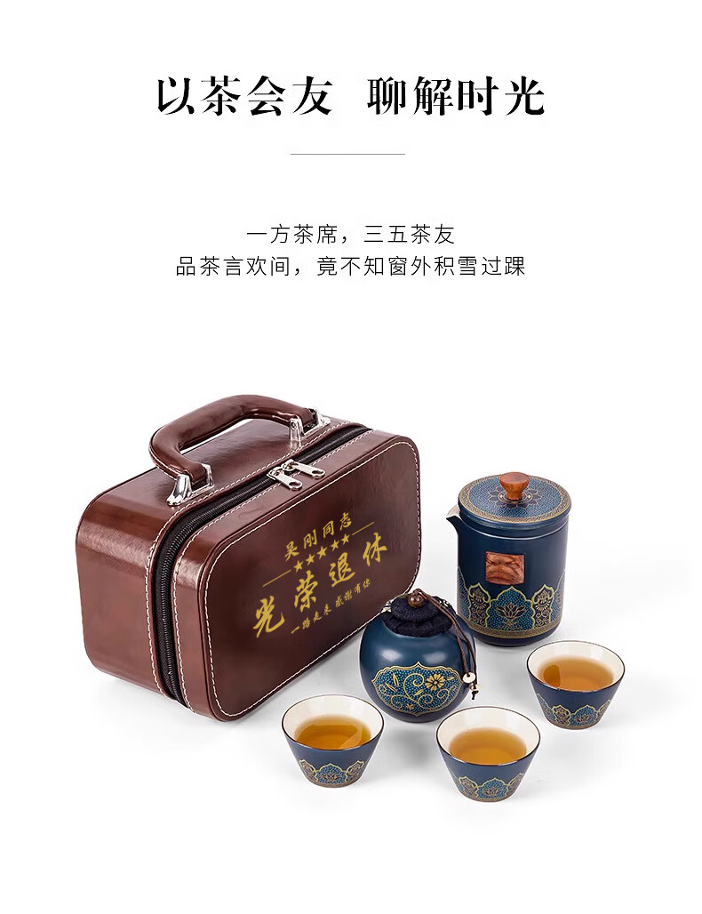 英格丽(INGRI)2026新款光荣退休送员工有纪念意义礼品可定制LOGO高档实用伴手礼 【森蓝】茶具套装-皮革箱-可定制