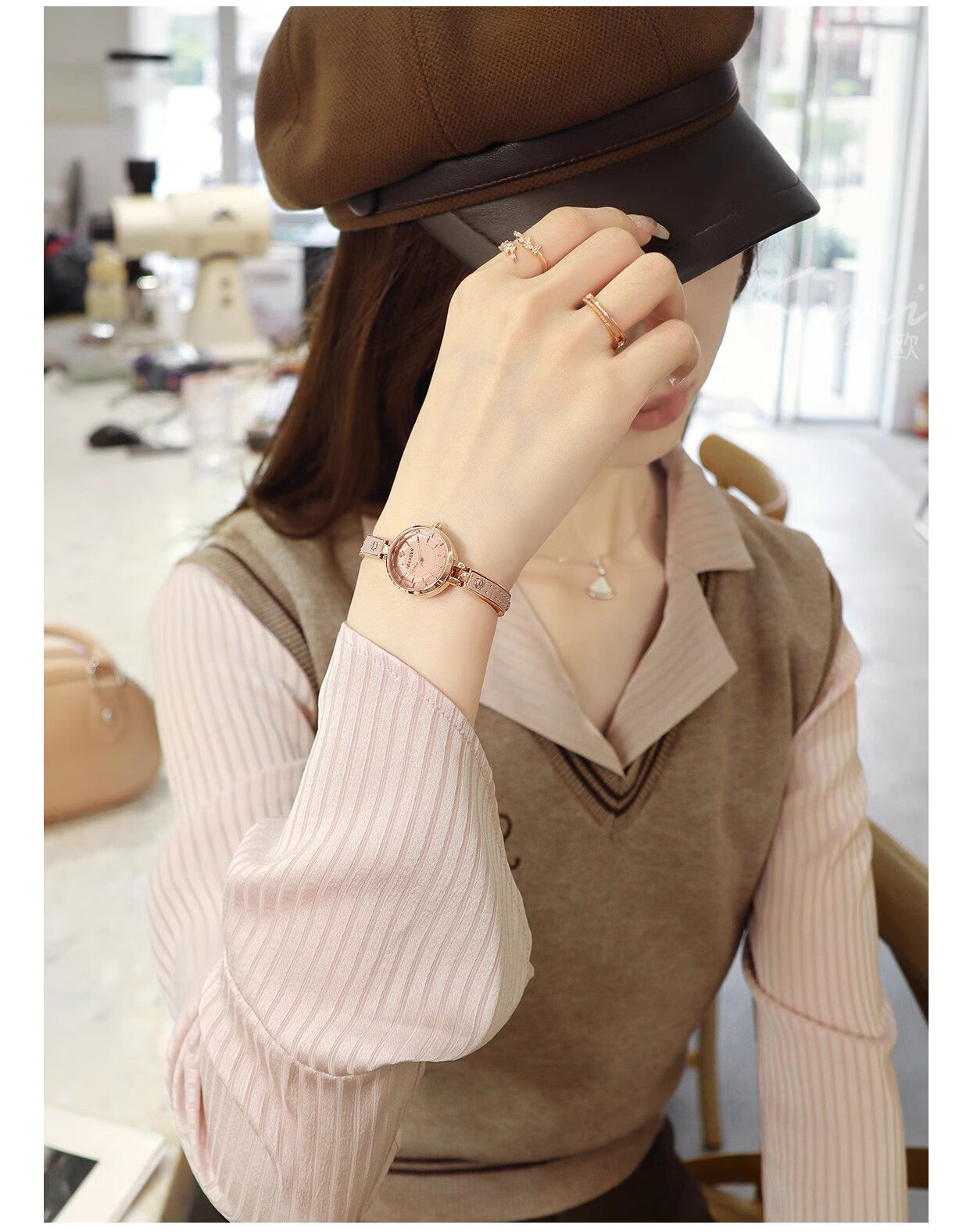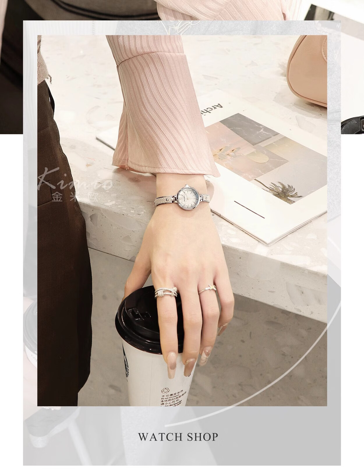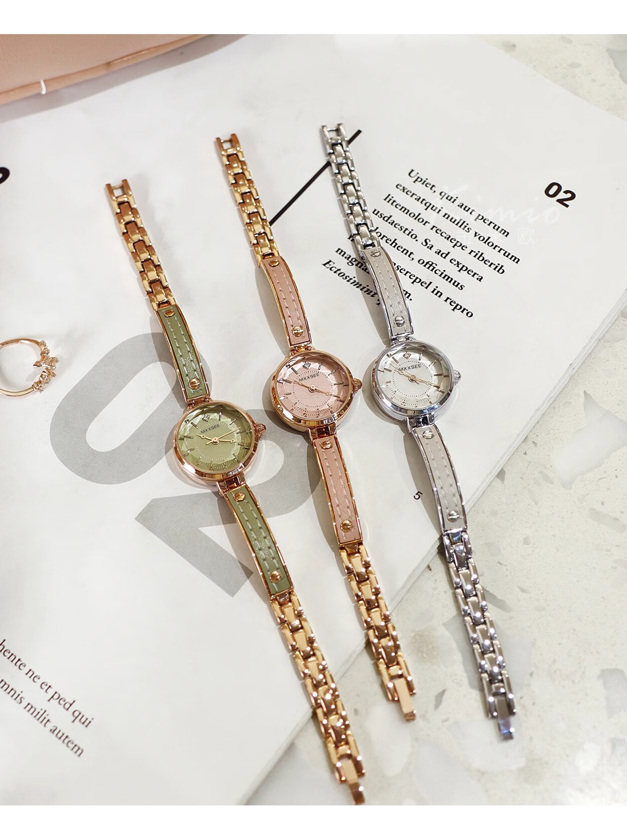 MXXSEE高级感小众轻奢时尚女表机械风石英表小巧精致手镯式学生新款礼物 高级灰(礼盒装)