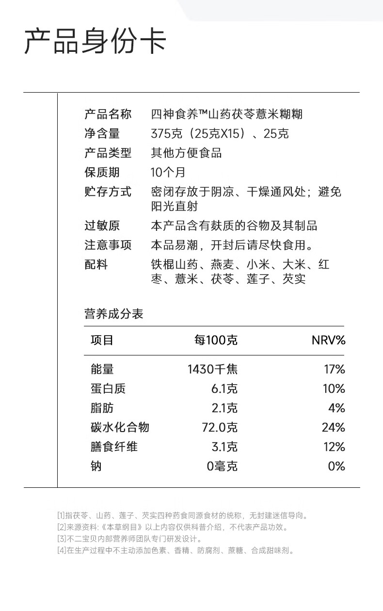 不二宝贝四神小糊糊山药茯苓小米粥搭婴儿幼儿童辅食营养粥米早餐 【1桶15条|赠尝鲜*1条】四物糊糊 375g*1罐