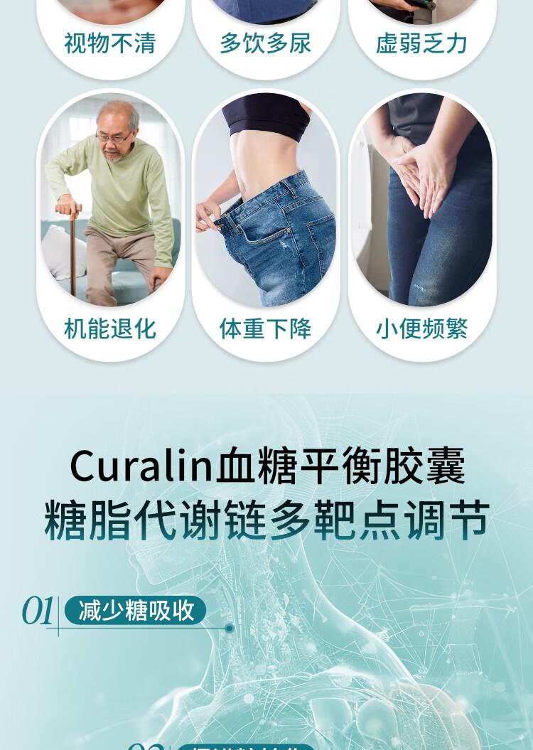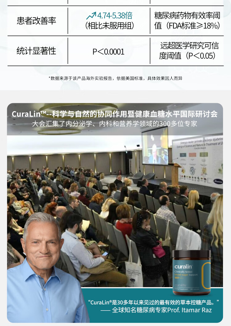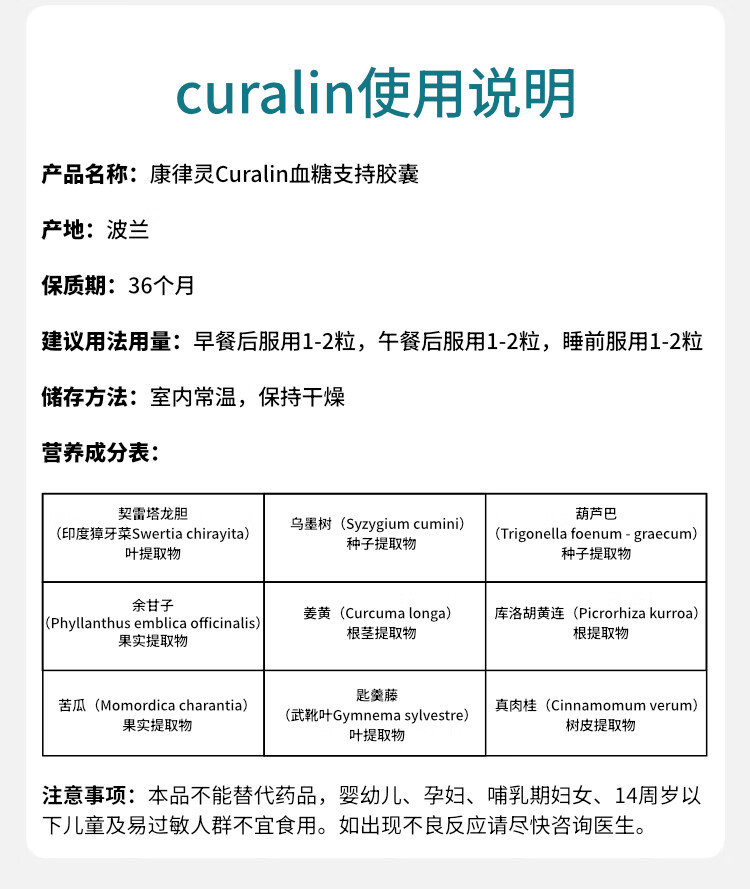 CuraLife康律灵美国进口调节血糖中老年人血糖平衡胶囊9种纯植物配方控糖 (30天改善装) 180粒*1瓶