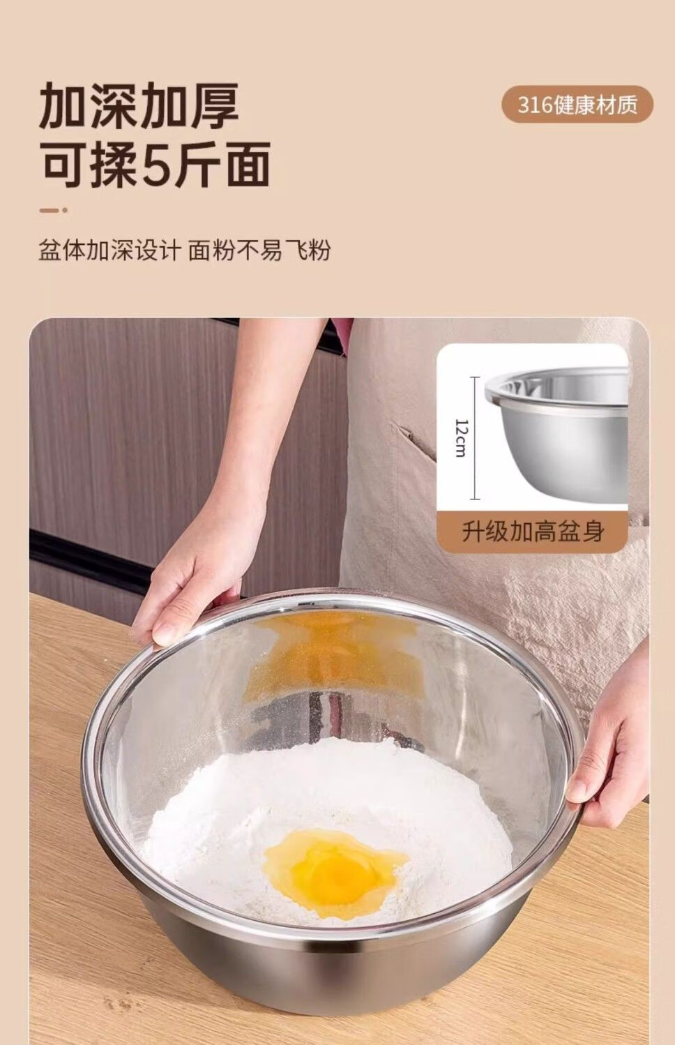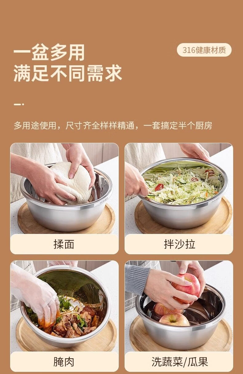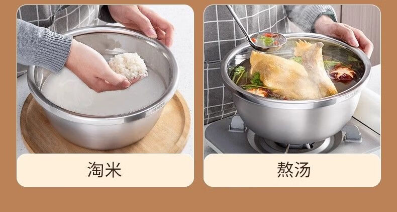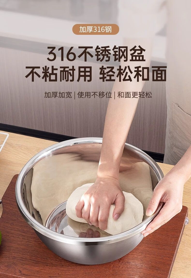 金汤银饺316升级款不锈钢盆调料盆洗菜淘米和面盆家用厨房特厚打蛋盛汤盆 【18cm+20cm+22cm】 3个