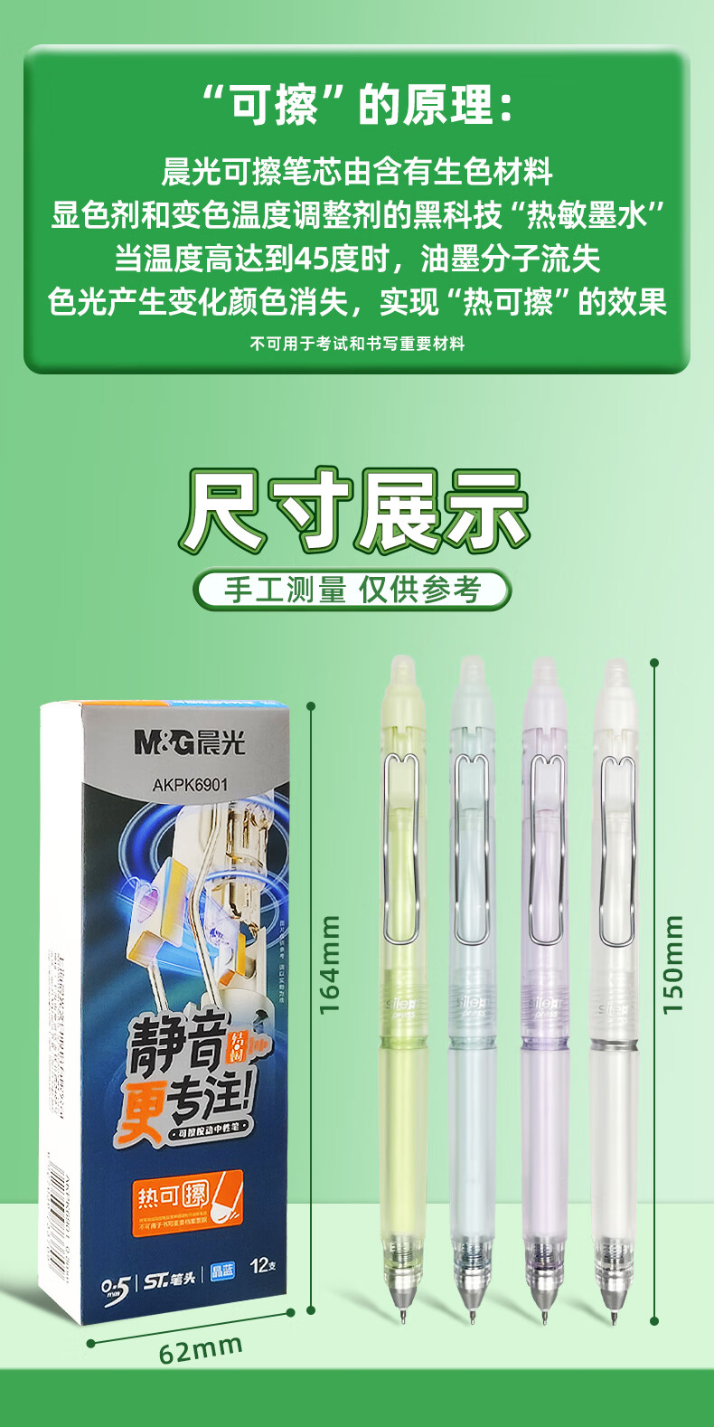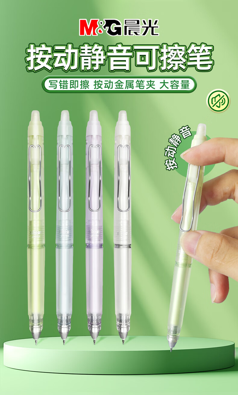 晨光晨光静音热可擦按动中性笔0.5m可擦笔ST头学生专用三年级摩易力擦 【黑色】12支+19支晨光笔芯