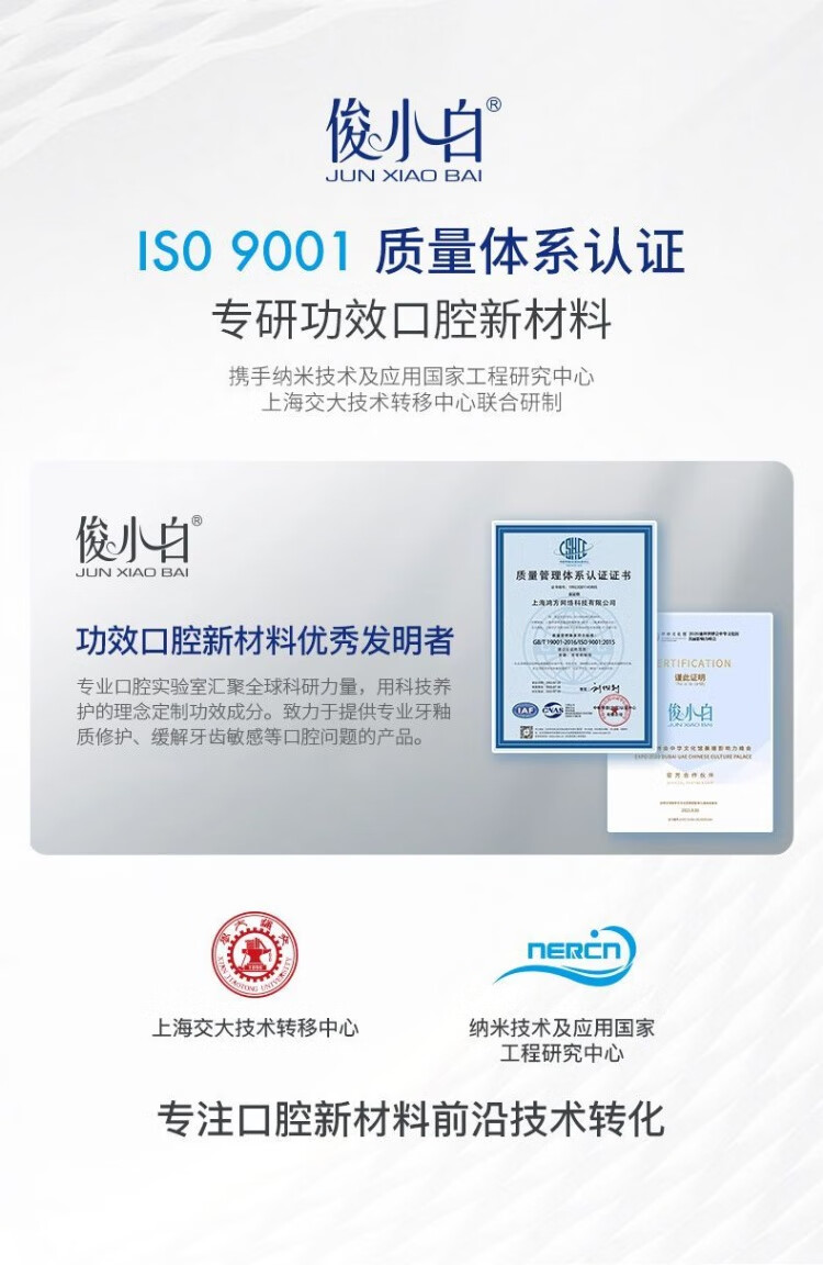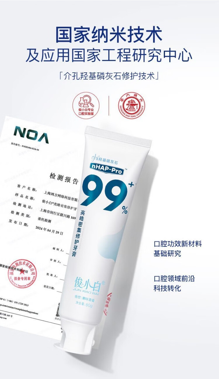俊小白牙膏俊小白羟基磷灰石牙膏99修护牙釉质护龈护理口气清新洁齿牙刷 俊小白牙膏100g*3支装 【正品保证,假一罚十】