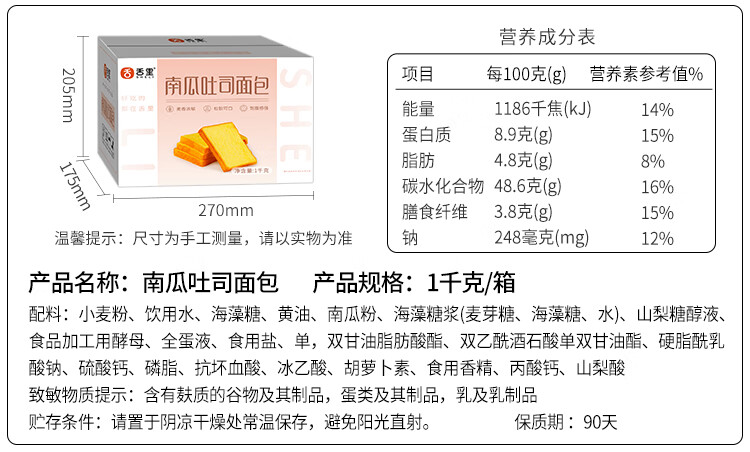舌里 南瓜吐司面包2斤装休闲零食早餐手撕代餐点心充饥食品