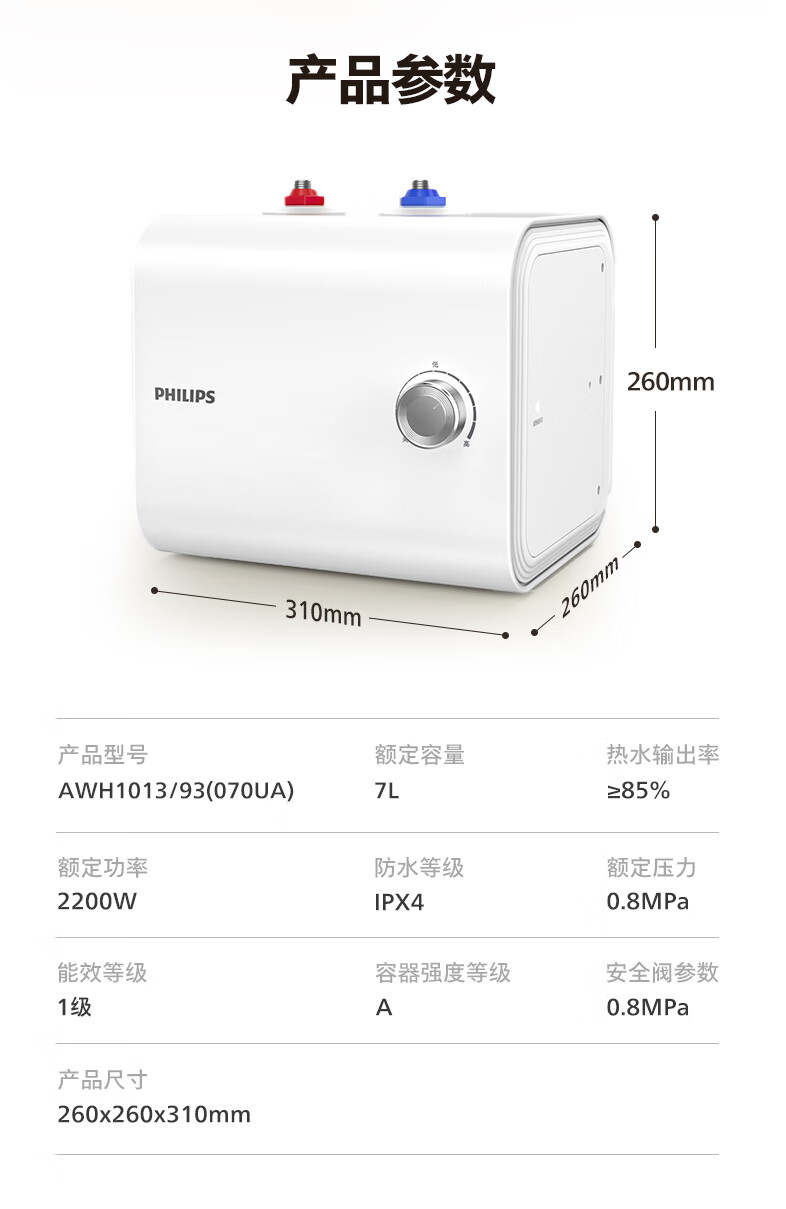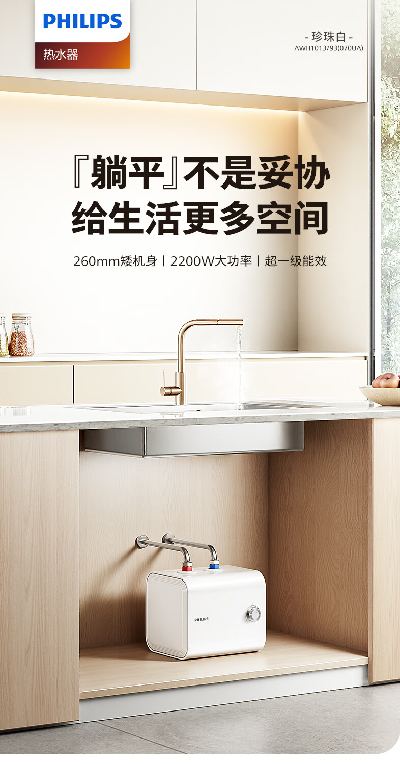 飞利浦(PHILIPS)7升小厨宝电热水器一级能效节能 2200W速热家用厨房热水宝台下 国家补贴15% 小尺寸AWH1013/93