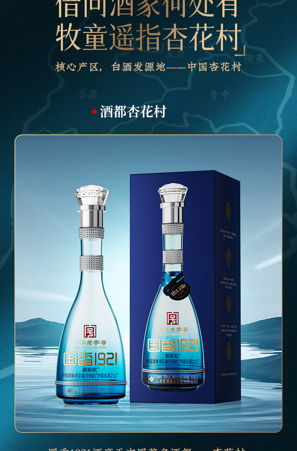 郝振欧国香1921 白金出口版 景泰蓝礼盒 清香型白酒 荣获非物质文化遗产 53%vol 500mL 6瓶 (原箱发货)