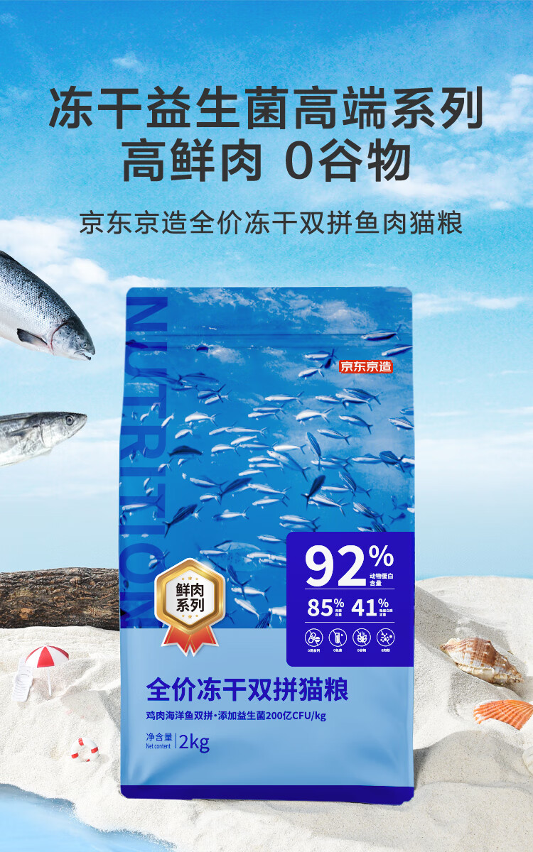 京东京造 冻干双拼全价猫粮鱼肉味 全阶段成猫幼猫6kg[新老包装随机发货]