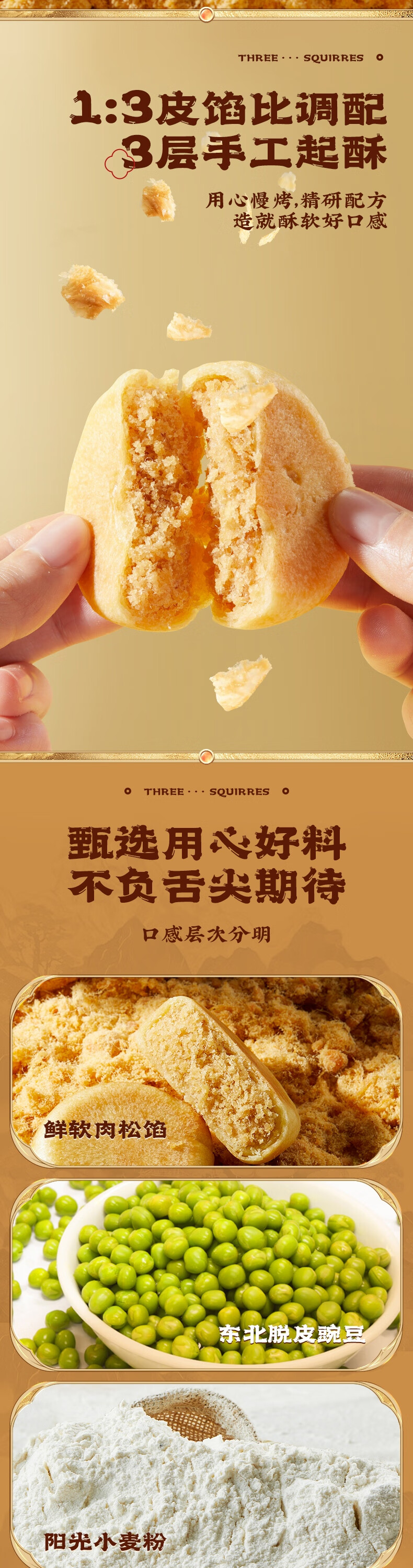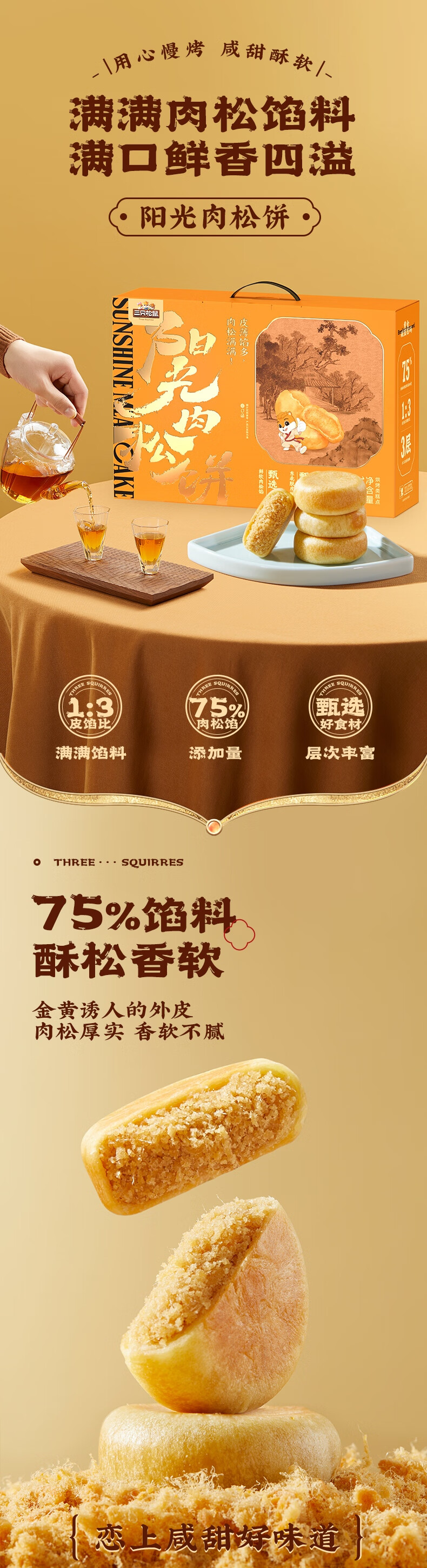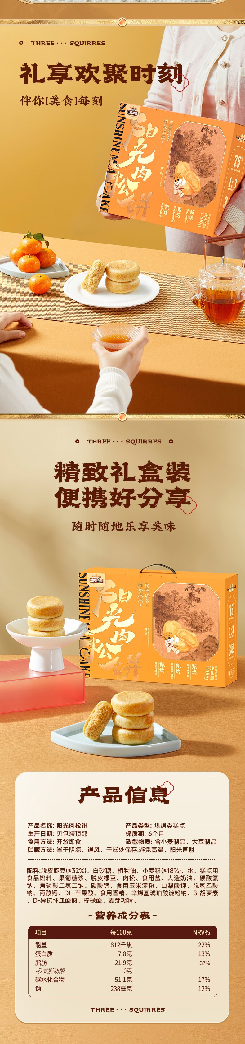 三只松鼠肉松饼1200g 营养早餐代餐休闲零食中式糕点礼盒装年货送礼团购