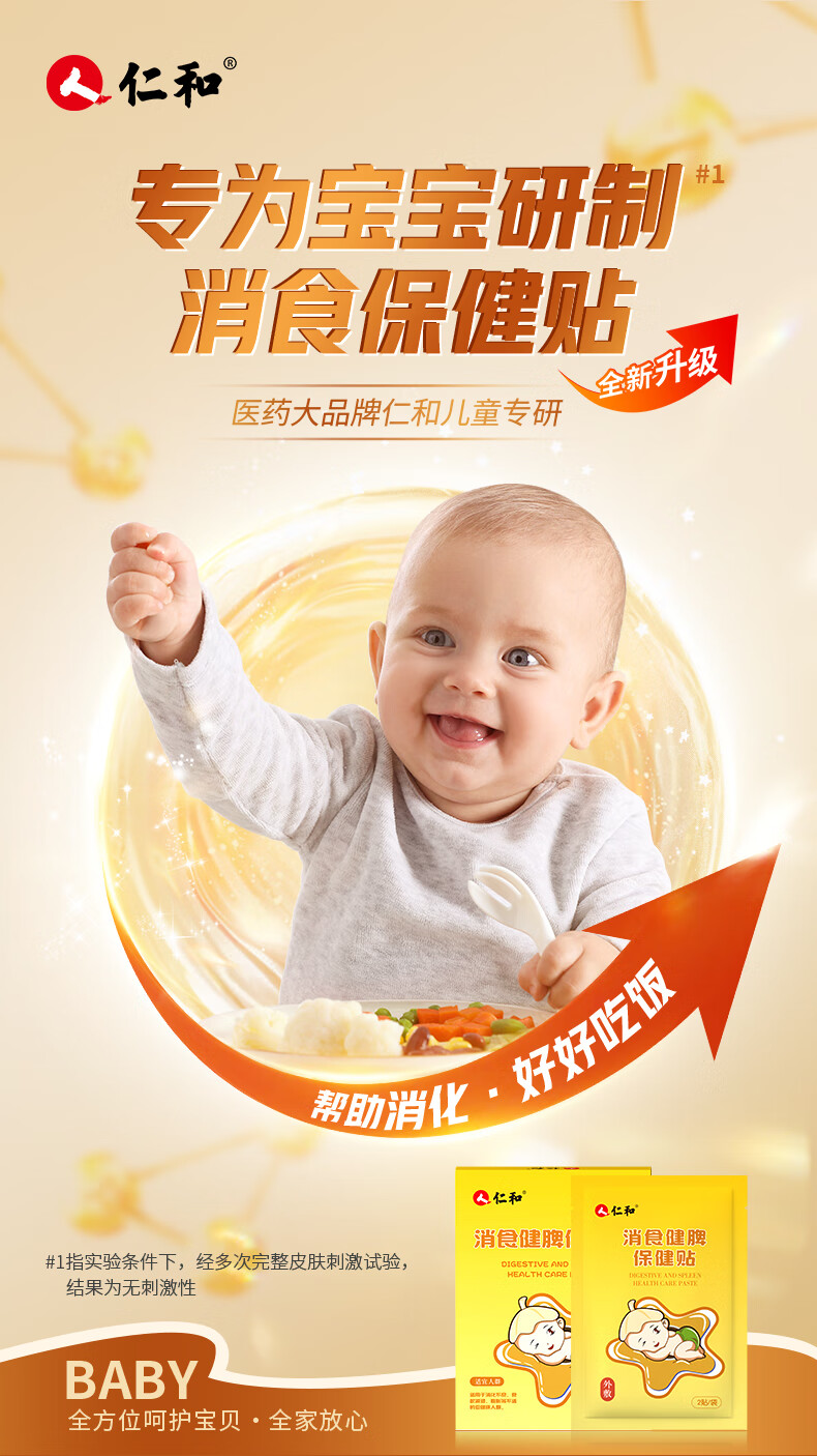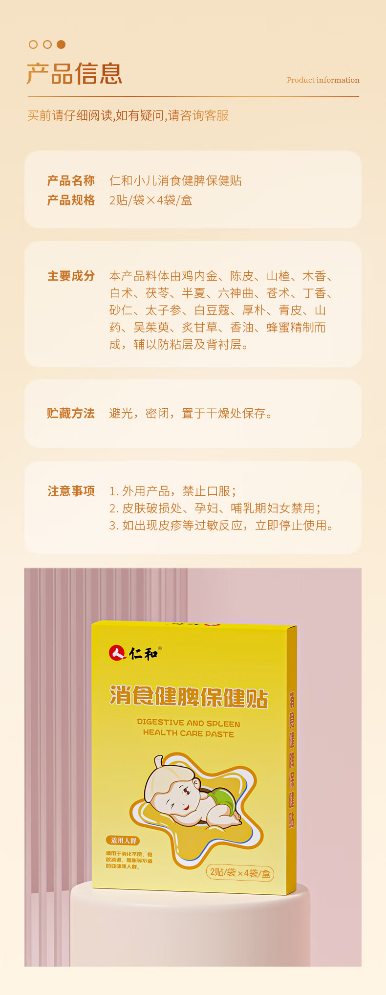 仁和消食贴小儿肠胃胀气积食婴幼儿消化不良鸡内金健脾三盒24贴赠2贴