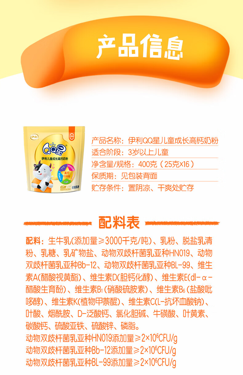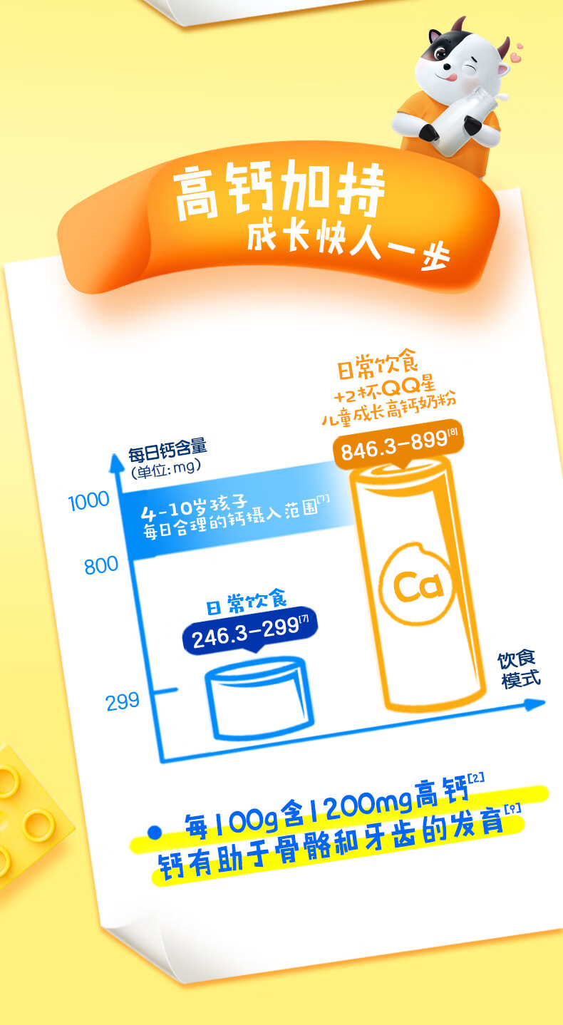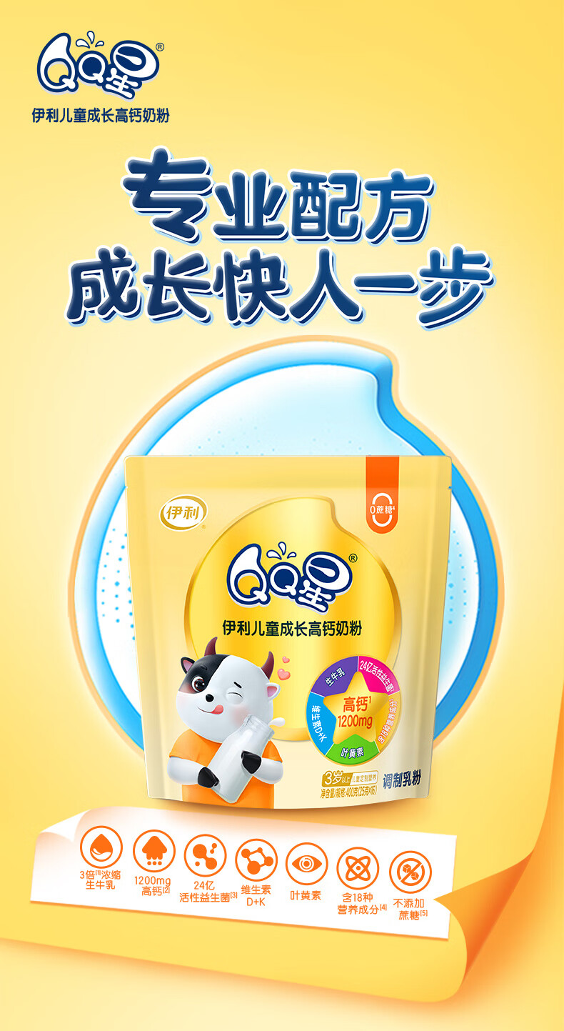 伊利QQ星儿童成长高钙奶粉 学生奶粉 营养品 早餐 奶粉儿童3岁+ 400g