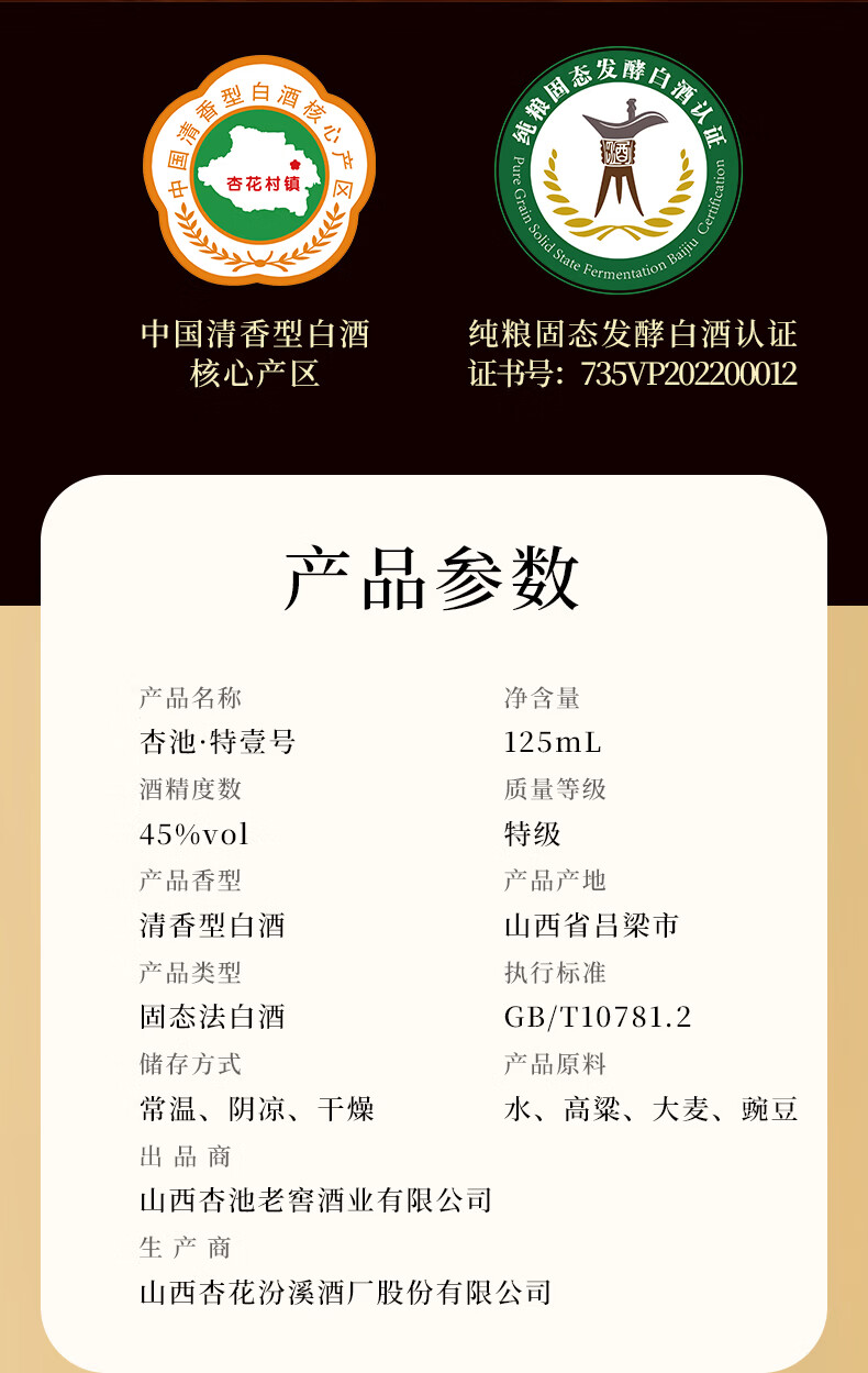 杏池清香型白酒小酒版固态法高度口粮酒 马年纯粮试饮小酒 45度 125mL 1瓶 特级试饮小酒