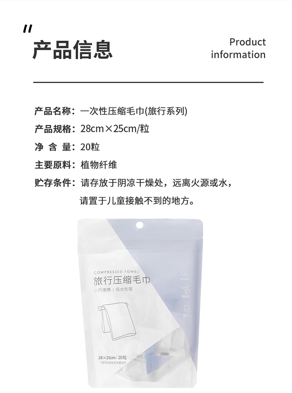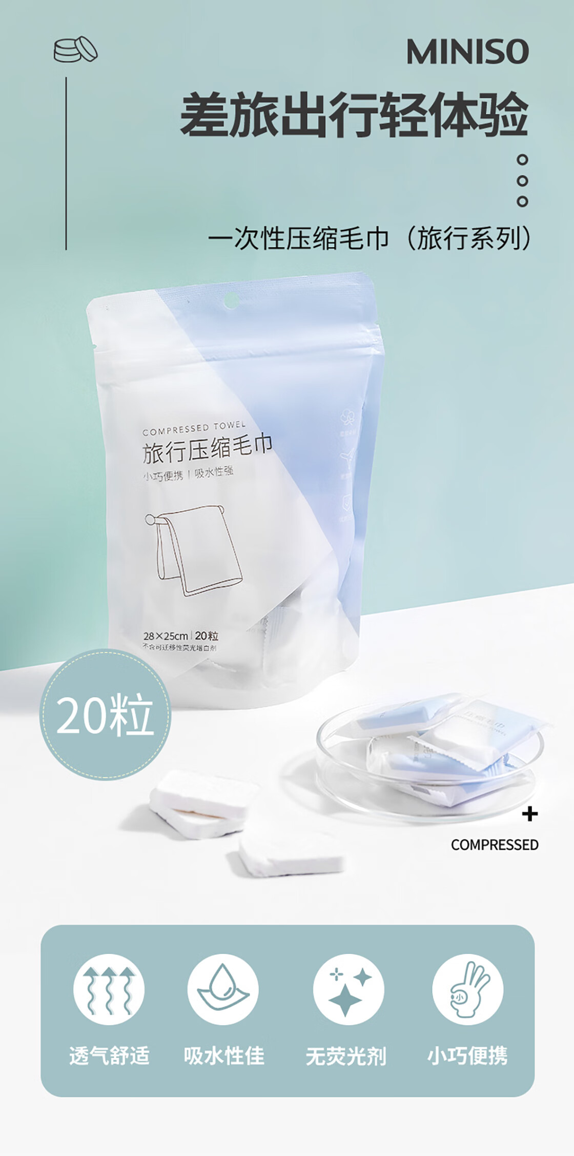 名创优品(MINISO)一次性压缩毛巾独立包装便携旅游压缩款旅行装(20粒装*1包)