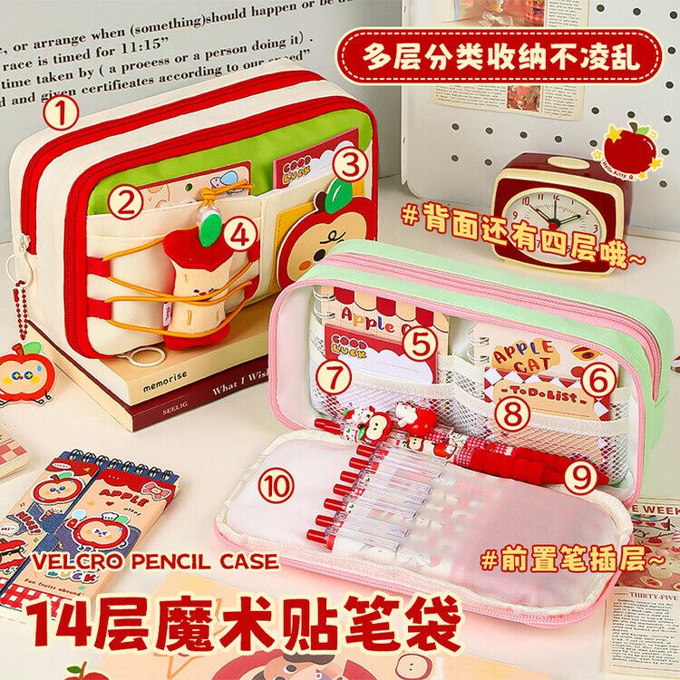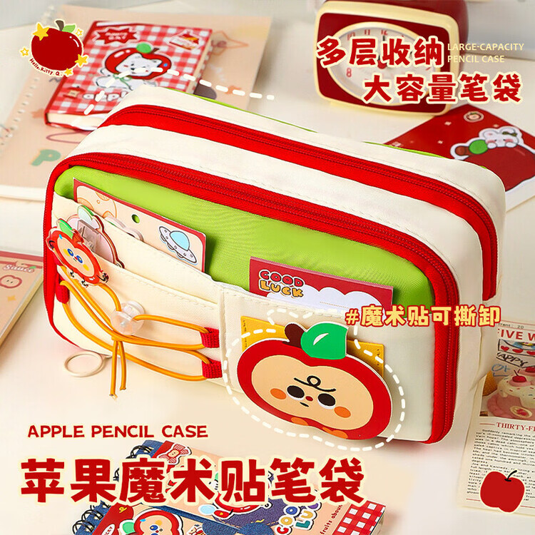 嘉觅苹果多多笔袋礼袋男孩款可爱高颜值开学礼物礼包文具盒女孩款大容量铅笔盒2026新款小学生文具袋 红苹果笔袋/送魔术贴