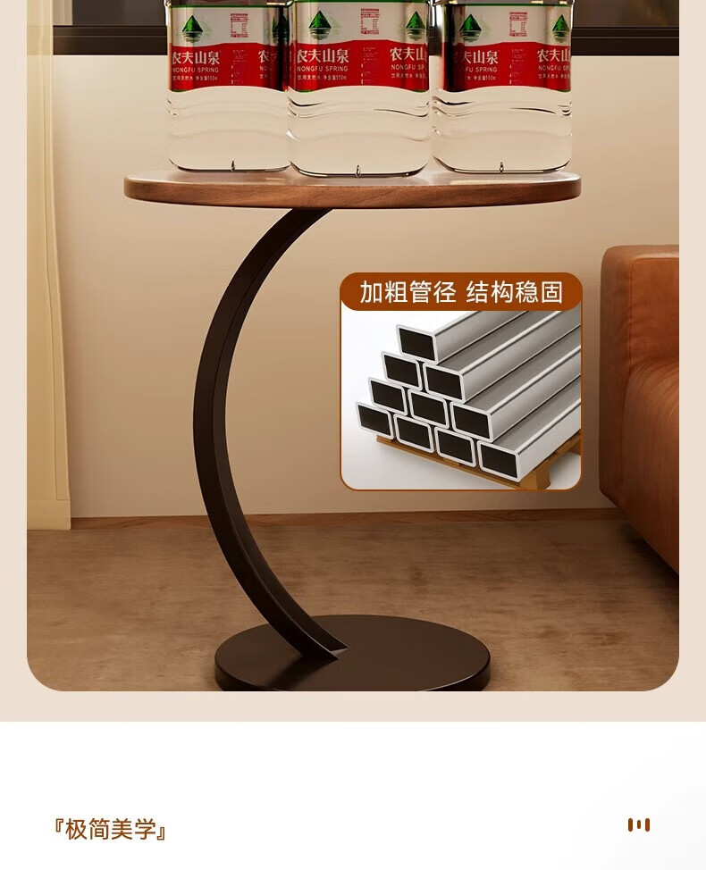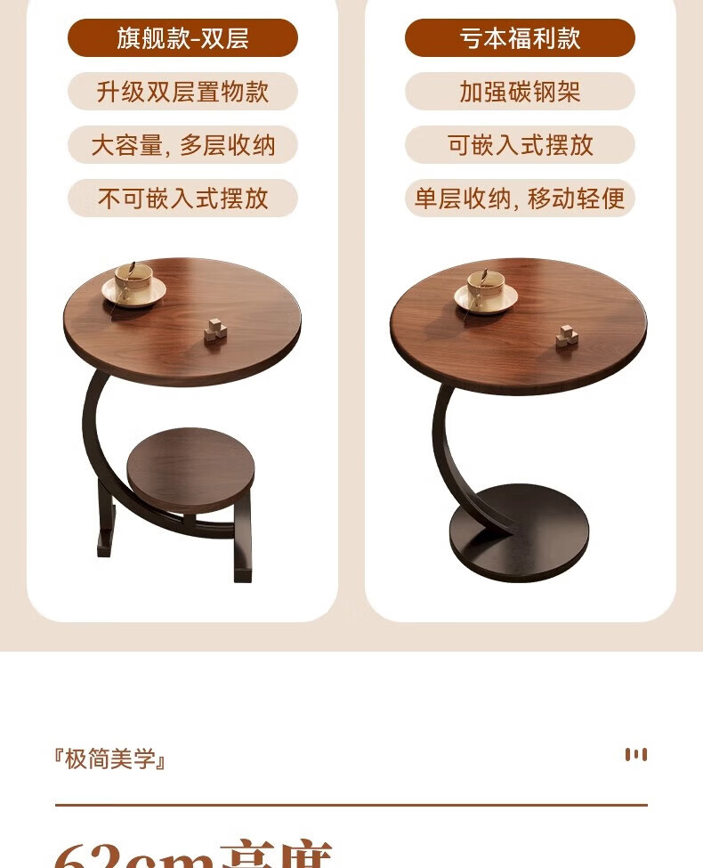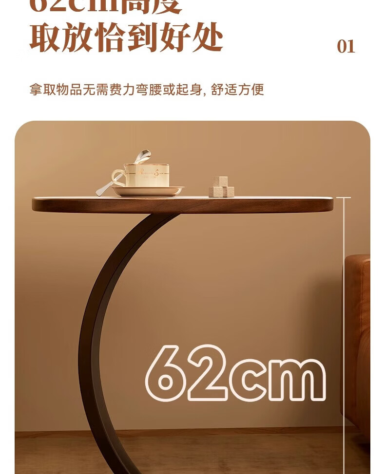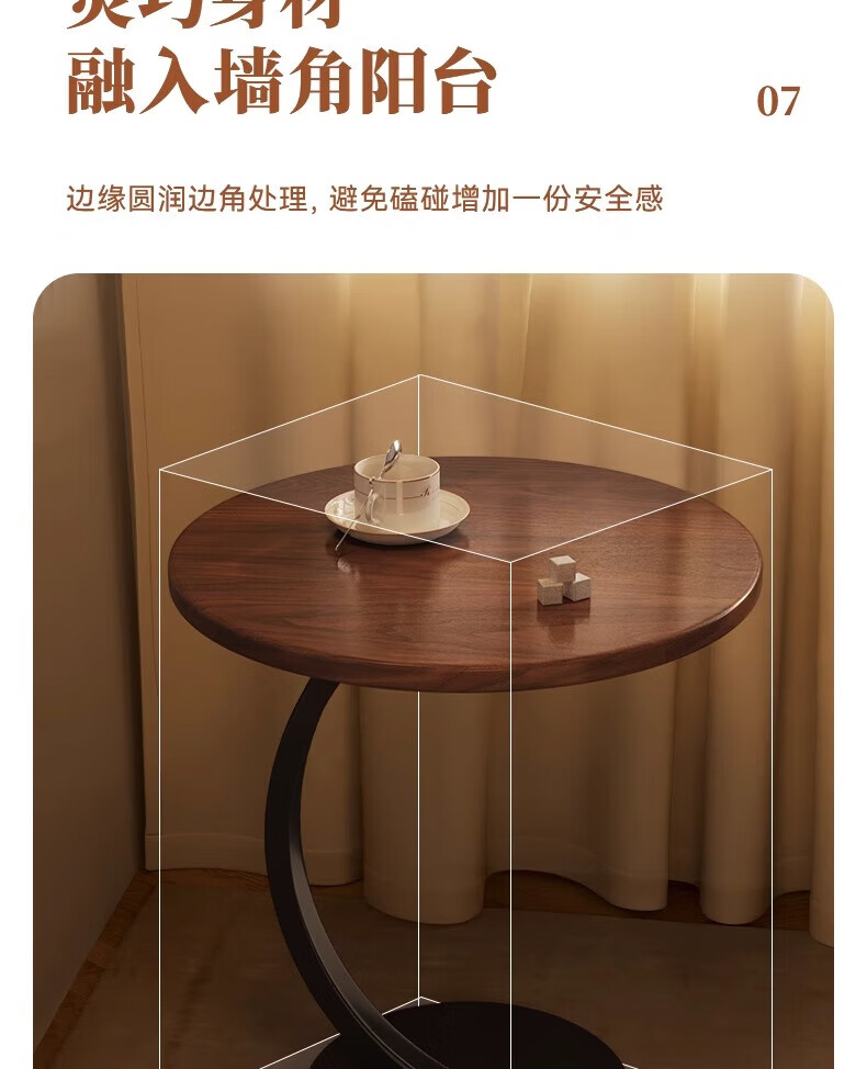 馨婺家沙发小边几小户型客厅现代轻奢小型创意茶几家用卧室高级感床头柜 胡桃色+黑架【基础款】单层