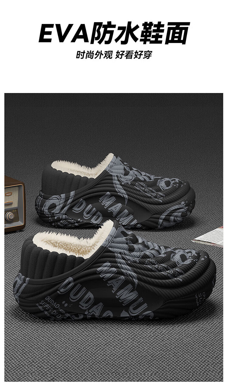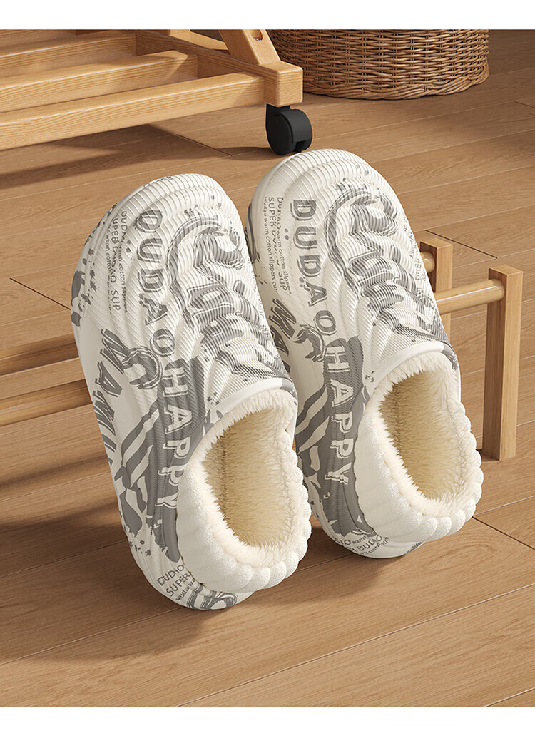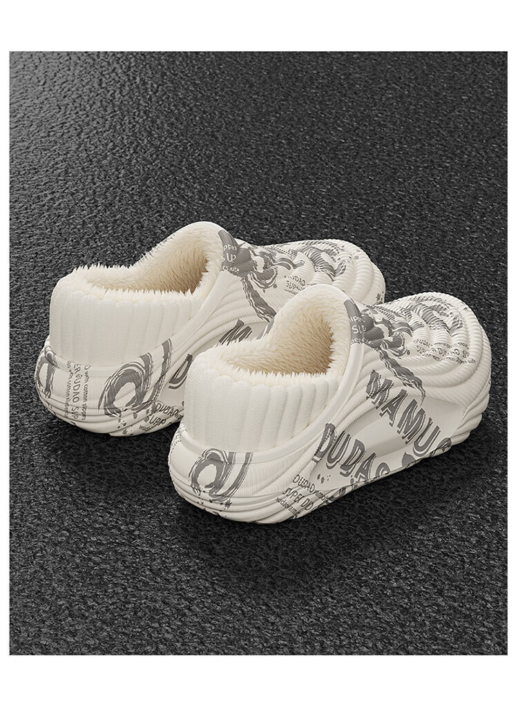 FZT棉拖鞋男士2025新款冬季防水包跟室内家居外穿防滑加绒保暖棉鞋女 白色悟 40 -41正码(内长255mm)