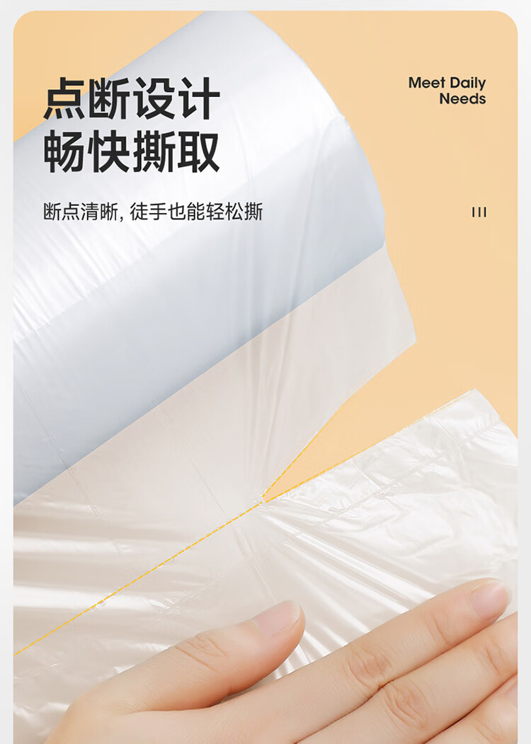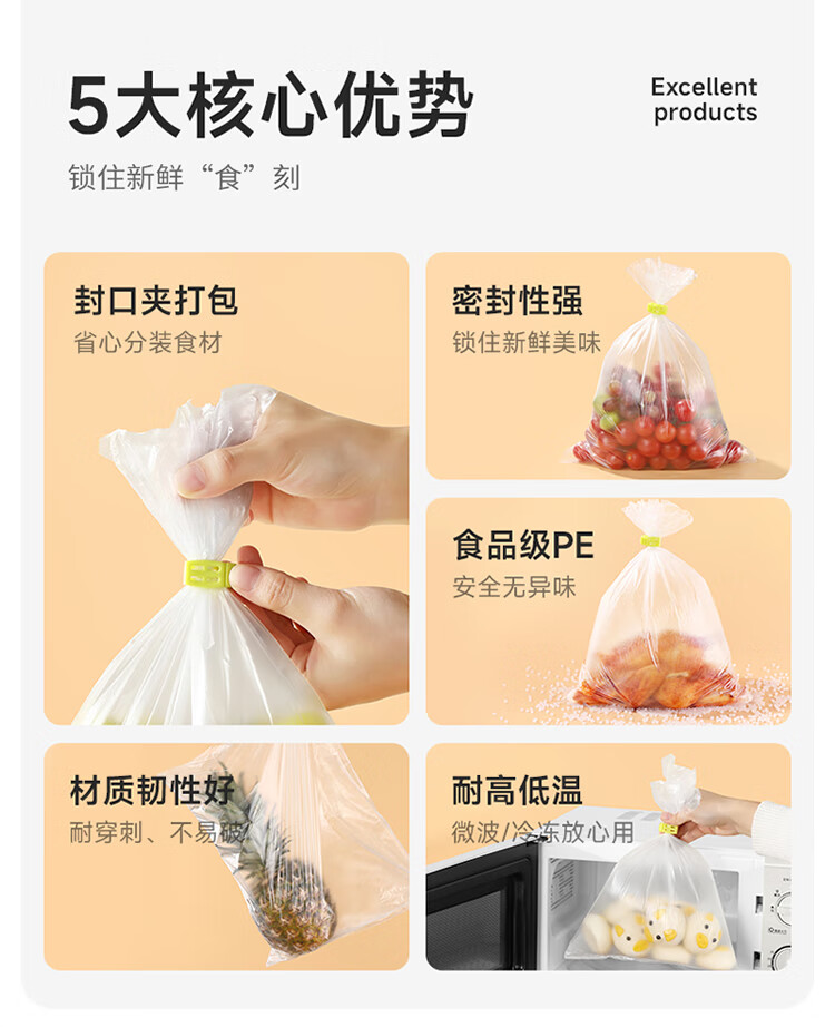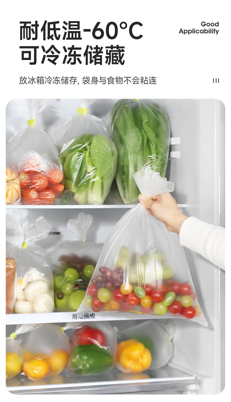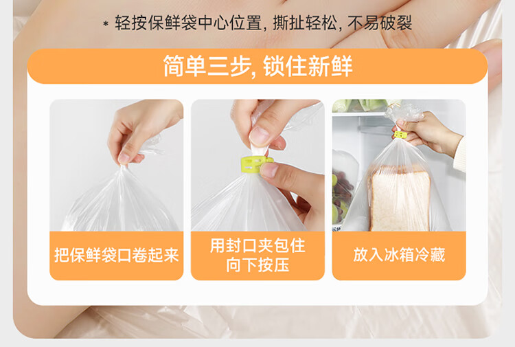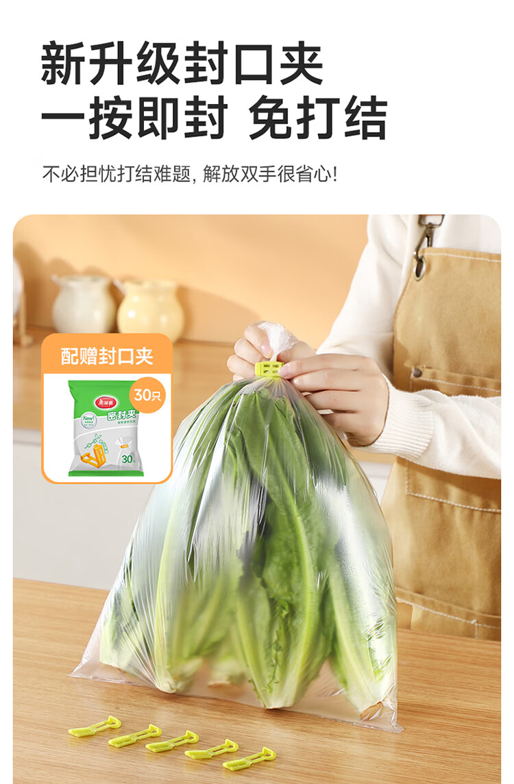 美丽雅家用食品级保鲜袋特大号35*45cm150只厚实分装袋子连卷塑料袋
