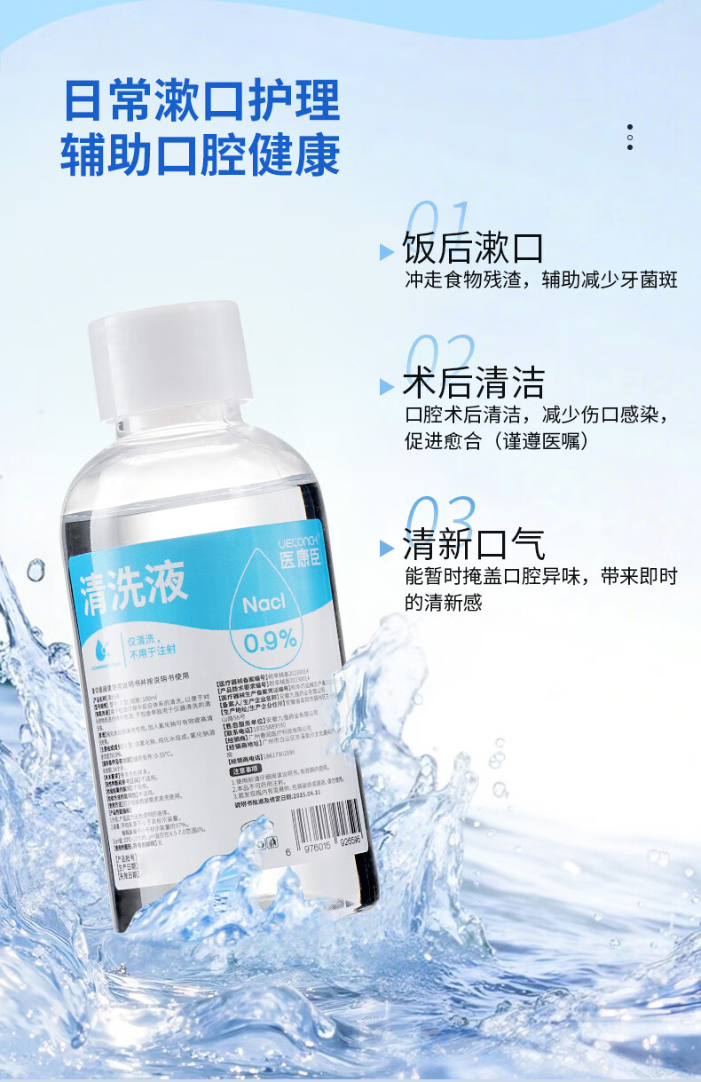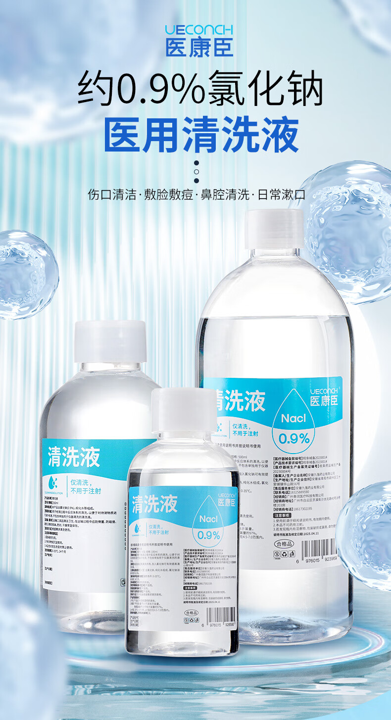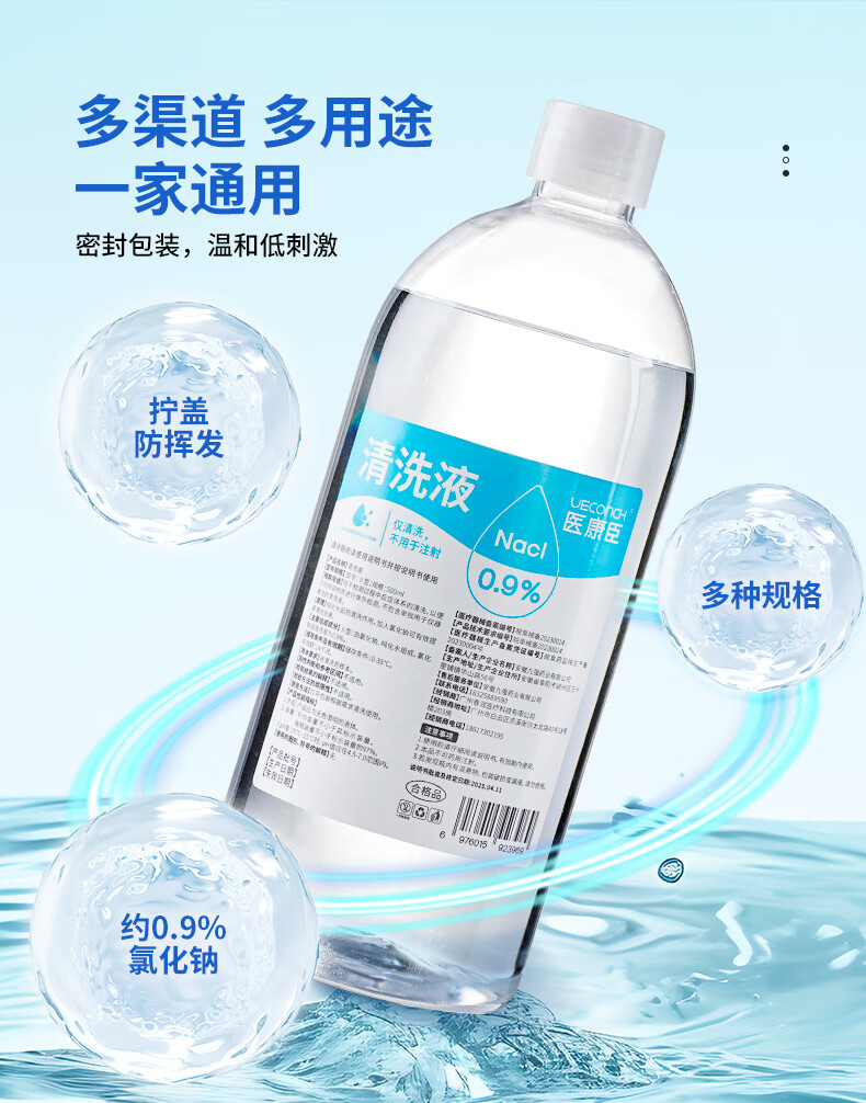 医康臣(UECONCH)医用生理盐水0.9%氯化钠清洗液洗脸洗鼻漱口敷脸海盐水500ml